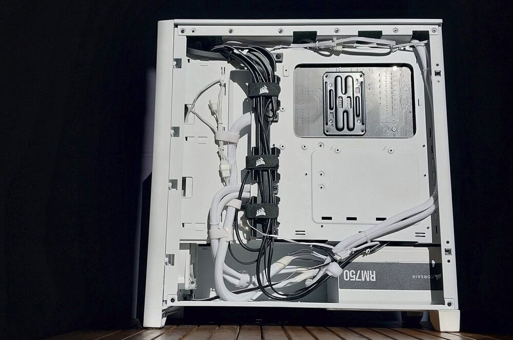 For assembly, the only issue I had was with the incredibly stiff PSU cables. It was very difficult to get the ends in the shape required to connect into CPU, motherboard and GPU headers. For the latter, the same problem also made it difficult to tuck the pigtail ends of the two 8-pin PCIe connectors neatly behind the main cables so that they would not be visible. In the end, I somehow made it work using fastening cable ties. Cable management for the back was easier despite the stiffness of the cables - the good number of tie-down points this case comes with really helped with routing both the thick PSU cables and thinner ones for other parts.
