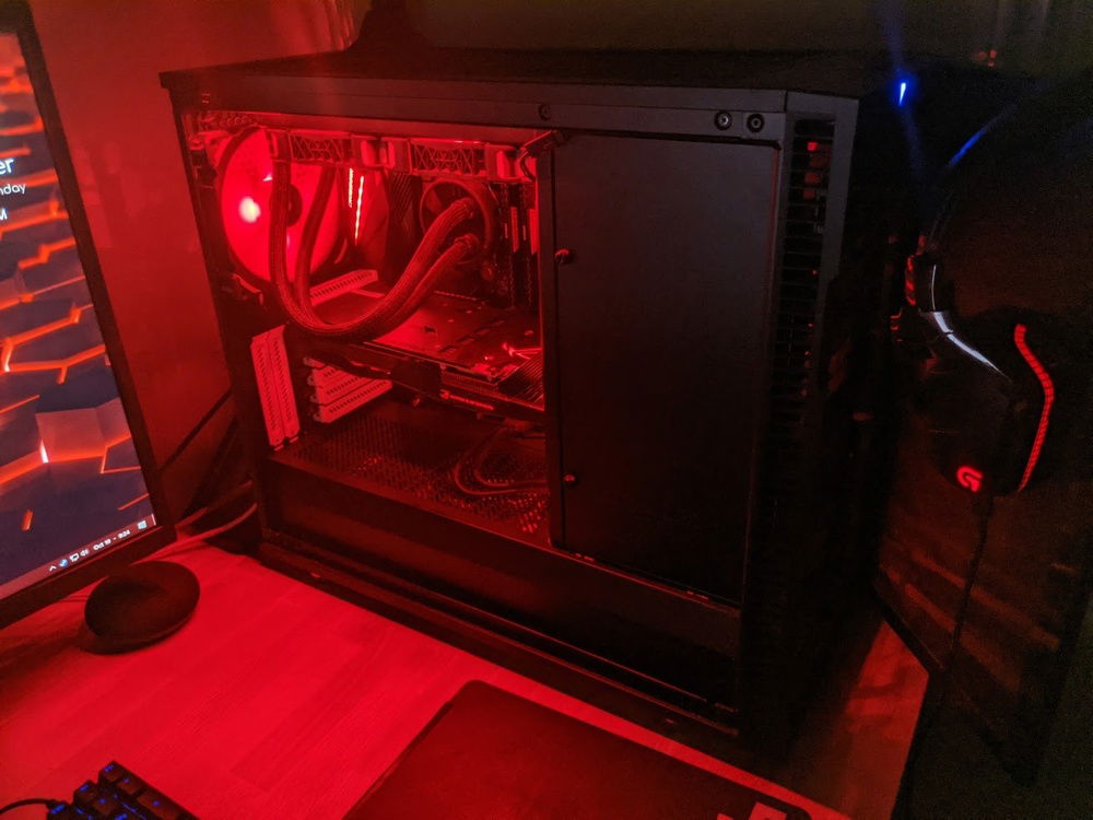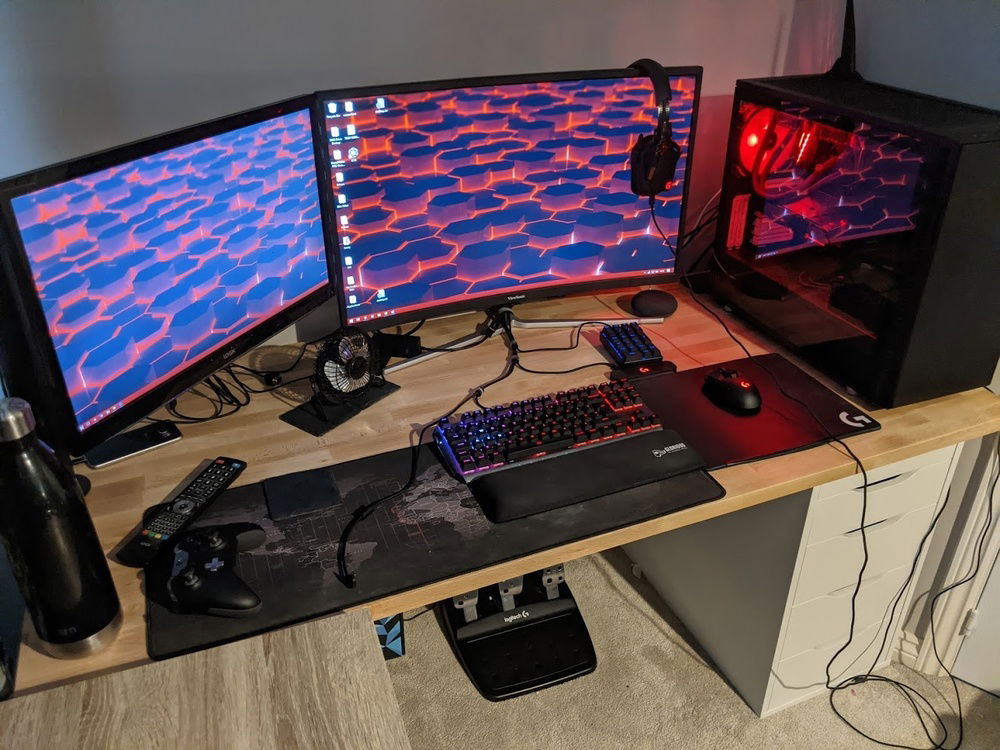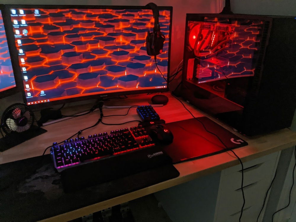 Ikea Alex drawers/Gerton tabletop desk, with a fractal design r6. This machine was with me when i was living with my parents. I have recently moved out and tried to make my setup look at good as possible.