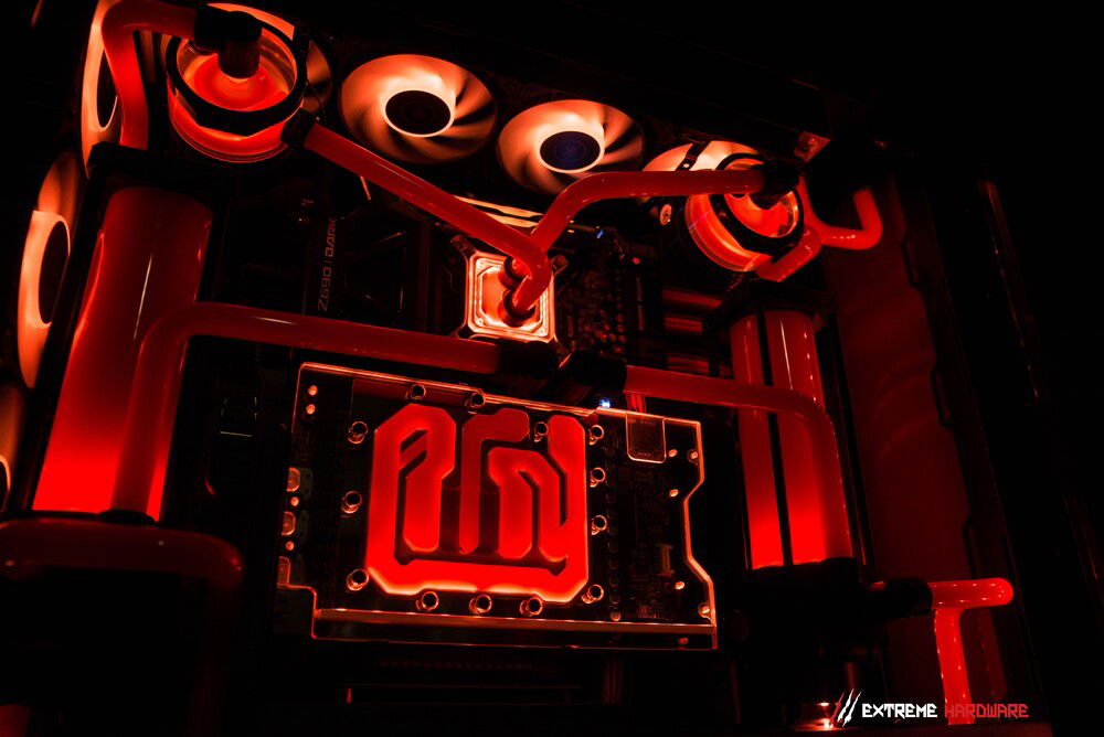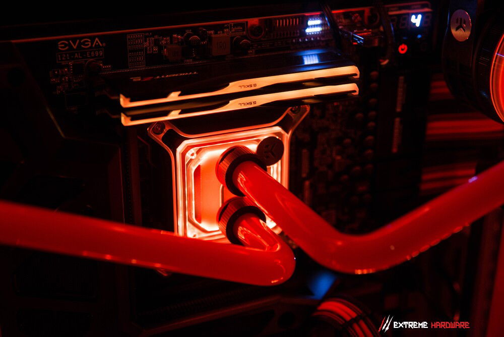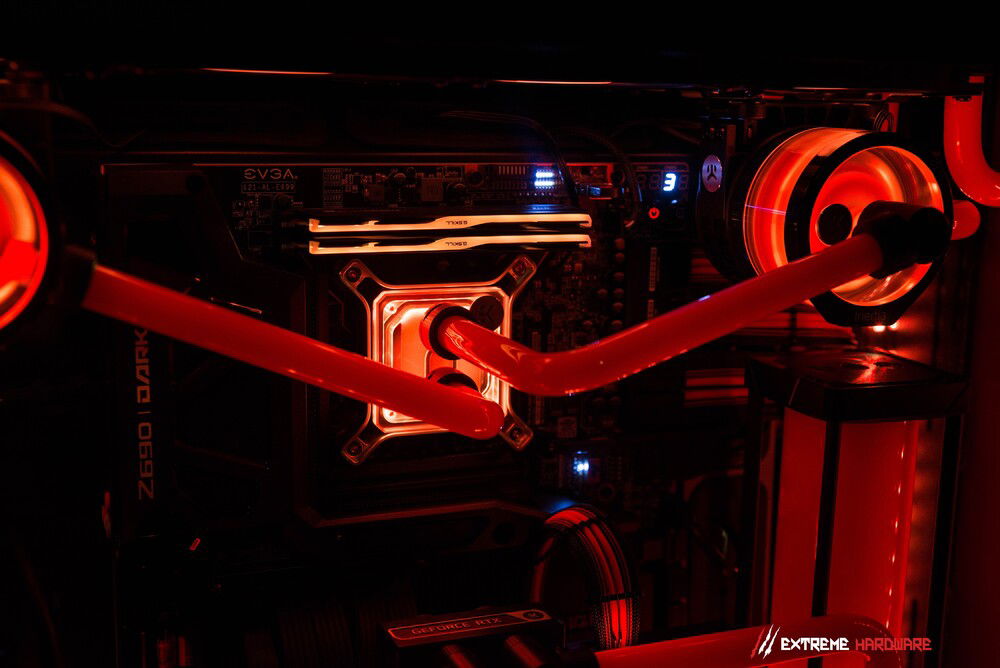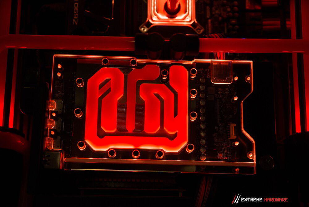 In fact, this setup features the most powerful single loop circuit we've ever built. The i9-13900KS and RTX 4090 STRIX are cooled with 560/60 and 480/60 radiators, both coolers in a Push&Pull configuration, and we used four D5 pumps.