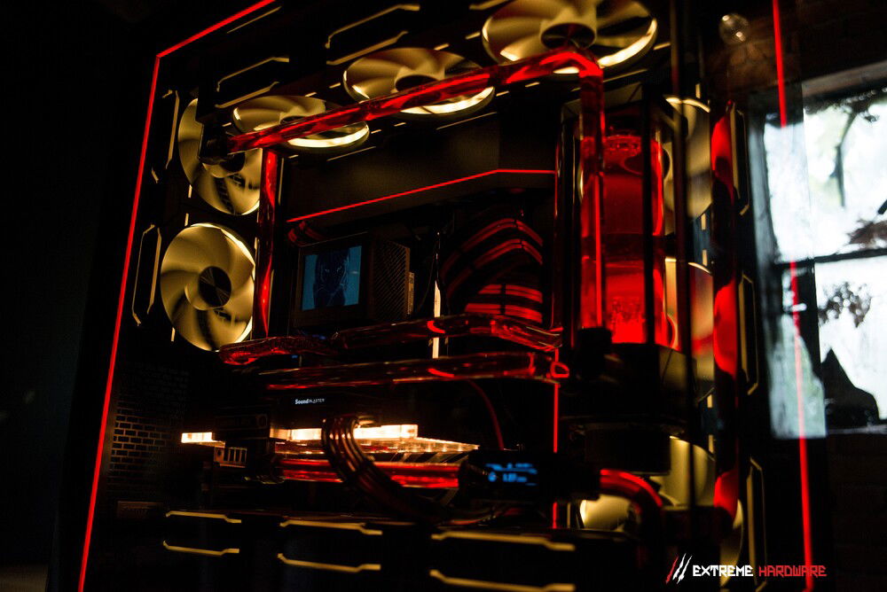 From the previous incarnation, only the fittings, reservoir, Creative AE-9 sound card, and the Corsair AX1600i power supply remain.