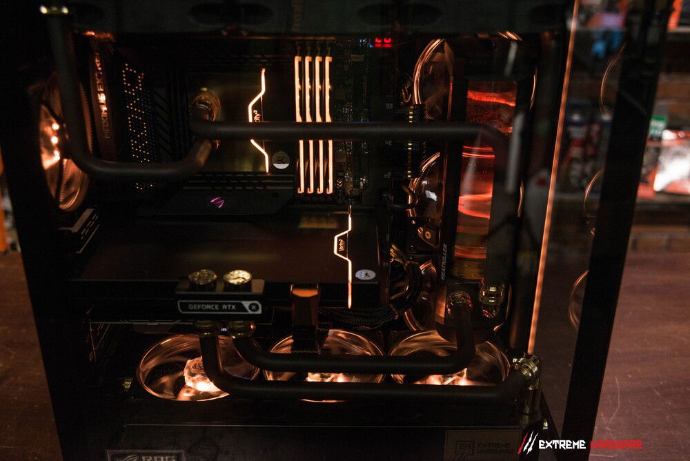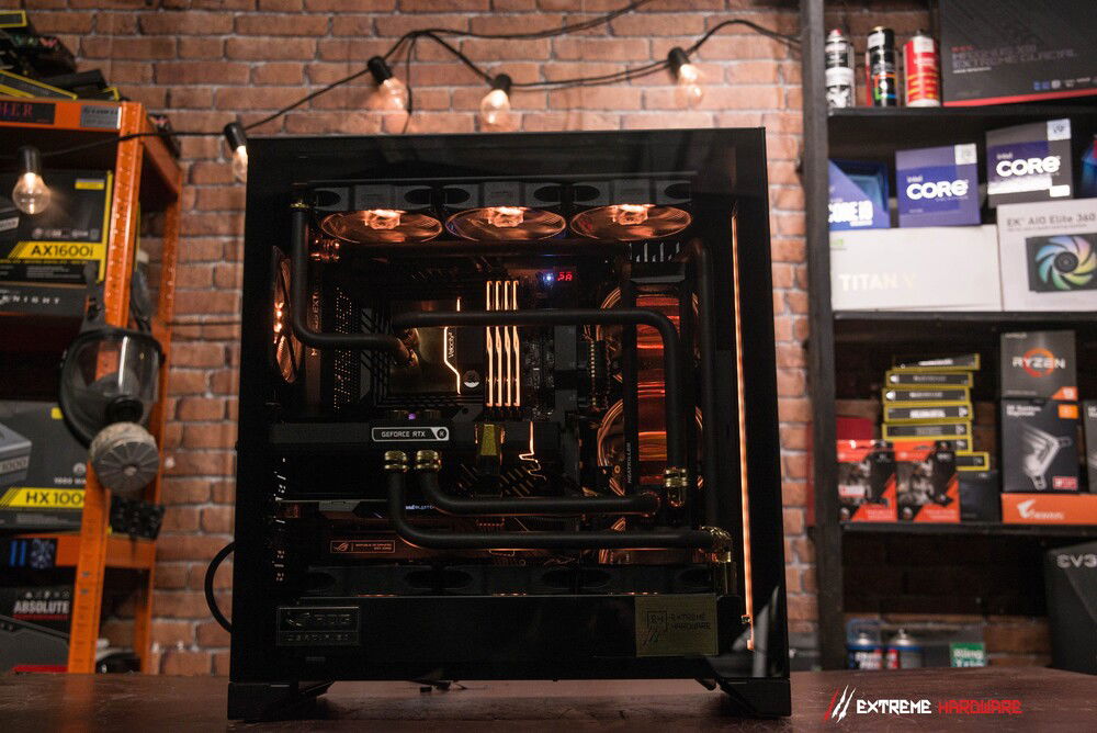 The Lian Li 011WGX case was also replaced with a Lian LI 011XL and the Seasonic TX 1000 power supply with a Corsair AX1600i. Corsair ML 120 PRO fans replaced by the NB-eLoop XB12P ARGB noiseblockers. One of the 360/30 coolers gave way to the 360/45.