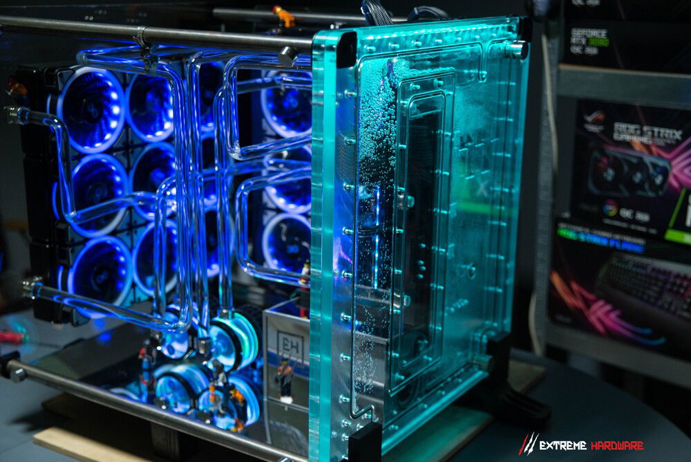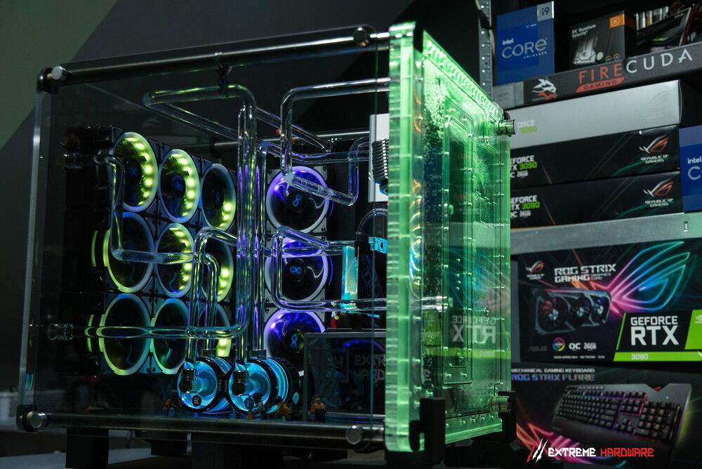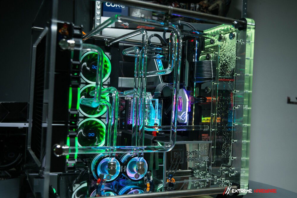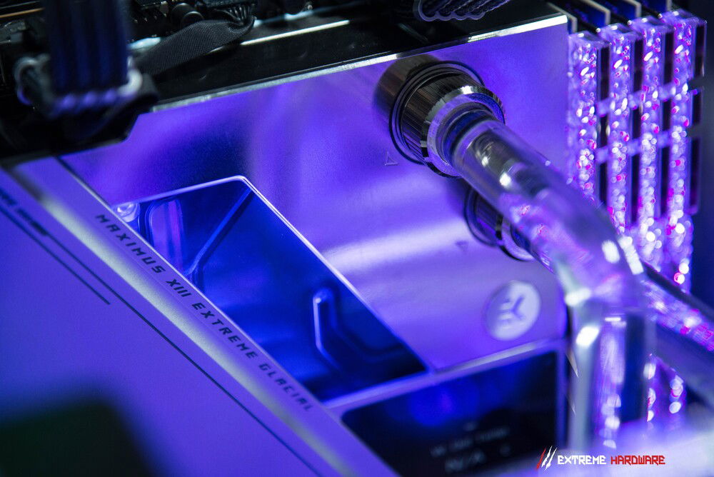One of the main assumptions of the EH "HYDRO MADNESS" project was to use a unique motherboard from the ROG stable, the Z590 Maximus XIII Extreme Glacial model, i.e. a modified Maximus XIII Extreme equipped with an ultra-block that allows for extremely effective cooling of both the CPU, VRM, chipset and the entire pcb motherboard.