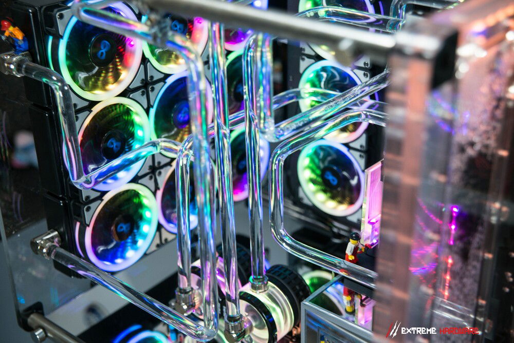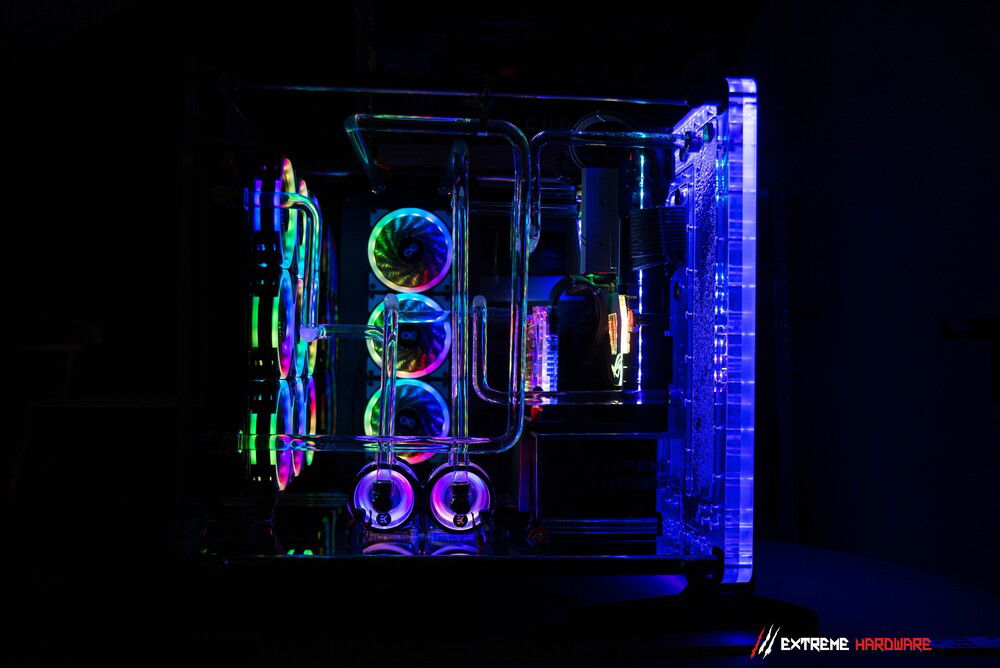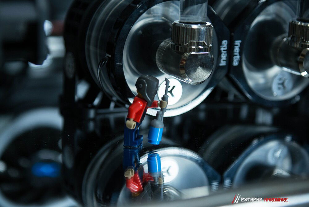 In the project, we used as many as three D5 pumps working synchronously, because the massive distroplate devastatingly limited the flow in the system. Properly located pumps allowed to a great extent to compensate for flow drops and to drive the liquid stream efficiently so that the config would work as quietly, efficiently and as cool as possible.