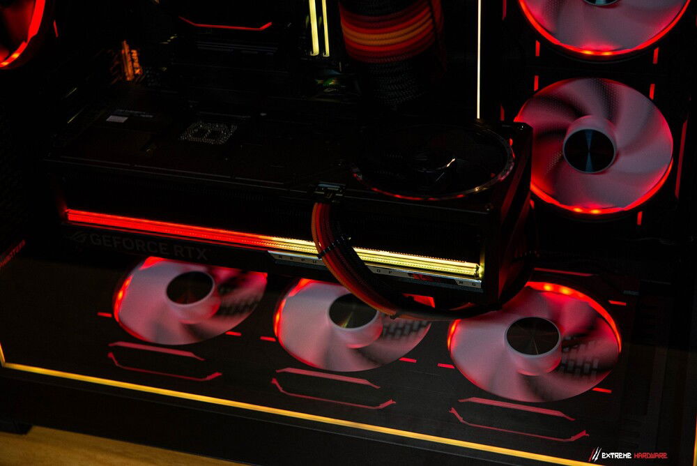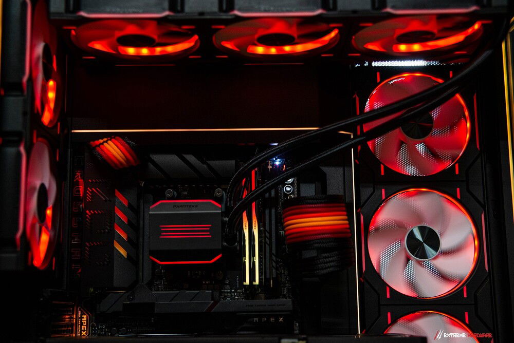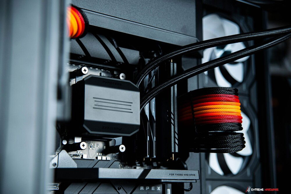 All of this rests within the monumental stronghold of the Phanteks NV9 massive, meticulously designed, created for perfect interior layout and immaculate airflow. Within its walls flow subtle winds generated by Phanteks D30 140 mm fans, while a mighty 420 mm AIO from the same forge watches over everything. The Push & Pull configuration works like a spell of silence the machine remains astonishingly quiet, even when long hours are spent battling code, renders, or the demons of gaming.