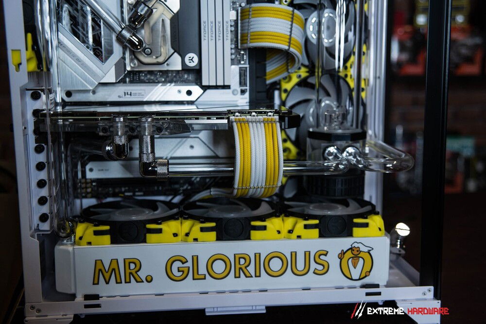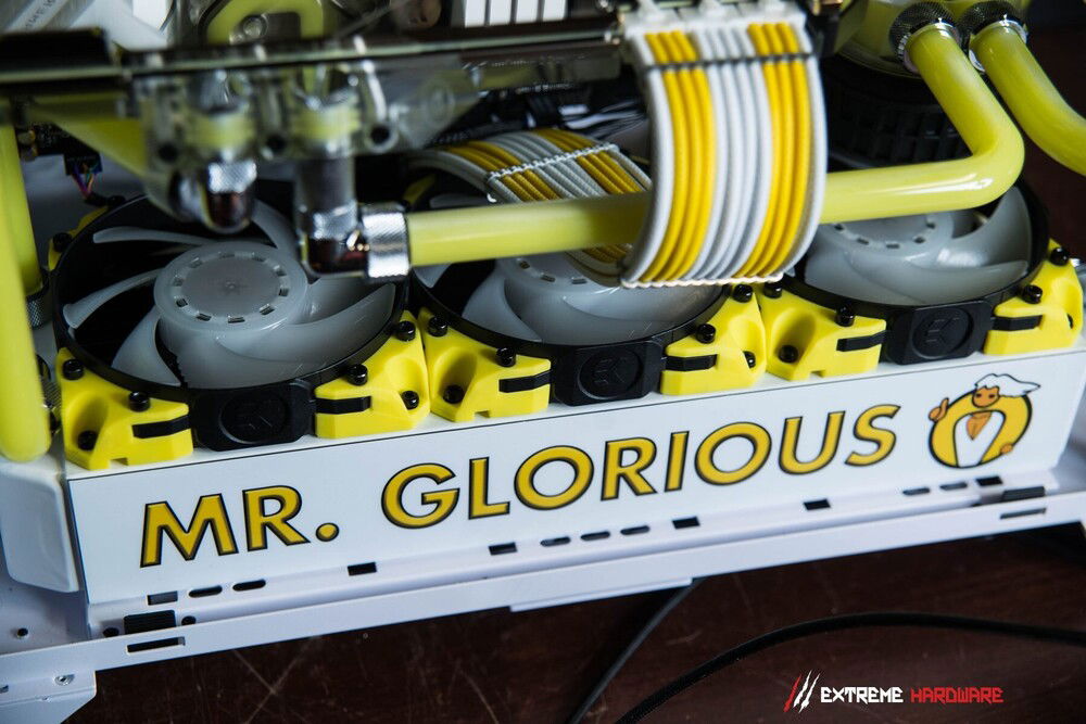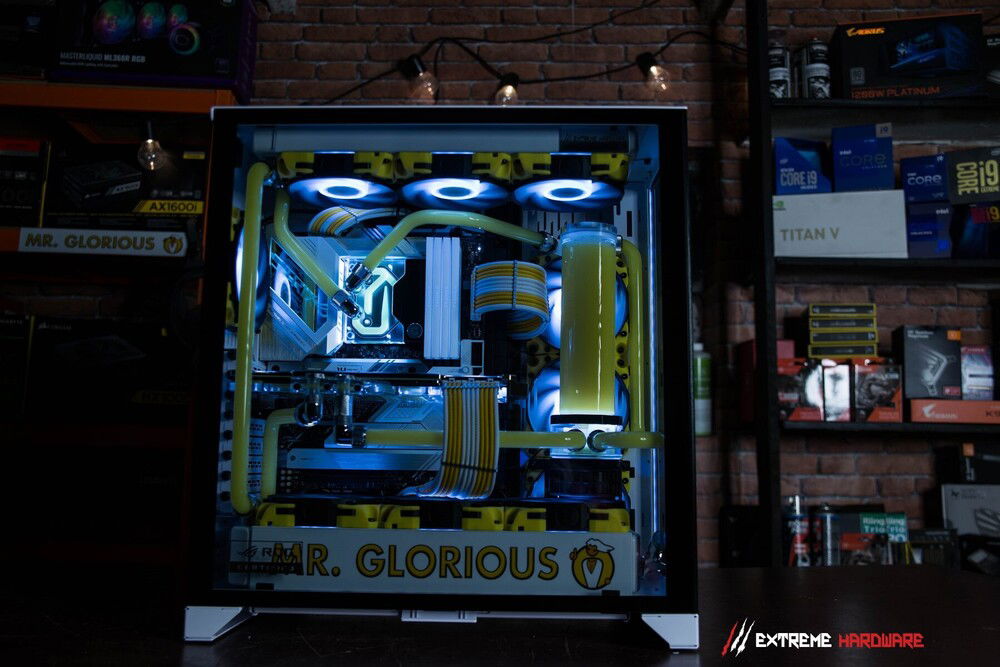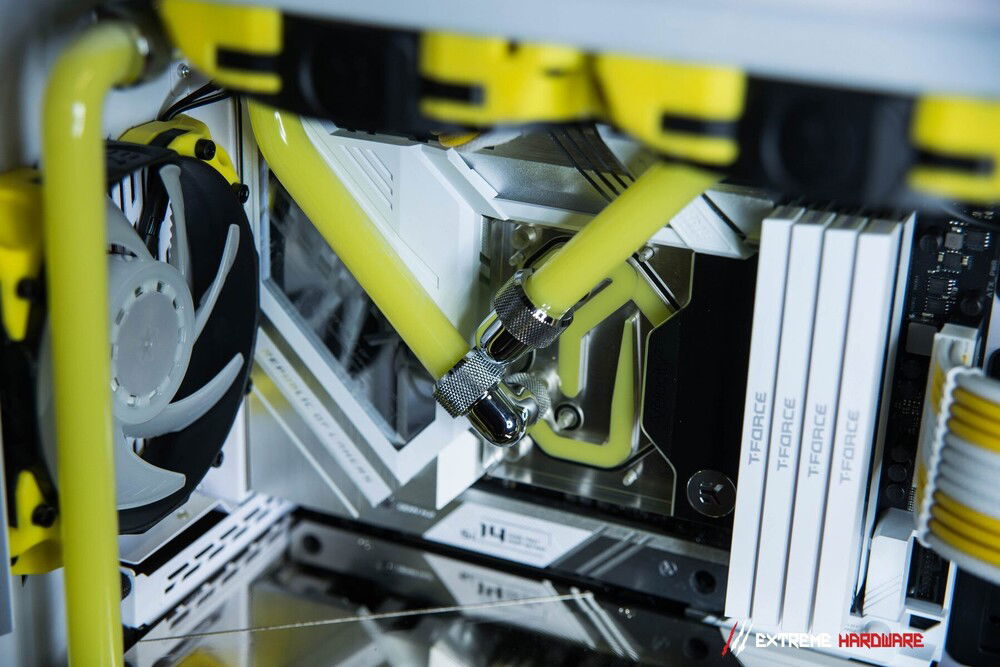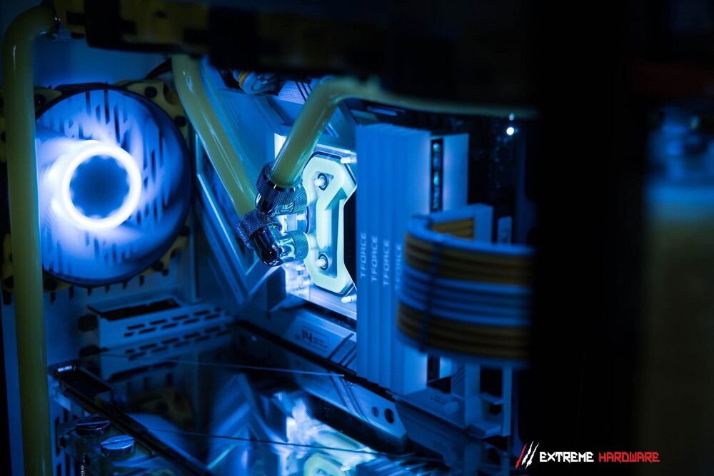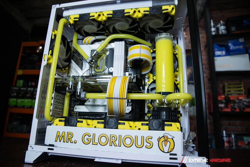 EH "MR.GLORIOUS" is a configuration maintained in white and yellow colors, referring to the Glorious PC Master Race trend. Machine equipped with i9-12900KF mounted on a very decent white Z690 STRIX-A supporting DDR4 memory. A model that is characterized by high precision and stability of voltage regulation and all necessary values. The 16-phase 75 amp power section allows the i9-12900KF to be fully utilized with additional OC. The memories used in the configuration are white modules from the TeamGroup, naturally on B-Die dice.