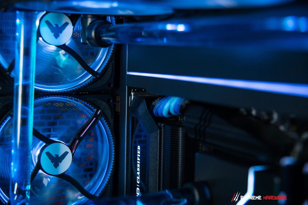 The graphics processing unit (RTX 3090 Ti FTW3) has been replaced by the next-generation ZOTAC RTX 5080 SOLID — a “SOLID Performance” class unit, offering approximately a ~50% increase in rasterization performance, even higher gains in RT/PT workloads, and full support for Frame Generation (FG) and Multi-FG (mFG) technologies. The cooling system has been expanded for improved thermal efficiency, introducing a Push&Pull configuration on the top 360/60 radiator.