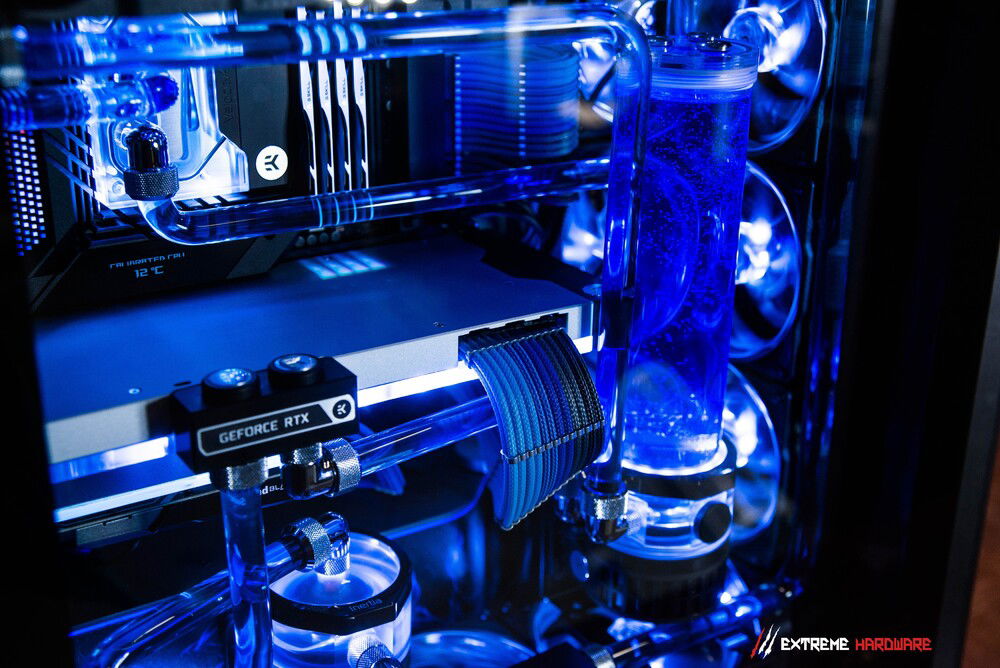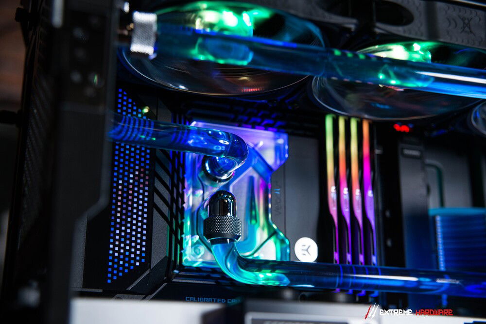 Although in the final phase of finalizing the project, the RTX 4090 slowly settled on the market, the current owner of the configuration decided to stay with the RTX 3090 variant, i.e. the proven design of the top Ampere, and change the GPU to the RTX 5090. The powerful GA102-300 is doing great in the resolution of 3440x1440p and DLDSR 5160x2160 100 Hz for which it is used. The i9-12900KS also remained unchanged despite the imminent launch of the i9-13900K at that time. After all, the top Alder, after appropriate adjustments, is in the top of the fastest CPUs in terms of driving the top GPU, and also emits much less heat to the system. The CPU needs only around 1.26v to run stable on the 5.2 / 41 / 44 profile, not only in games, of course, but also under full load during long-hour load tests. Generally, at the request of the person for whom the machine was created, it was important to stay with the Z690 EXTREME, i9-12900KS and RTX 3090 STRIX and four DDR5 modules. The material appeared on YT with a significant time slip, but it is known that each worklog appears sometimes and several months after the implementation of a given project :)