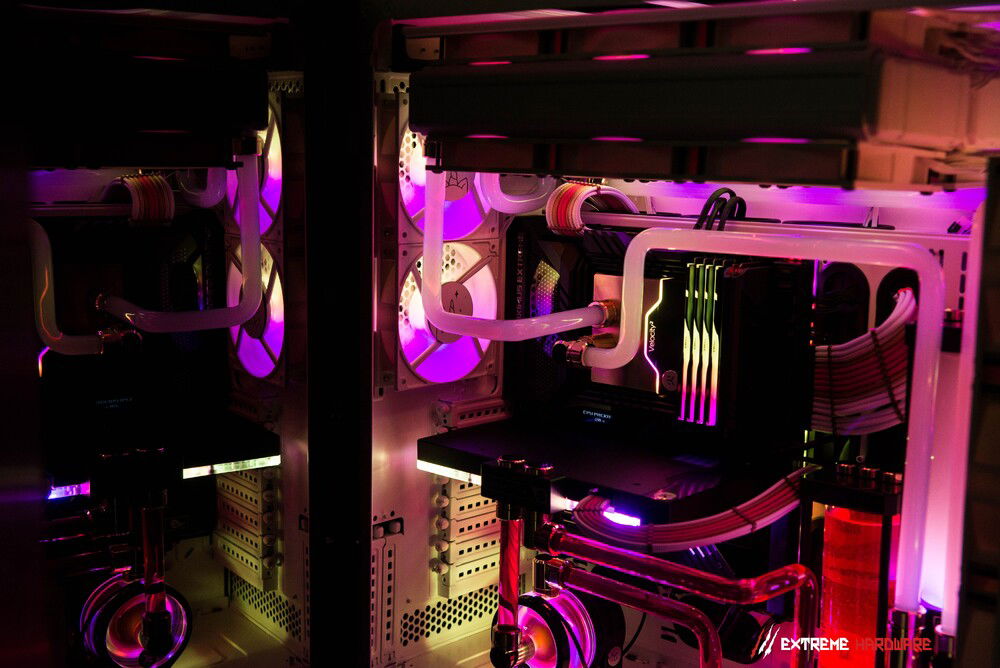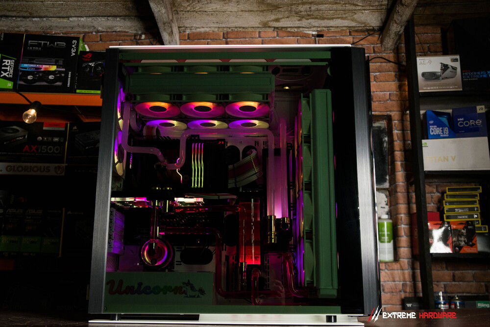 EH "UNICORN" is a project that we finish in April 2023, we planned to present it around Christmas 2023, but unfortunately we were unable to finalize the topic in time. This unique color concept combines the power of components, cooling and dimensions. The structure weighing approximately 70 kg is characterized by top efficiency as well as exemplary work culture and low temperatures. White, pink, black and gold are a unique combination of colors, which in this case translates into a truly mesmerizing effect. Unfortunately, neither photos nor worklog can fully convey this phenomenon, but in real life the effect of enchantment is guaranteed :)