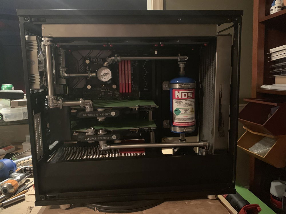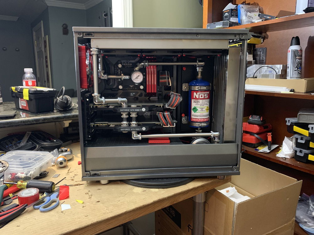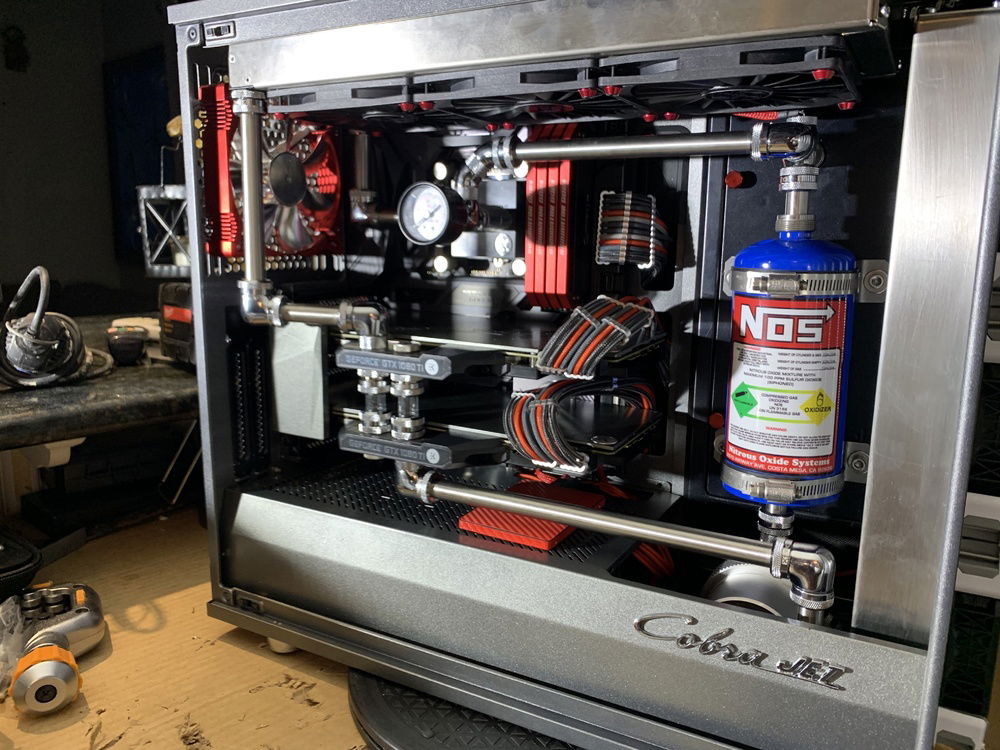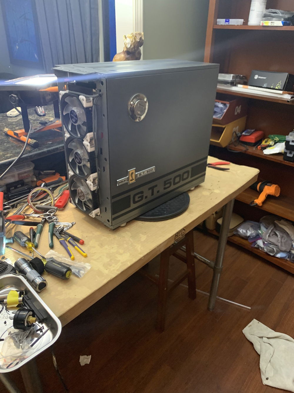 The gone in 60 seconds Eleanor build. Been working on this for the last year or so on the weekends. This was my first water cooled build and it was a fun challenge.
