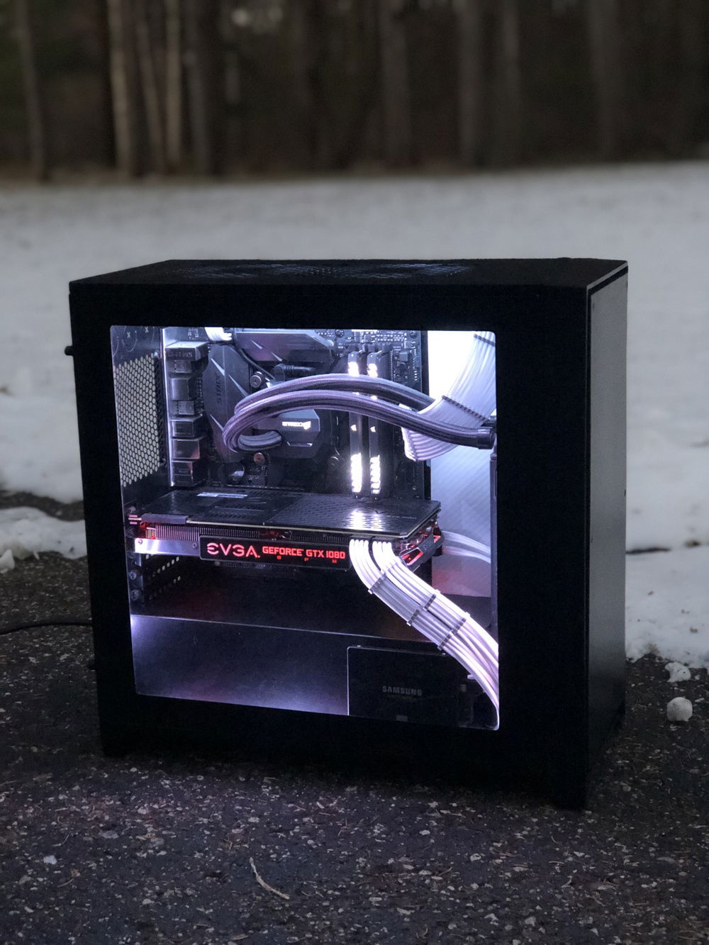 I created this build with adaptability in mind. I wanted my build to look good in all lights, and adapt to any workload. During the week, I need more cores for editing/rendering. But on weekends, I want to play games with my friends, which require higher core clocks. I OC'd my i7 8086K to 4.8 GHz and my GPU core to 1670 Mhz, for a slight boost from factory settings.