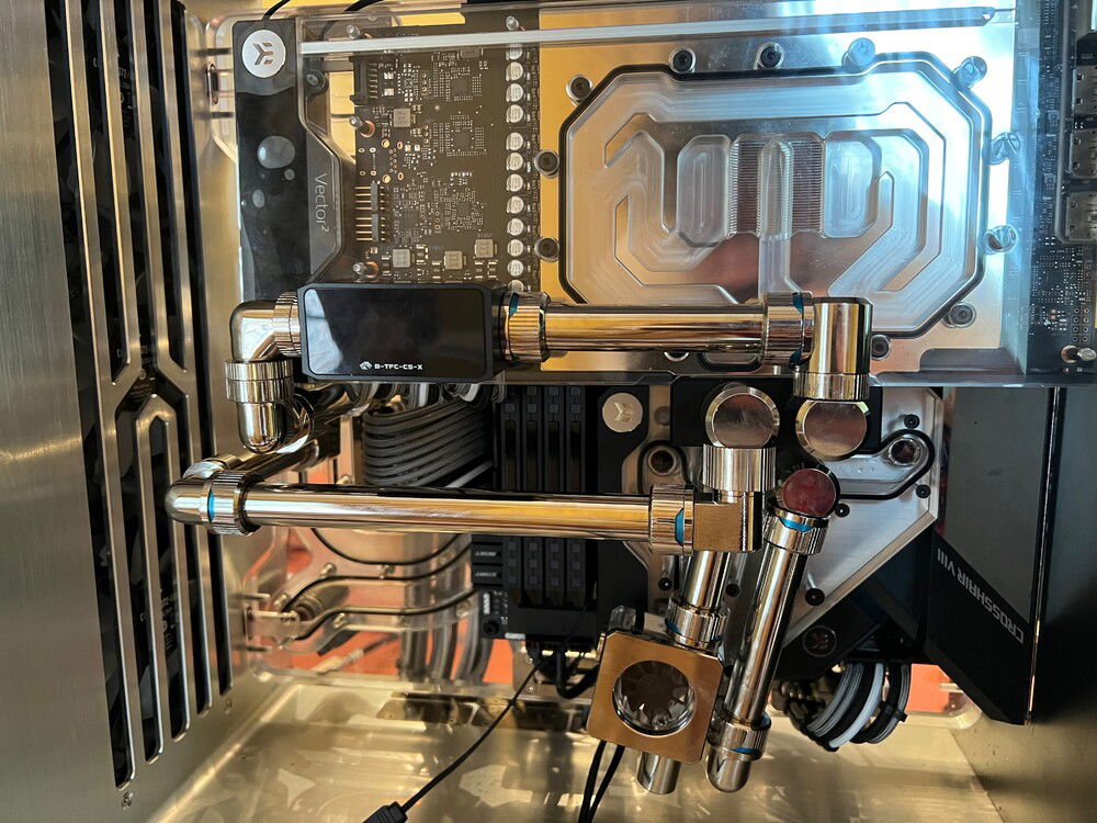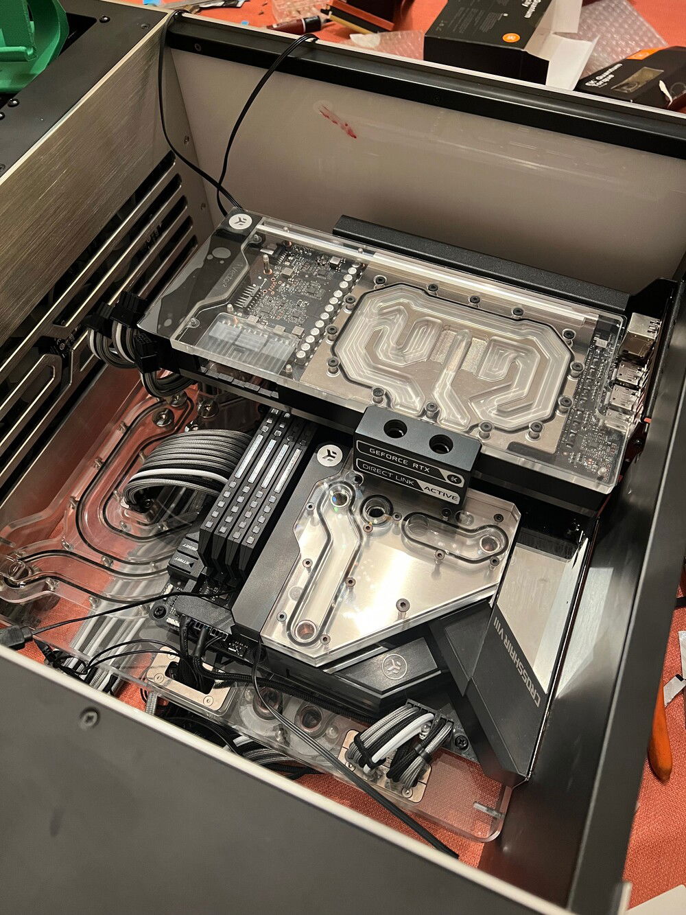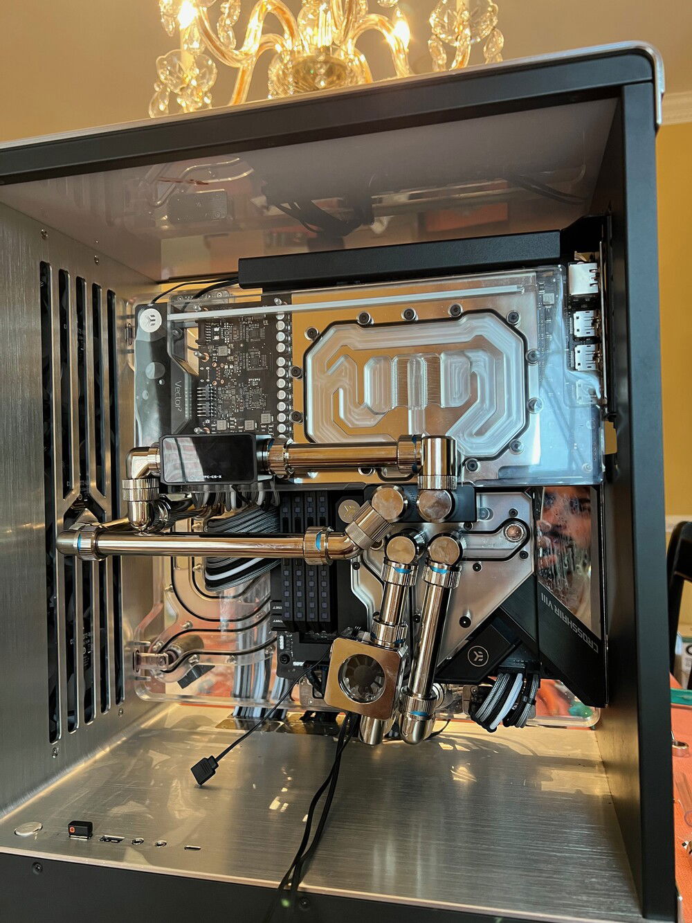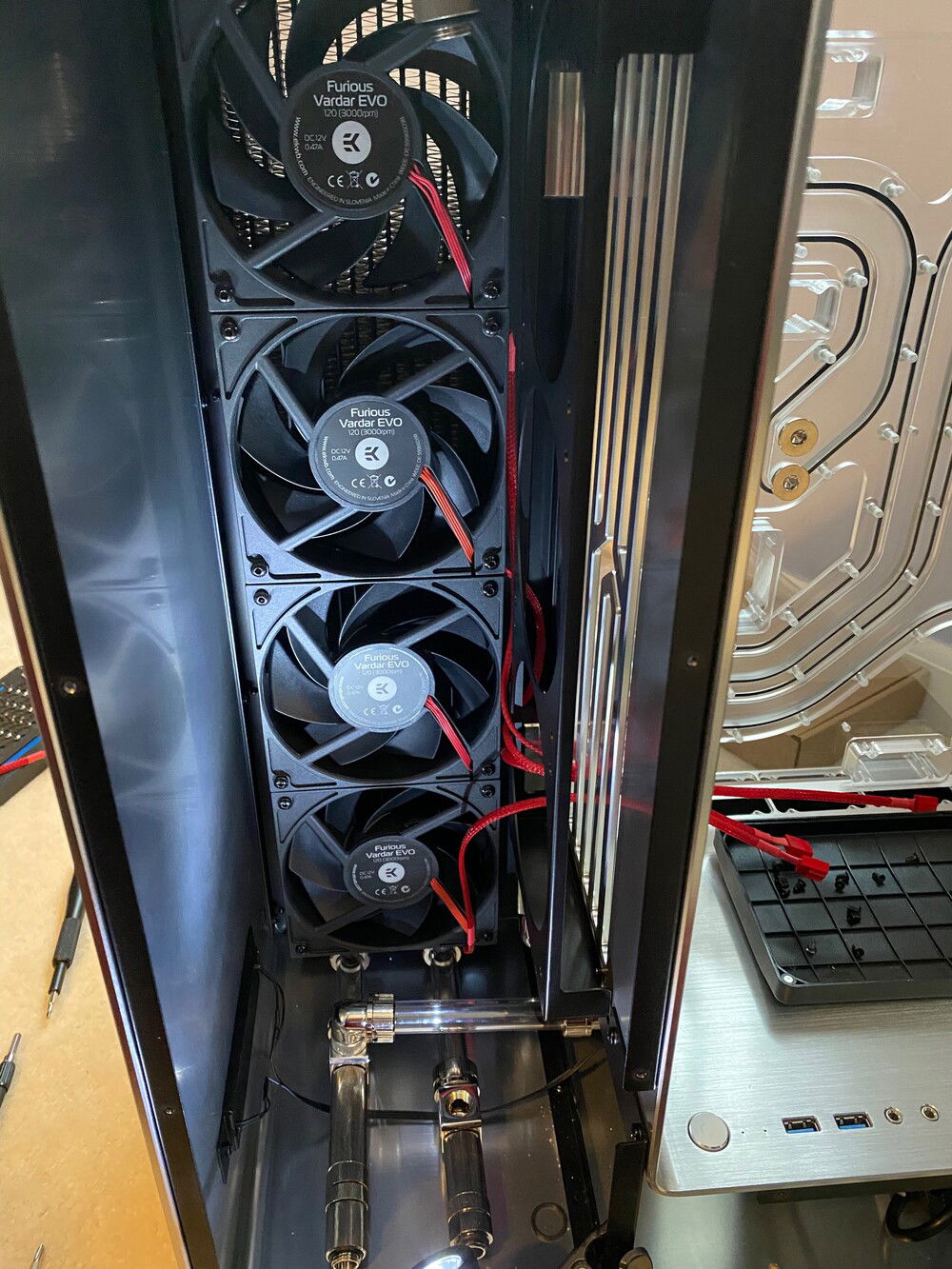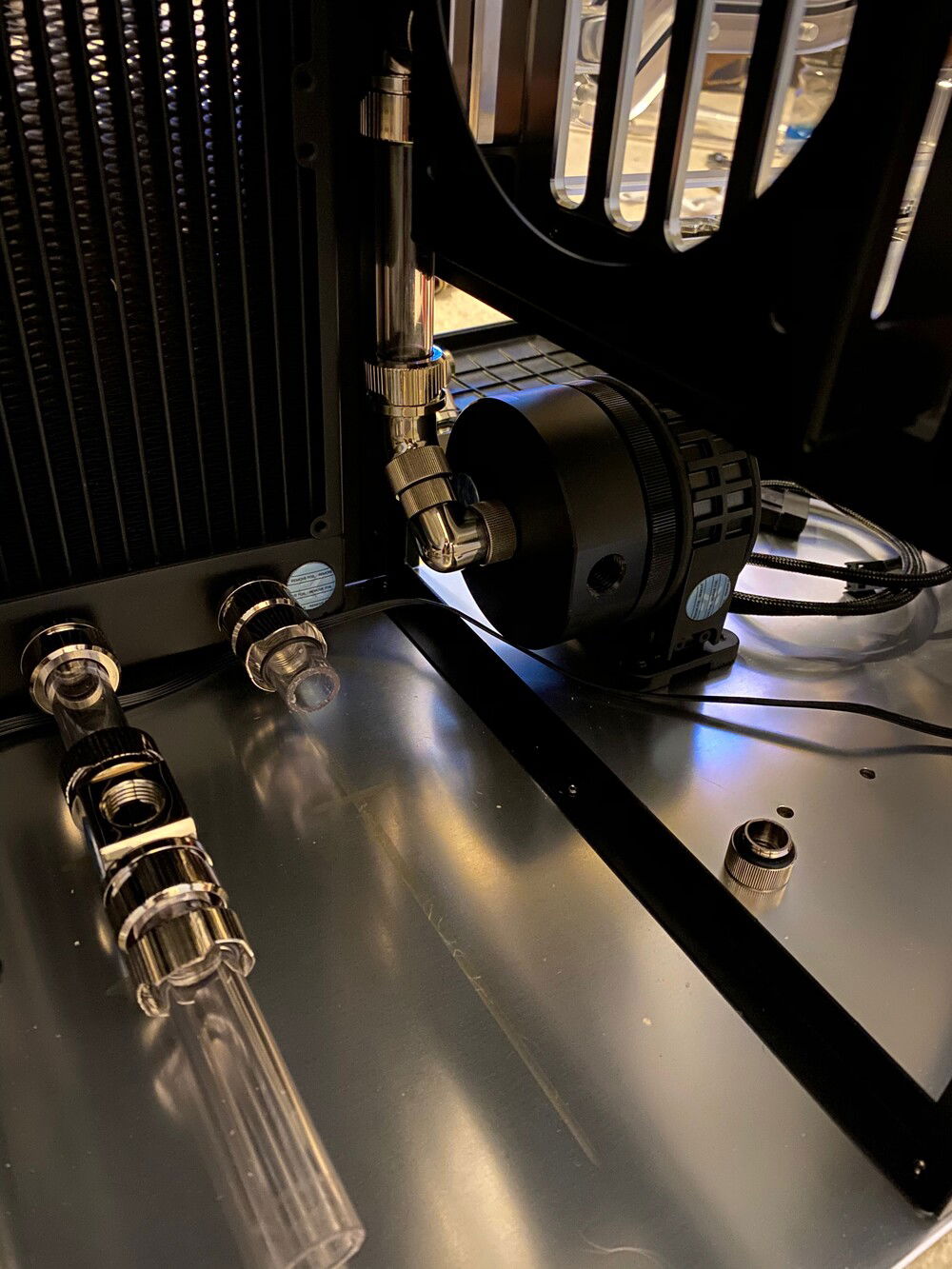 After 5 different iterations the build is finally to a point where i'm real happy with. I hesitate to say finished as I've gone through 5 iterations to this point. Future plans may be to add a second pump as the GPU with active backplate, monoblock on motherboard into a CPU block and VRM plus all the 90's that you can see plus the ones inside you cant see.