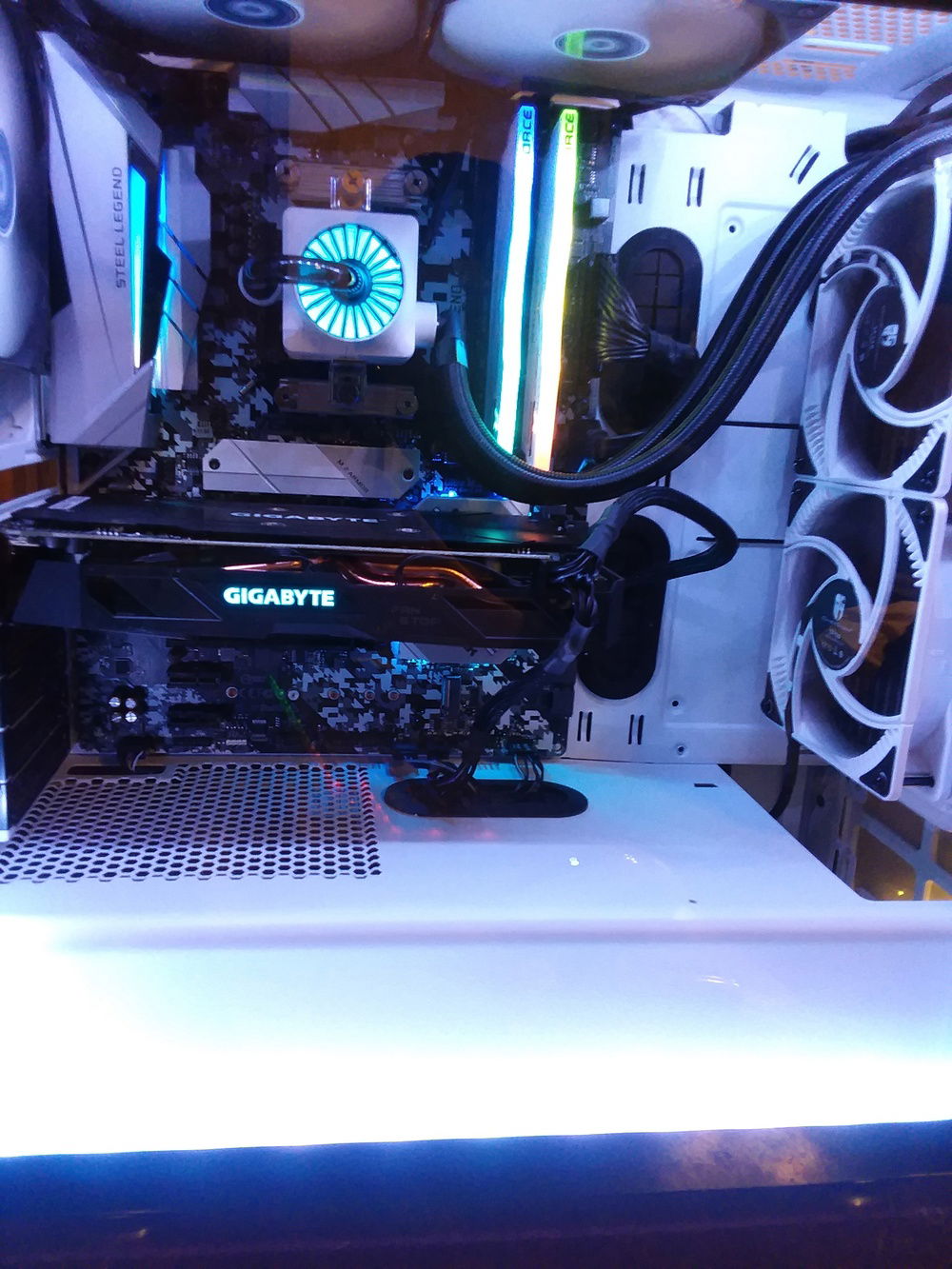 White, grey with RGB/Cyan focus. Just using this as a build log, already replaced the Phanteks p400 TG with the Corsair Spec 06-RGB. Replaced mobo and psu earlier on. Got GPU now, planning on a R3xxx to replace APU, along with RAM upgrade with prices so low. NvME M.2 was inexpensive and definitely do not regret - OS, main programs and games. I like the RAM but now I can't do a top mounted radiator, so if I get this AIO at any point it will be front mounted with a push/pull config. Anyway, this will be a log.