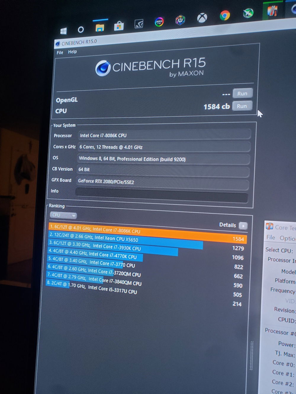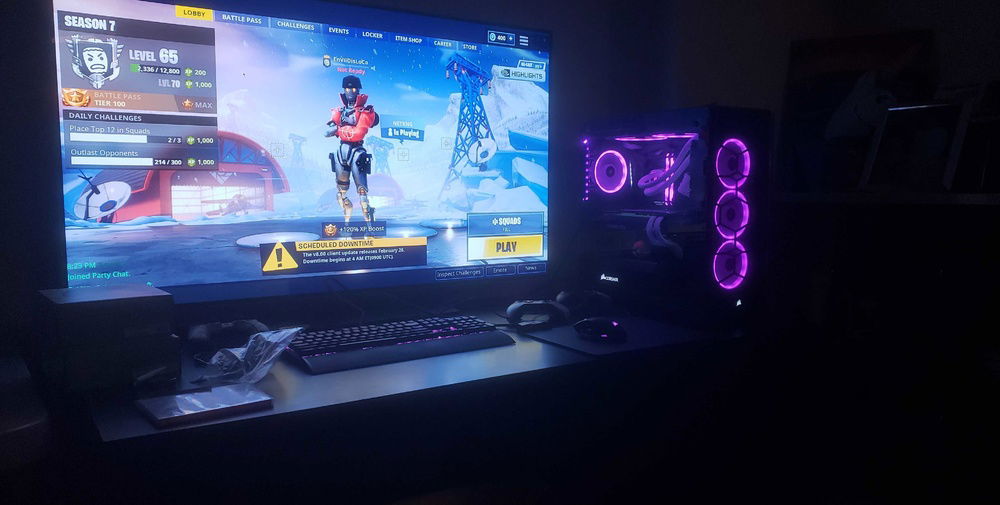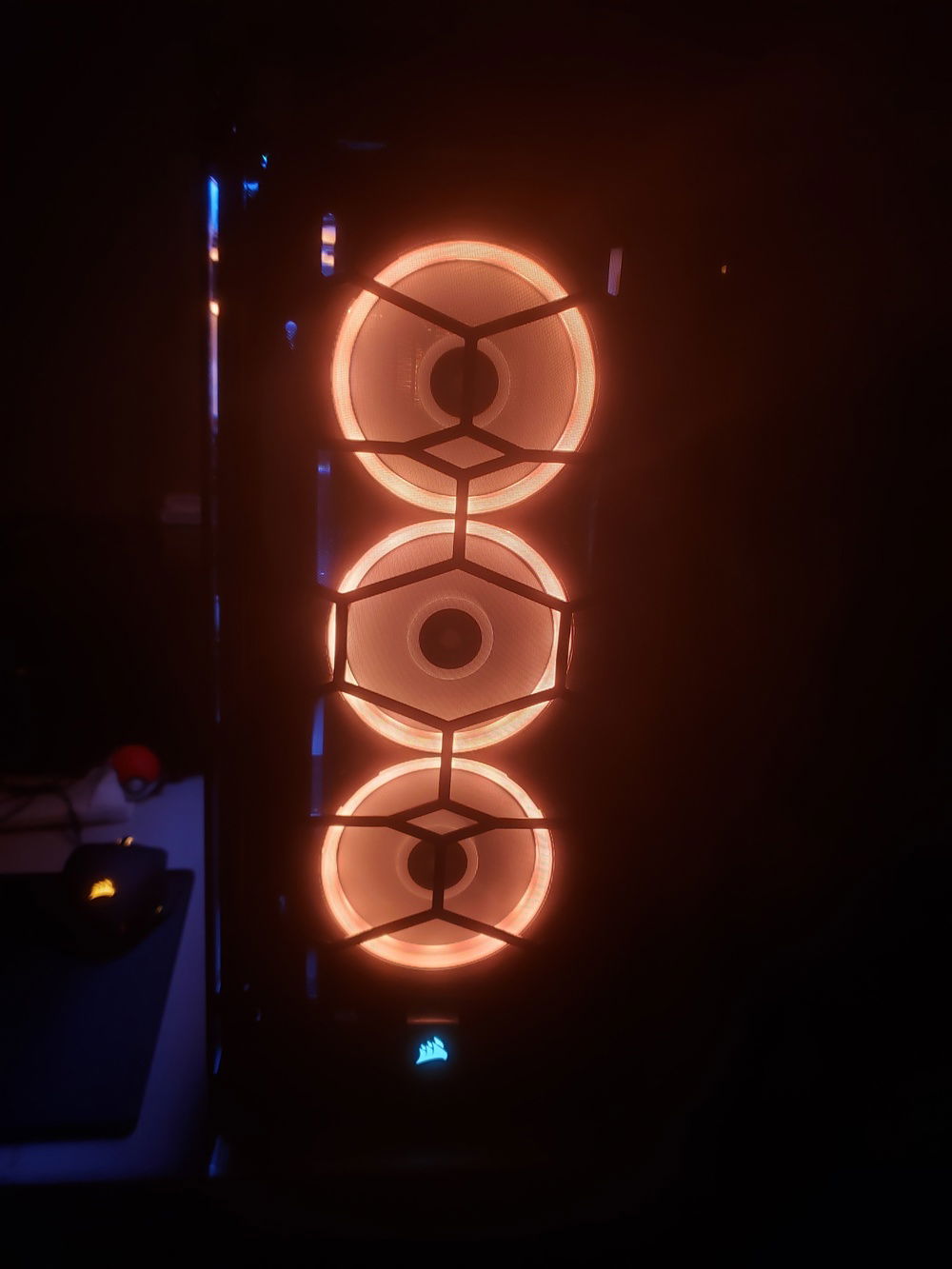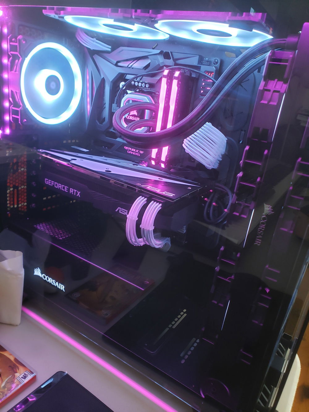 i7 8086k Overclocked to 5.1Ghz Asus Maximus X Code Motherboard Corsair Venegence RBG Pro 32G of Ram @ 3200mhz Asus Geforce RTX 2080 Corsair 150i Aio Cooler Corsair CX750M Power Supply Corsair 570x Case Corsair 6x LL Fans 3x SP Fans CableMods Addressable Led Strip CableMods White Extention Cables