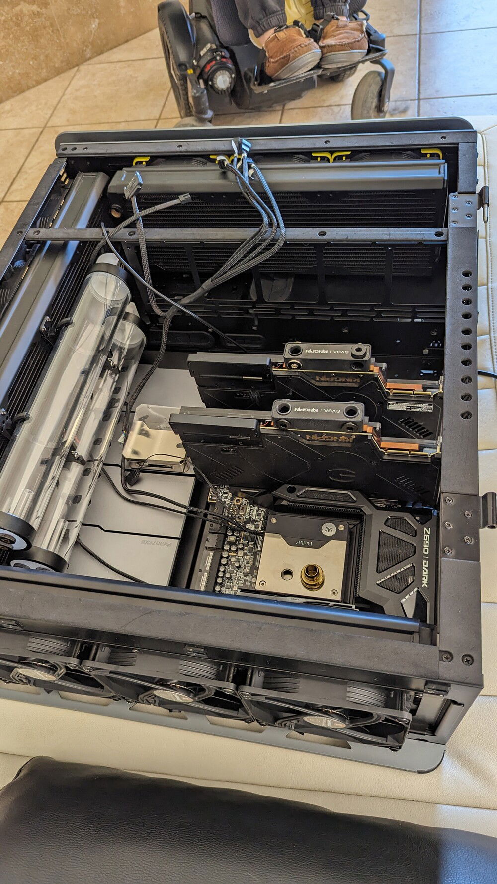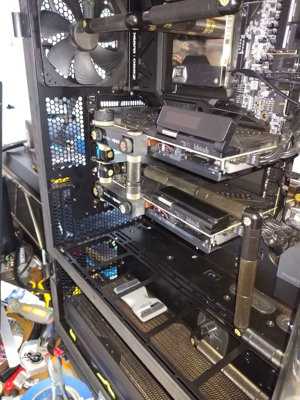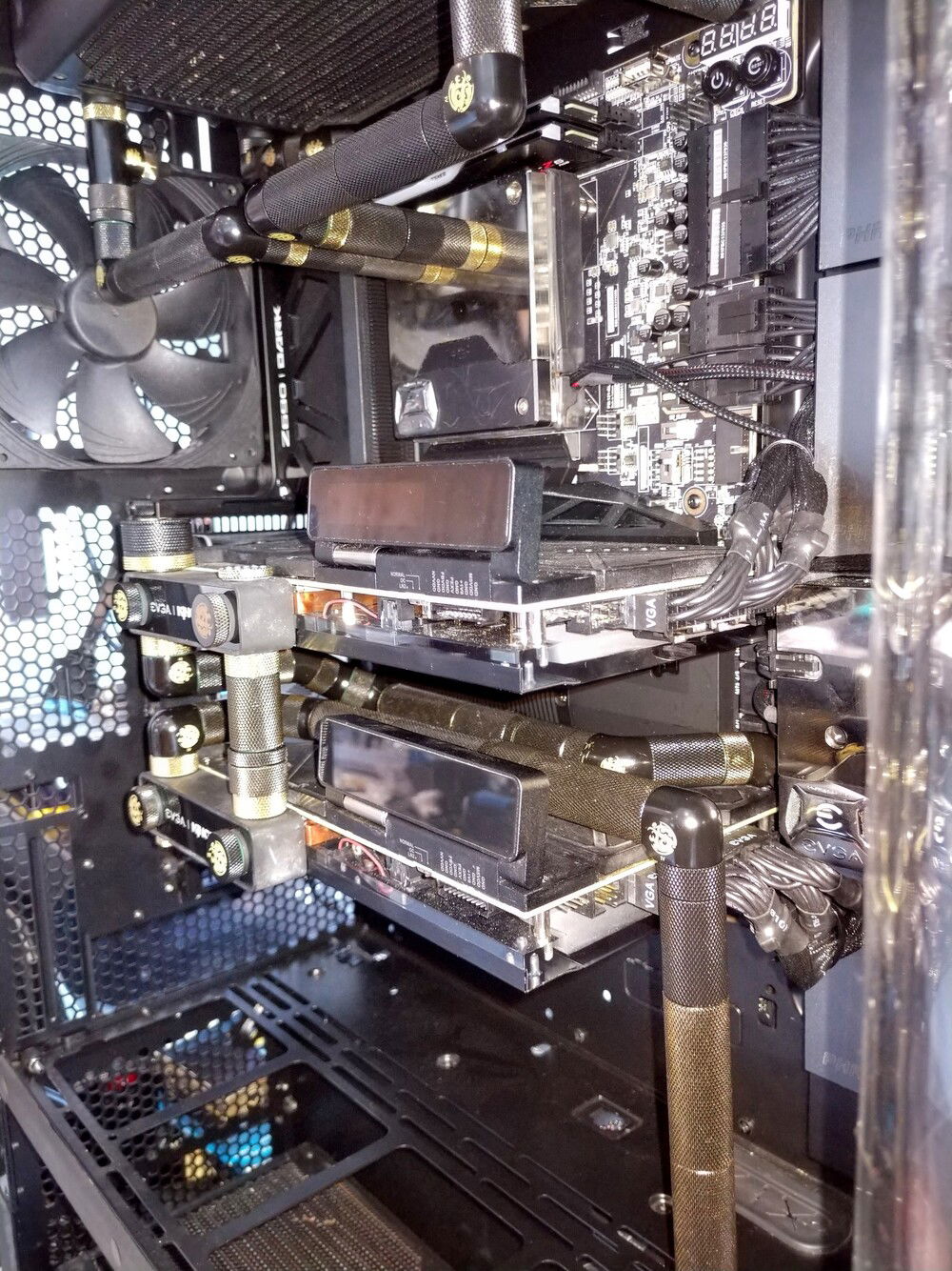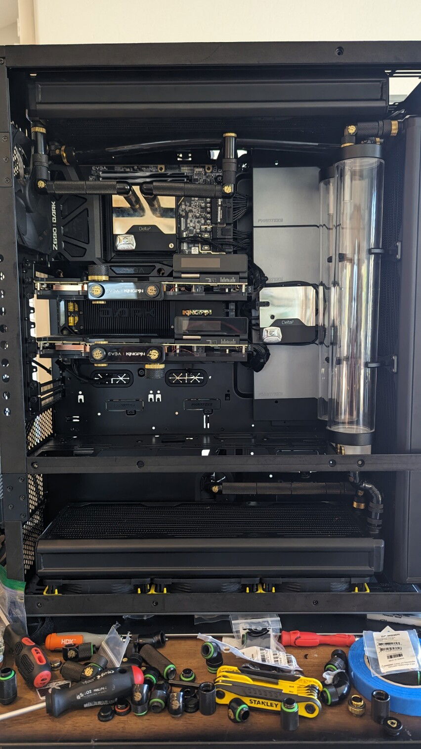 Update: All wiring is finished. Finishing last video card hard line for the inflow and then finishing the mora 420 rad line connections (for the gpu loop).