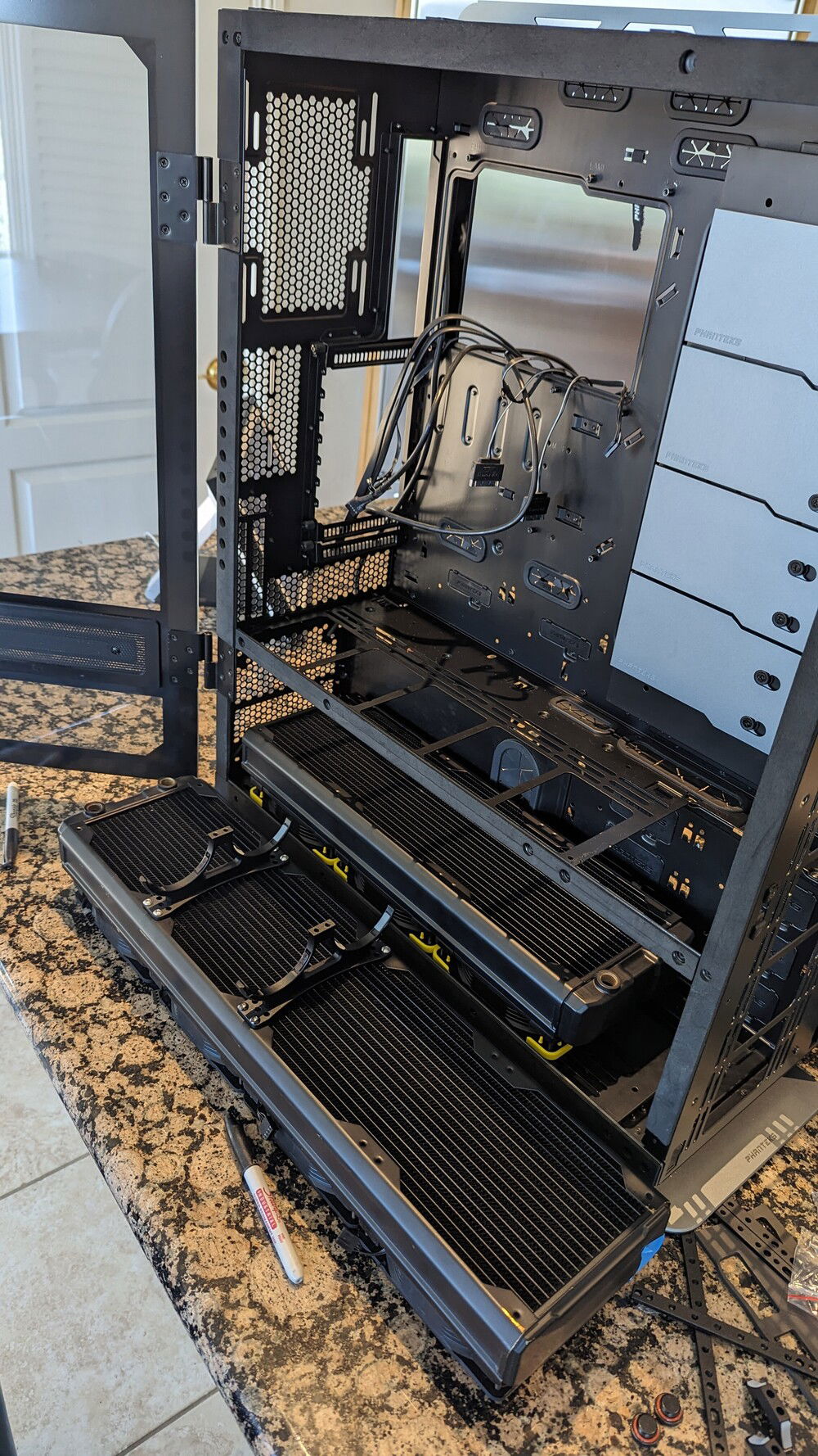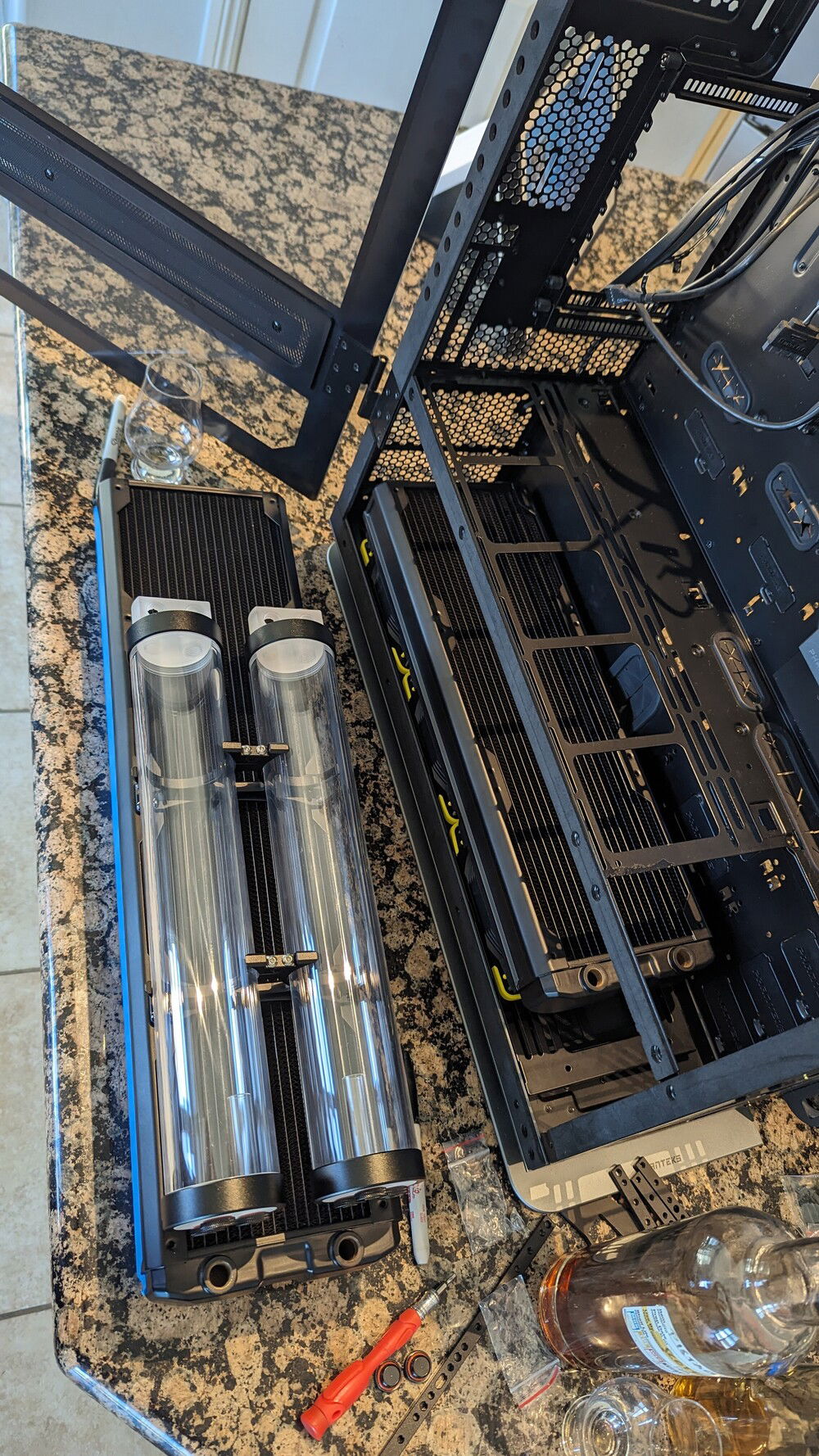 Finally had enough time to work out some leaks and bugs for the cpu loop. I have decided to rename this monster Nightmare (for obvious reasons lol) Next step is running and connecting water lines for the mora. I have a plan for how to hook it all up but this is custom and well plans can turn into nightmares real fast! Wish me luck and hopefully the next update will be much sooner!