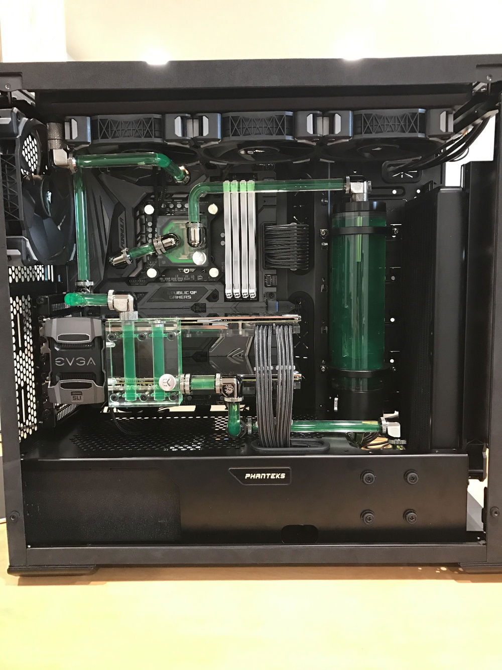The specs are as Follows=========================== 1 - Intel i7-7700k - Overclocked 2 - EVGA GTX 1080 FTW DT's - Overclocked 4 - 4gb Geil Super Luce white ram 1 - Asus Maximus IX Formula motherboard 1 - EVGA SuperNOVA 750 G2 Power Supply 1 - EVGA HB SLI Bridge 1 - Samsung 500gb 850evo m.2 SSD 1 - Phanteks Enthoo Evolv TG case