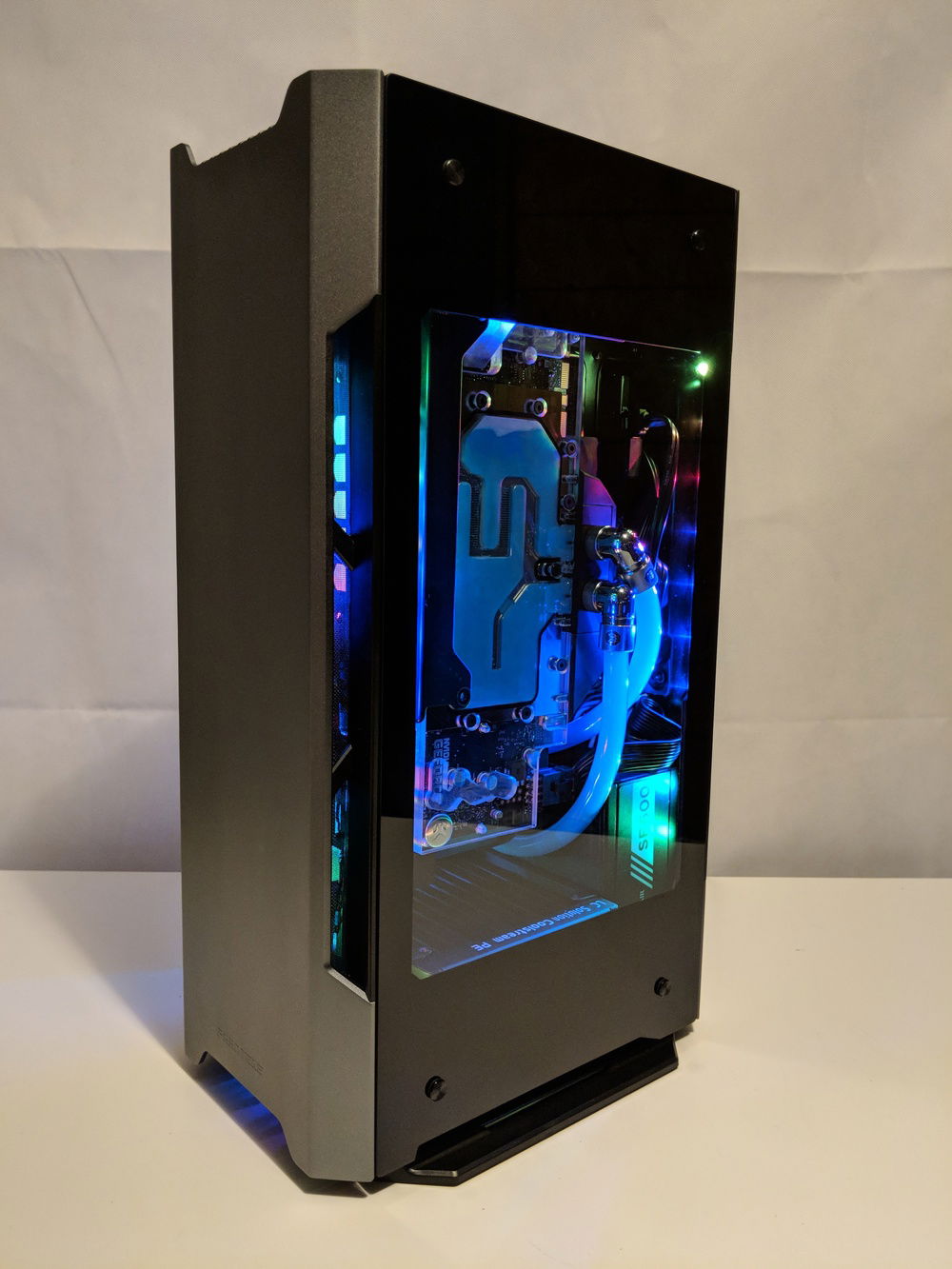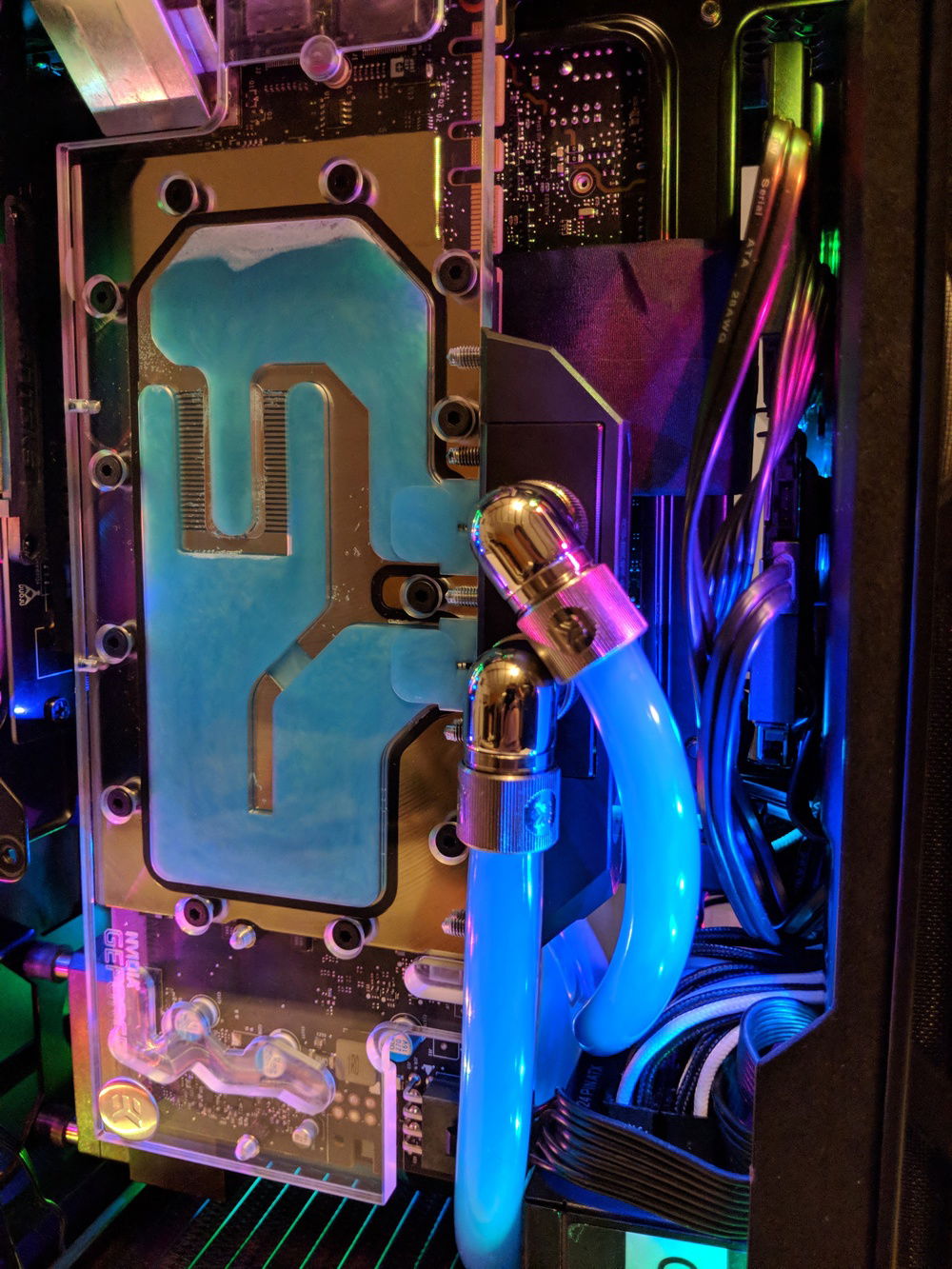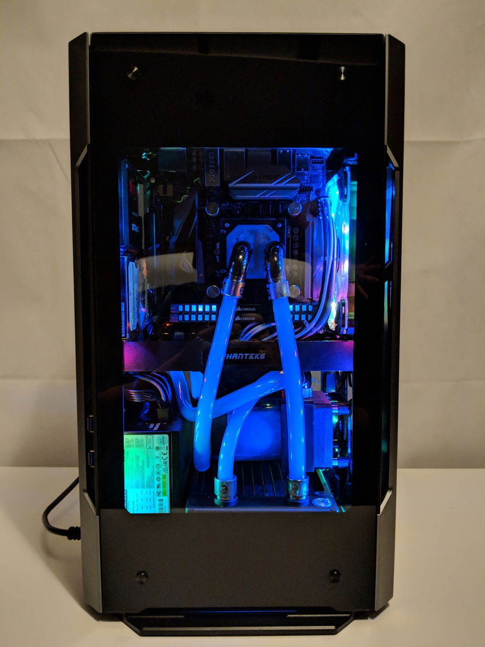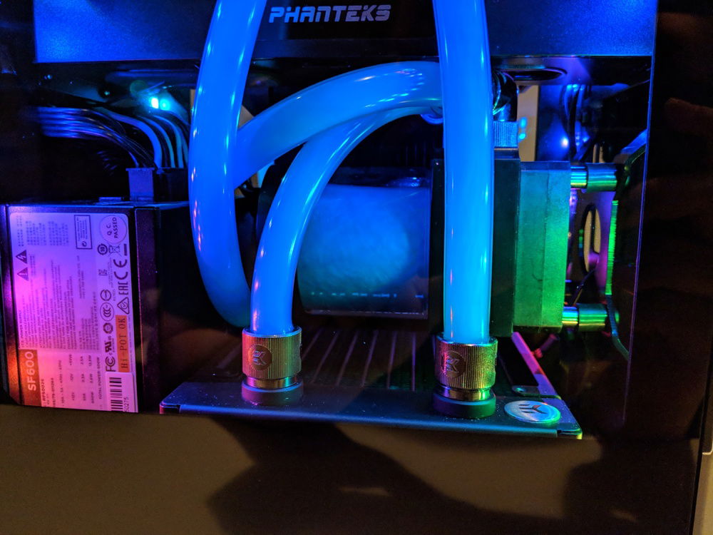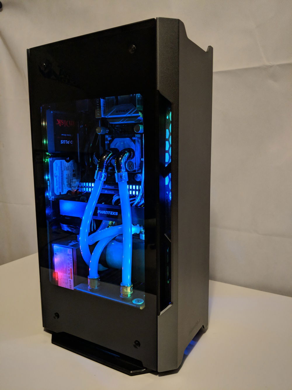 This build was challenging for me. Getting all these water cooling parts to fit in a small case is no easy task. The tubing is soft and the fittings, reservoir, cpu and gpu block are all from EKWB. The fluid is the Primochill Vue light blue which did start to break down after a month of use so I switched it out with XSPC blue fluid. you might be thinking how thermals are in this since there is only one thick radiator in this case? Well they are surprisingly good. The CPU hovered around 75C in most games while the GPU hovered around 65C. This was a surprise to me because I did not think that the single 120 radiator would be able to handle that. But I did have fun with this build.