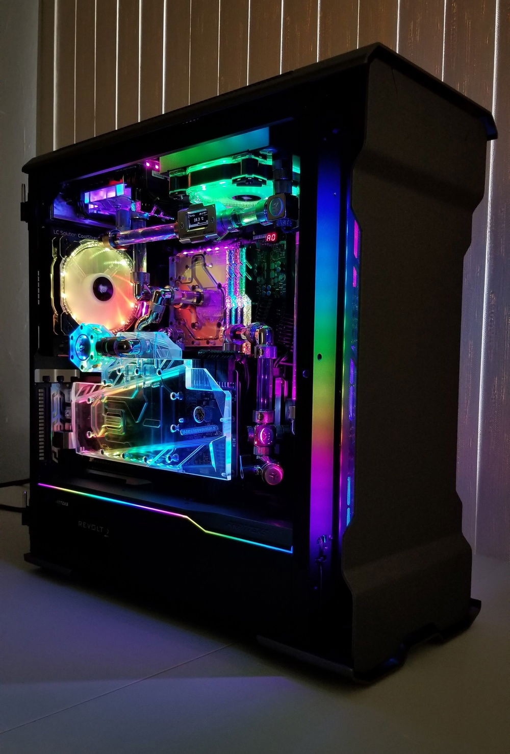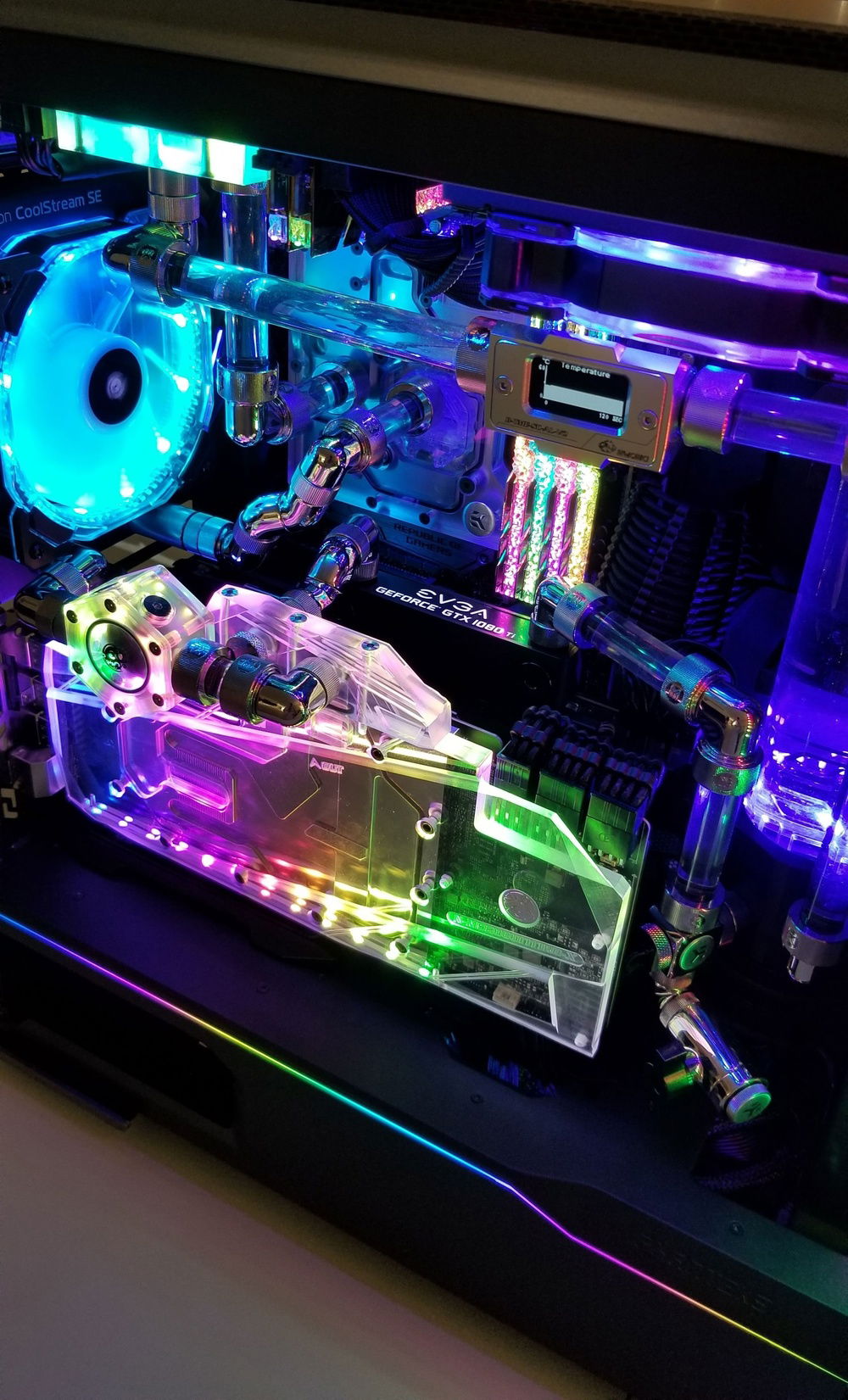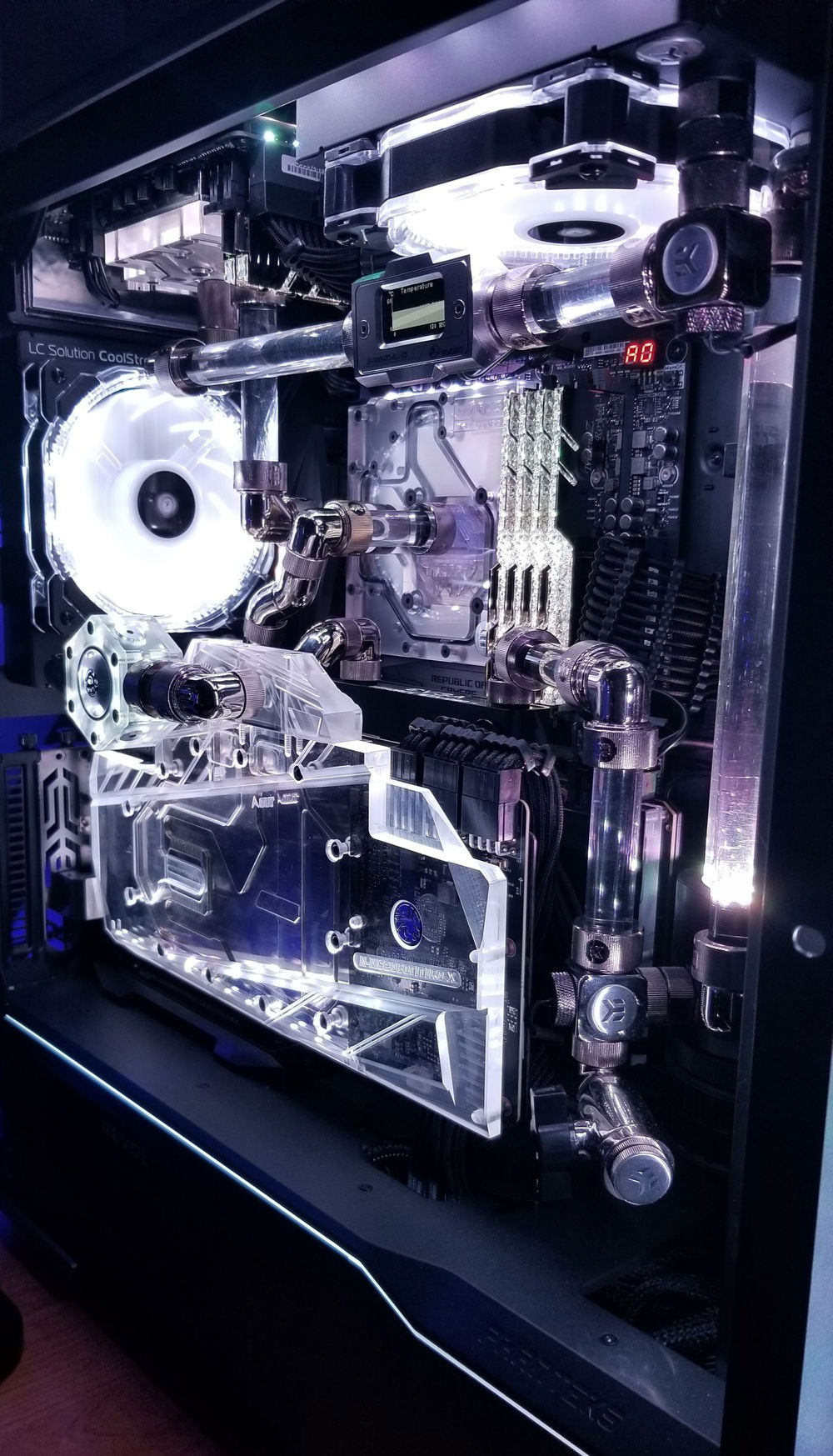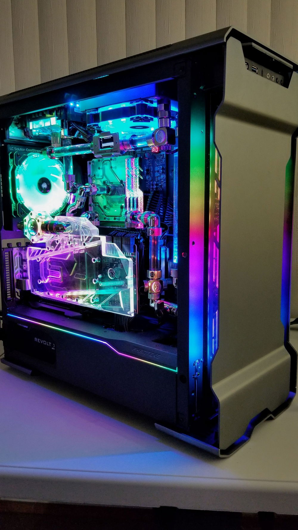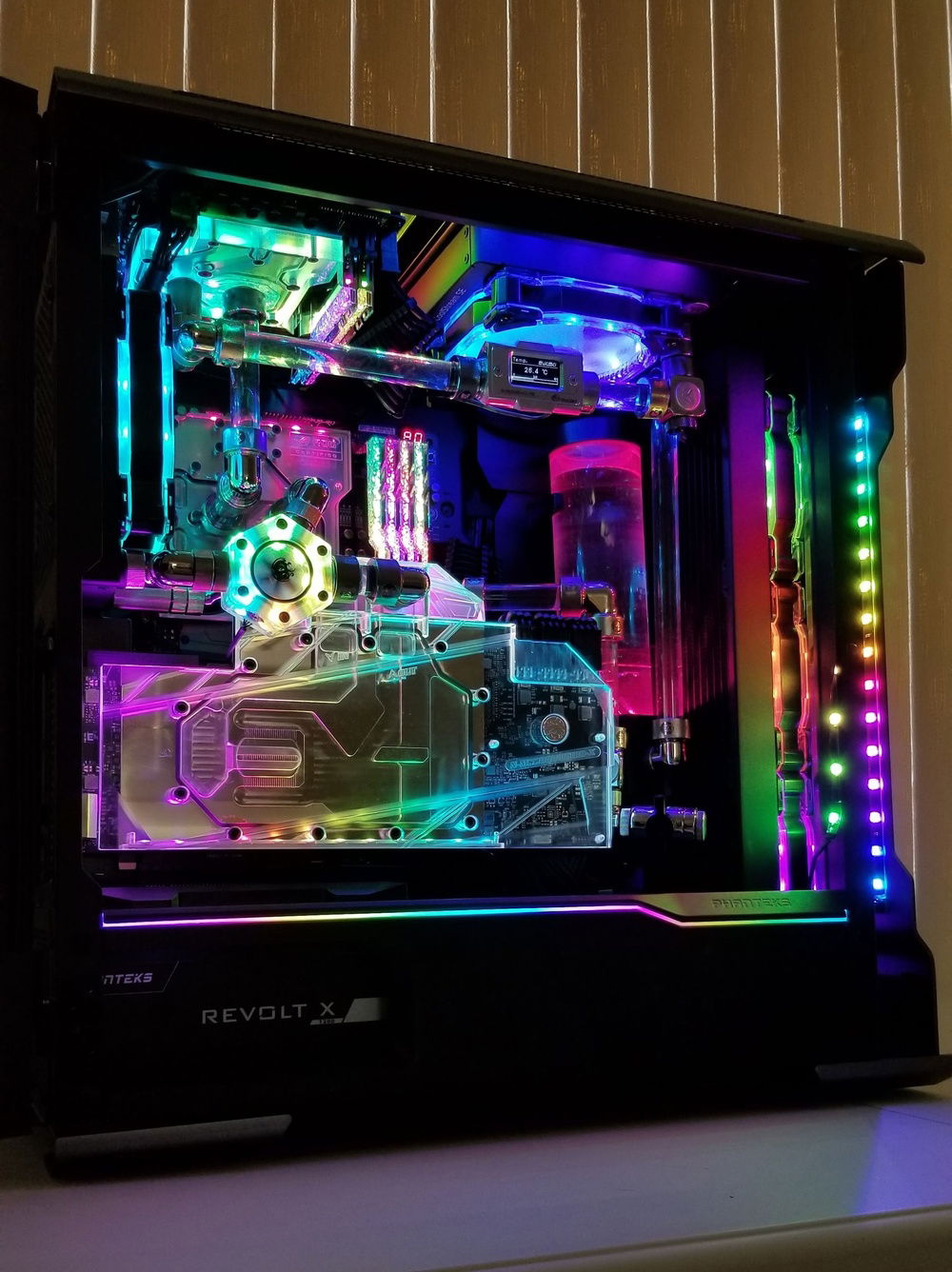 9900k+1080ti and 8086k+2080ti Dual System setup with a custom loop in Phanteks Evolv X case.