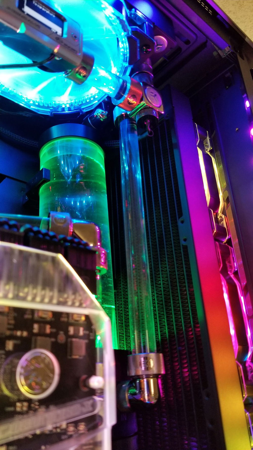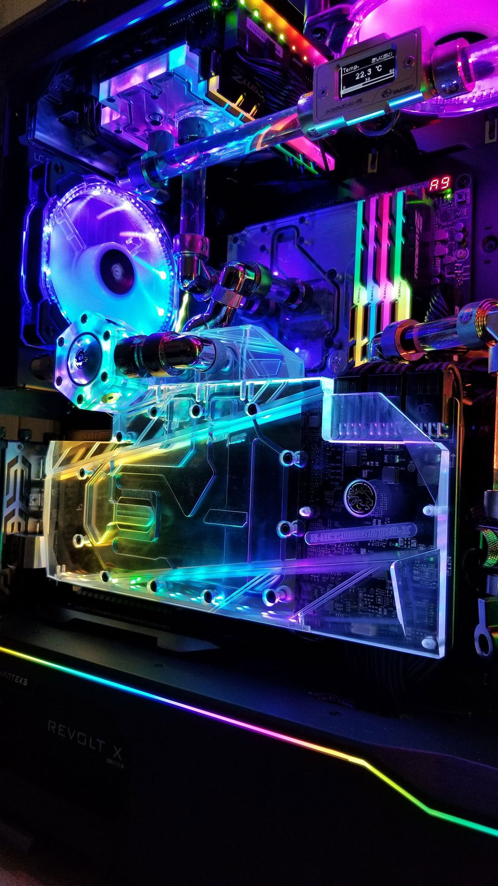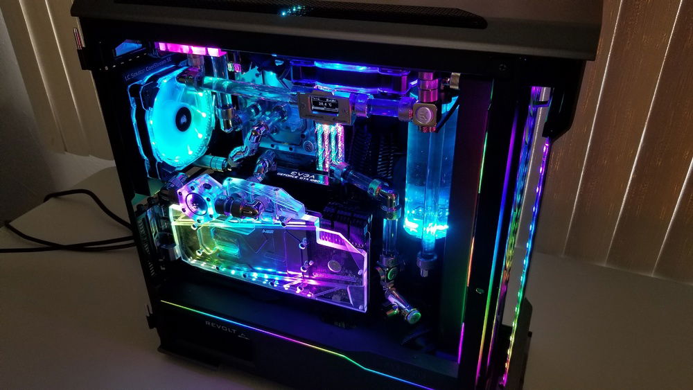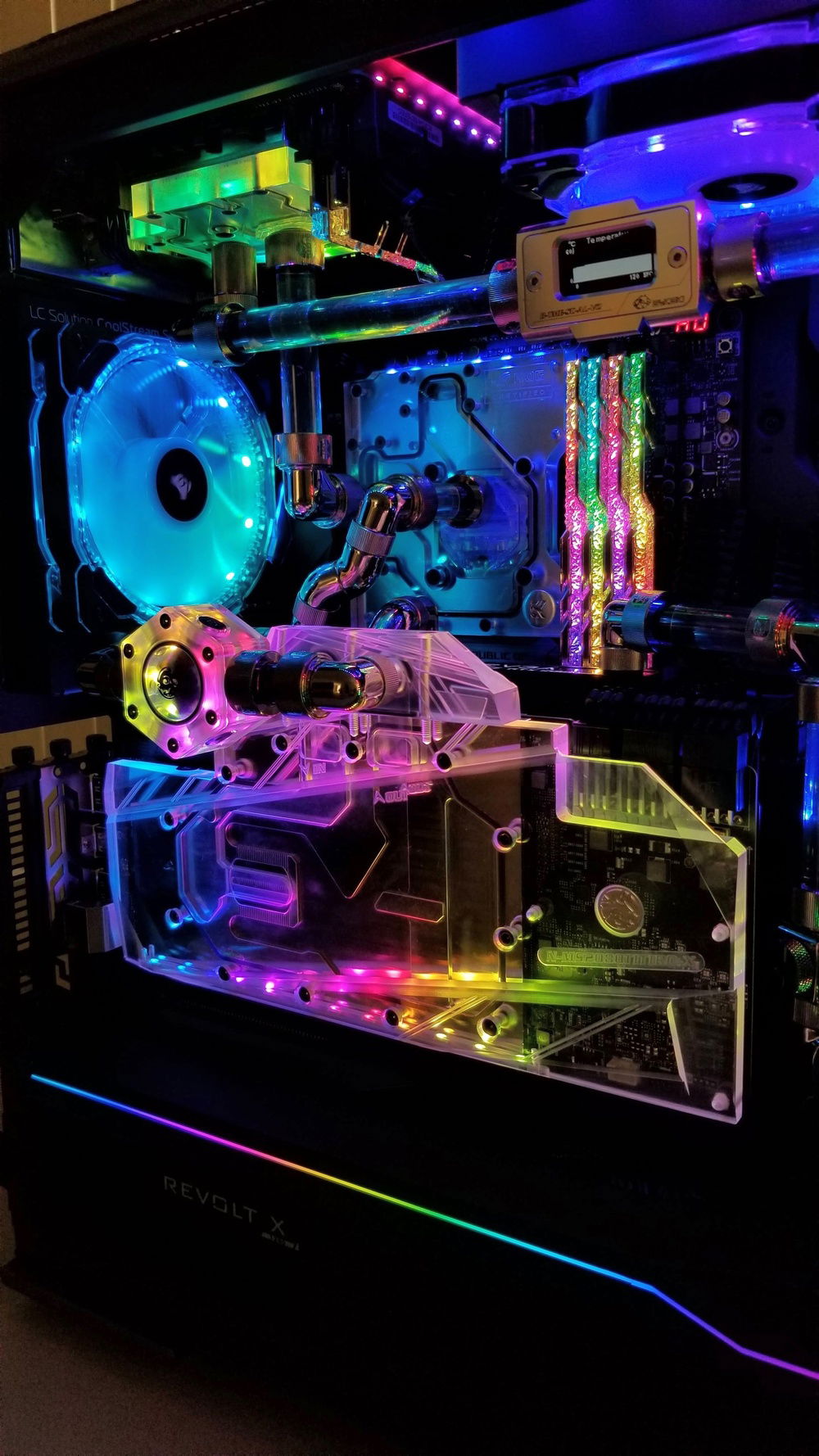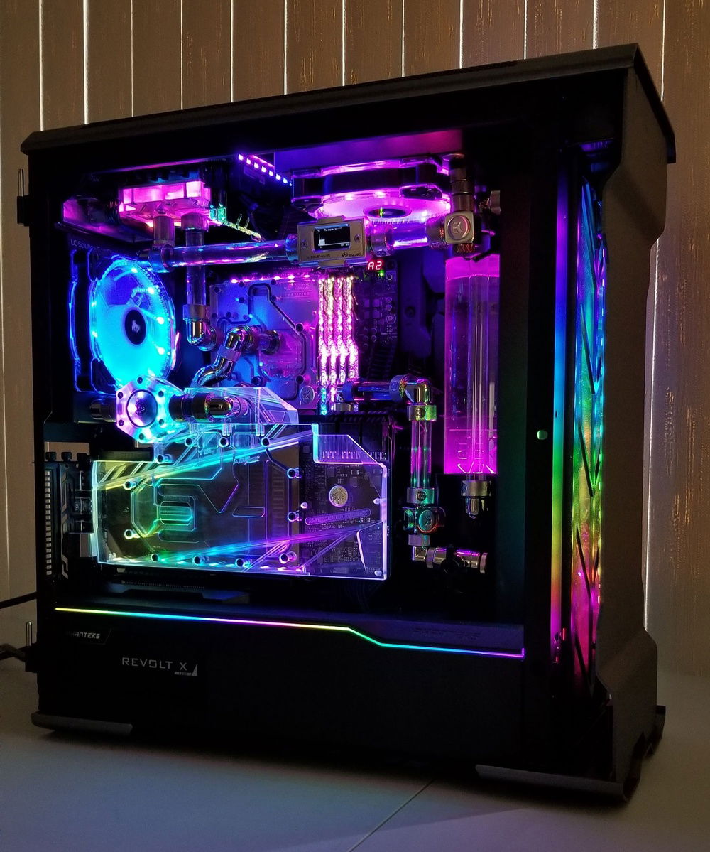 9900k+1080ti and 8086k+2080ti Dual System setup with a custom loop in Phanteks Evolv X case.
