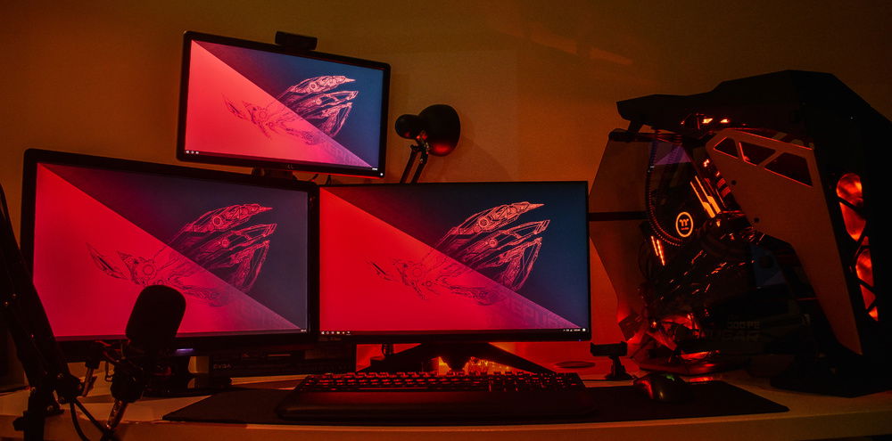My first impression when I saw this case on CES, I knew this is going to be the case where I build my dream PC. Here it is on it's glory. Built it myself with love and passion, paid attention to every little detail, such as, cables, placements of the RGB Controller, SSD and HDD, and a little bit of aesthetic sprinkles. - Specs: - Case: Cougar Conquer - CPU: Ryzen 7 2700x - GPU: ASUS ROG GTX 1080 Ti Strix OC Editiion - Motherboard: ASUS ROG Crosshair VII Hero X470 Gaming Motherboard - RAM: Trident Z RGB 32GB (3600Mhz) - PSU: EVGA SuperNOVA 1000 P2 1000W Power Supply - Cooler: Thermaltake 360 Floe Riing Plus RGB AIO - Storage: 500GB Samsung 970 Plus Evo M.2 SSD, 500GB Crucial MX200 SSD, 2TB Seagate Barracuda HDD.