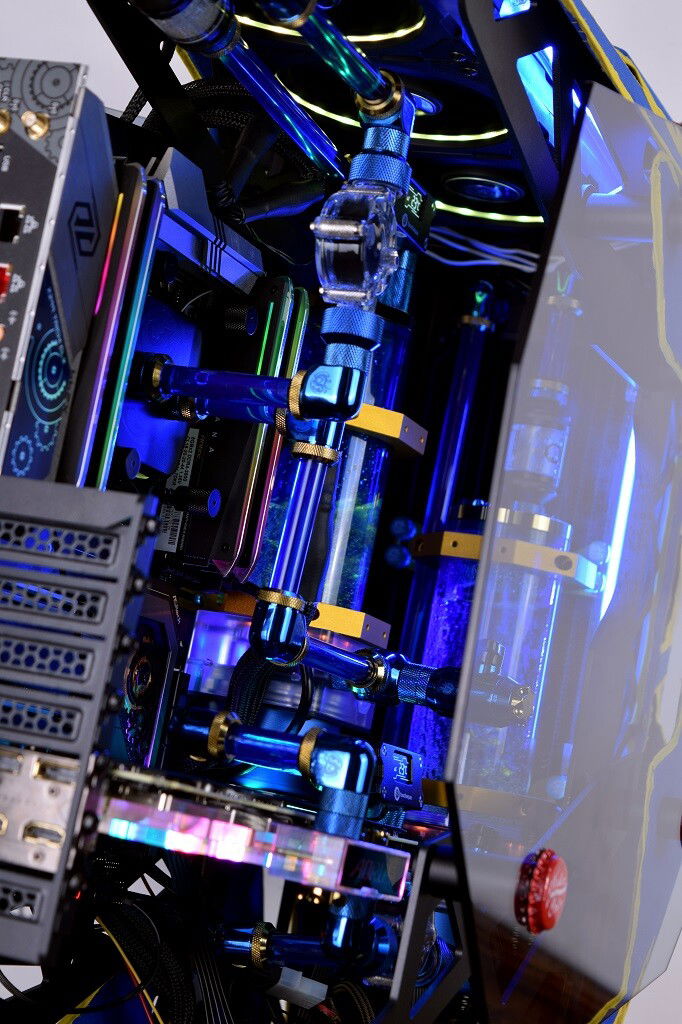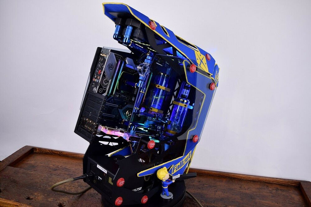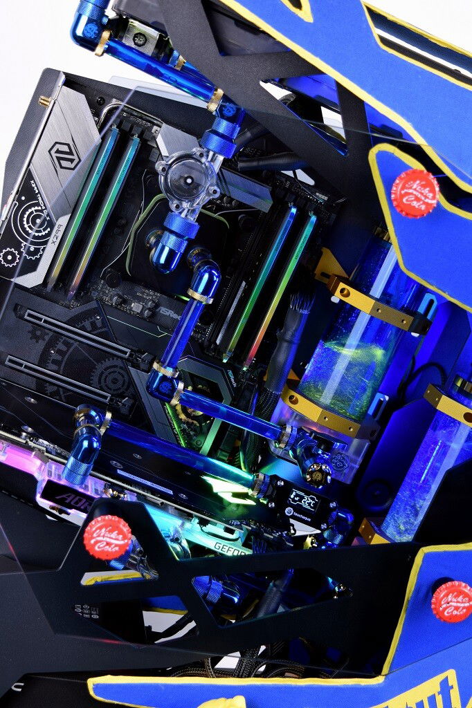 From the eye-catching look of the Antec Torque that comes a linear and sober design that has as its main theme the famous game, Fallout. The modification procedures concern the external aspect with the use of specific fabrics with blue and yellow colors giving the connotation and main feature without weighing the view too much. The specific use in the liquid cooling compartment of material that combines blue and yellow parts in contrast, completes the work inside.
