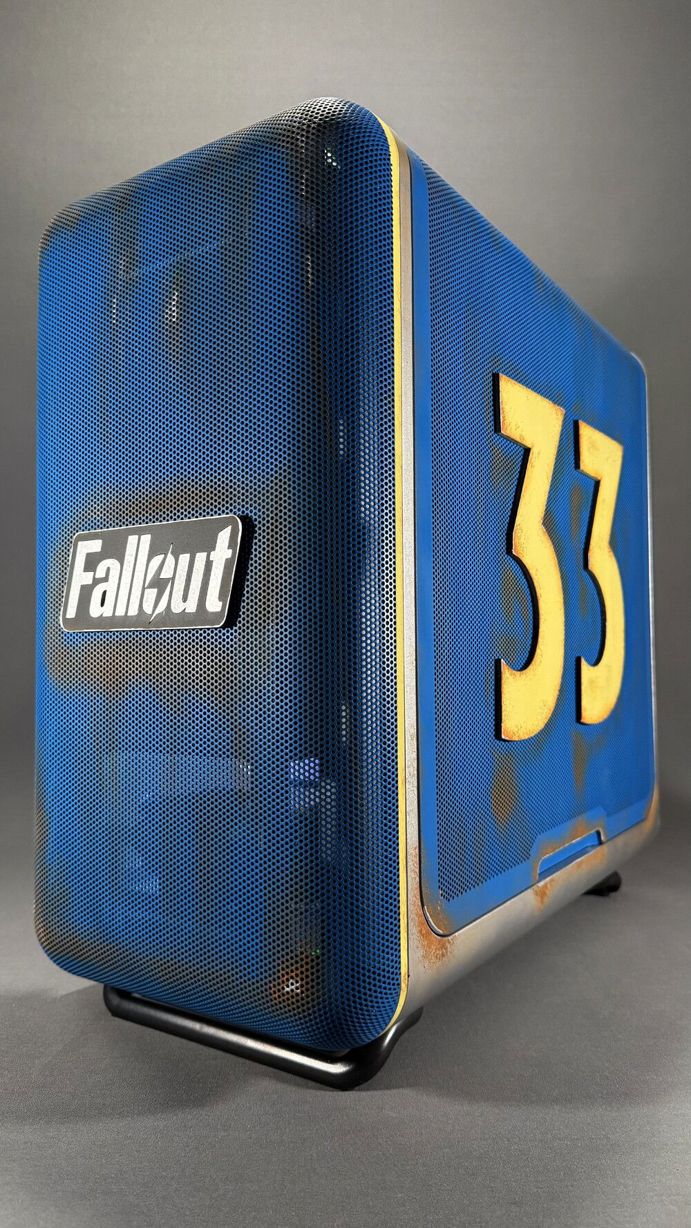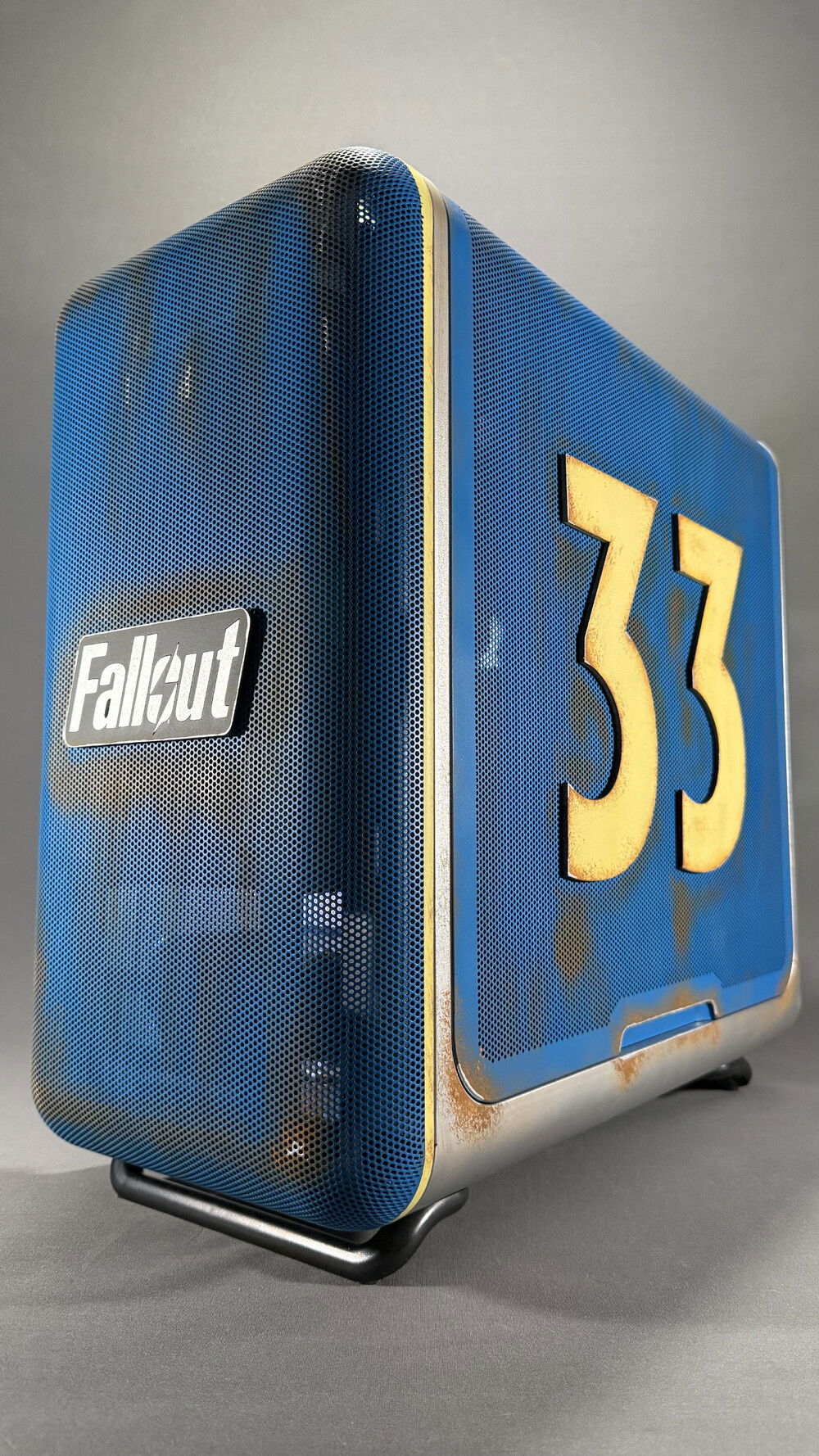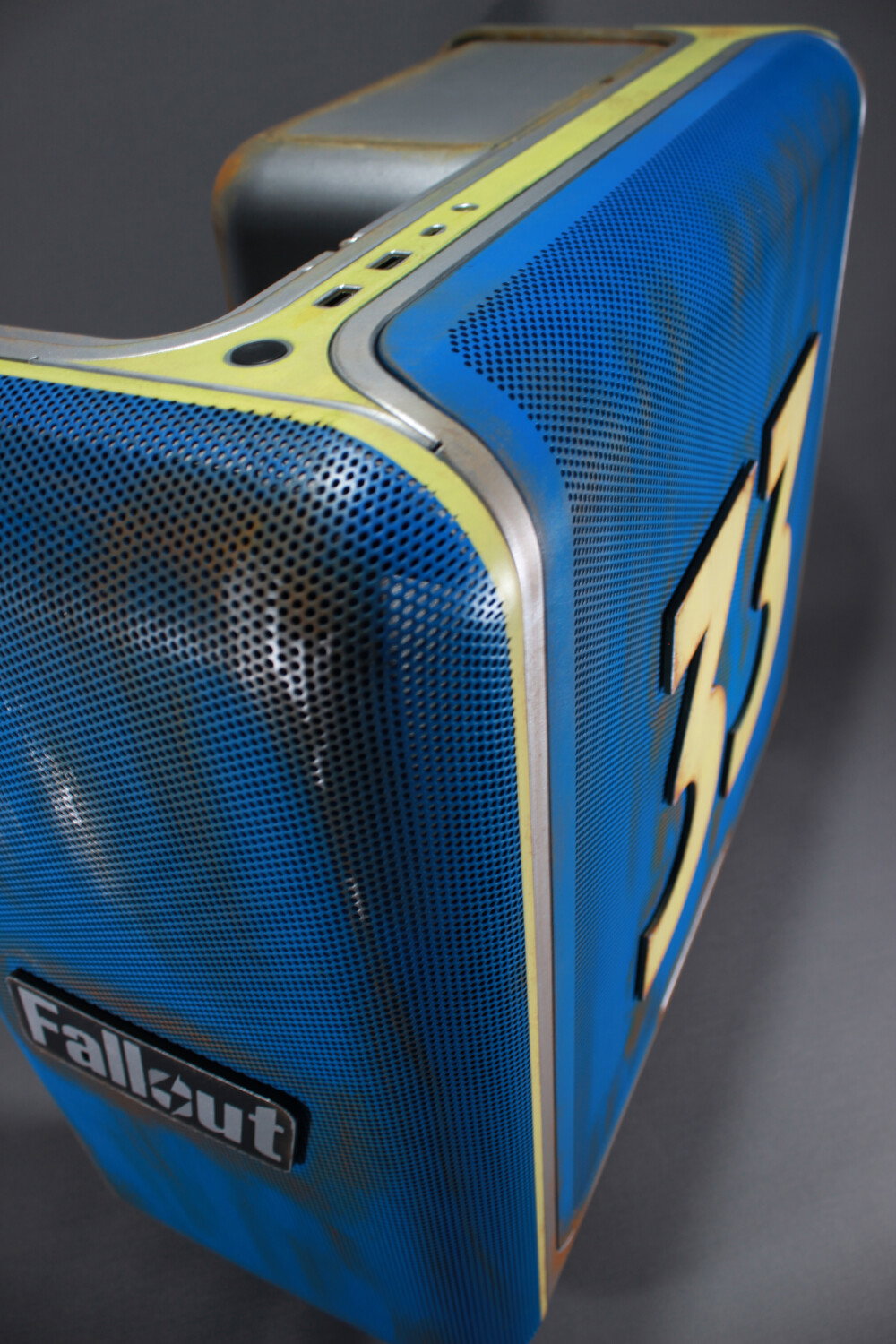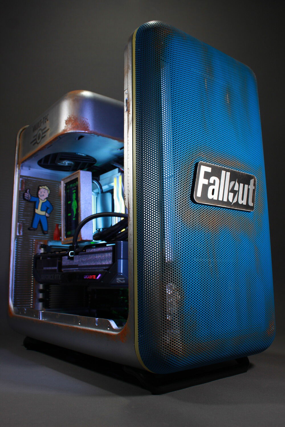 A true retro-futuristic look, as if this PC came straight out of a Vault-Tec shelter.