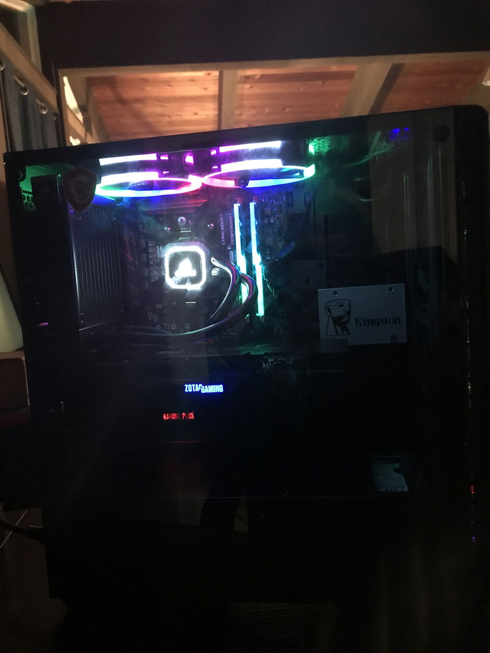 my computer is rocking a water cooler and radiator for the CPU, 6 RGB fans and rocking an RTX 2070 from Zotac Gaming