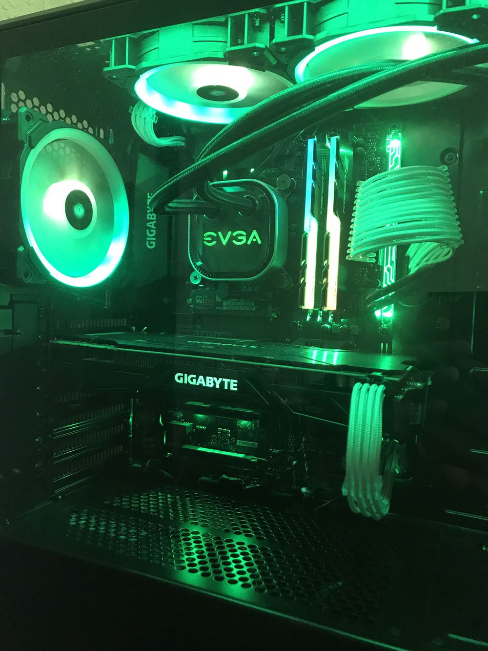 Built this as my first pc during the first couple days of 2018. Since the year I've had it I've upgraded my cpu cooler, got cool fans and cables, and got a much better monitor than what i started with.