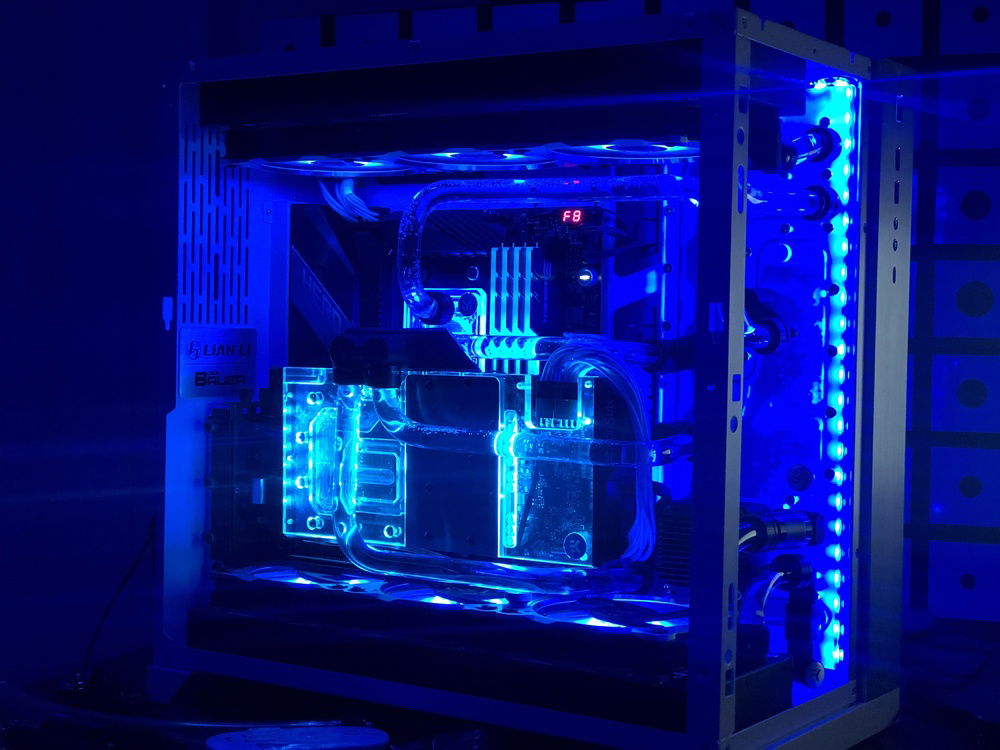 Today I finished all of my tubing and put distilled water in the system. I had some leaks on the pump, because the O-ring wasn't in there right. Took a while to get it placed right :D. Anyways the system is up and running right now and looks great. I mean tubing & bends aren't perfect but since I don't have any tubes left, I'll leave it like this for now.