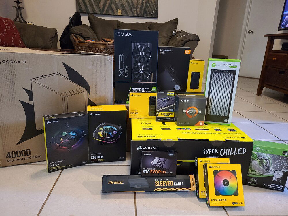 Mostly Corsair, with the exception of one radiator and GPU Waterblock from EKWB.