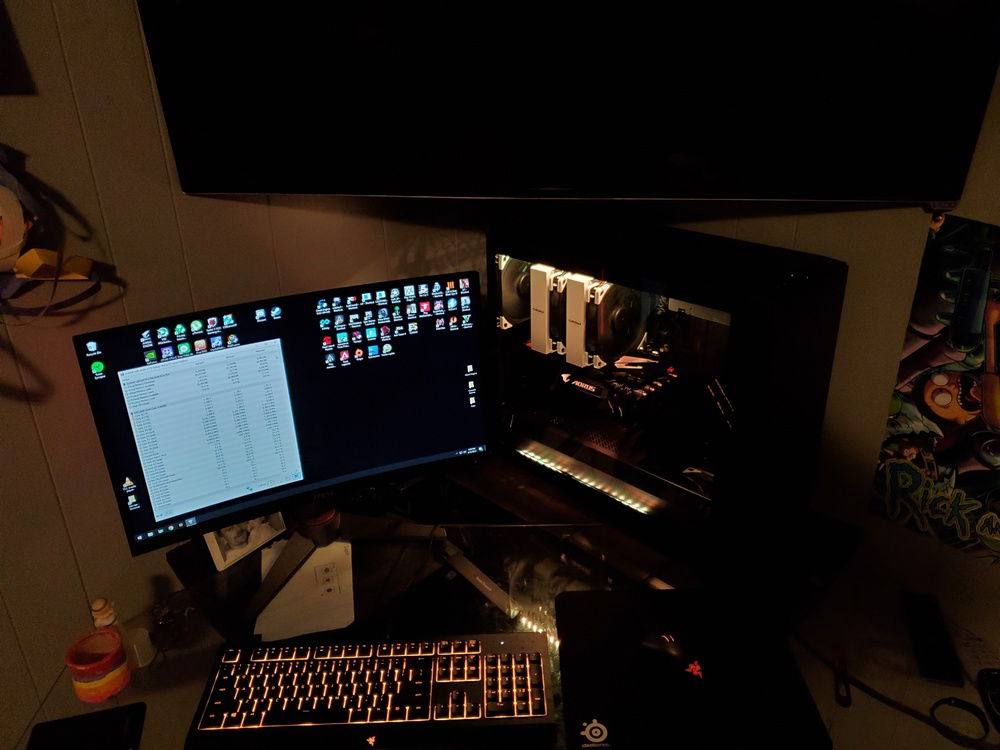 Fractal One is a Core i5 delidded (awaiting i9 9900k), overclocked to 5.3ghz with max temps around 82°c no AVX offset. Its mounted on a Gigabyte Aorus z390 Ultra motherboard with the uncore running at 5.2ghz. 32gb of Corsair LPX Vengeance DDR4 3000. Gigabyte Aorus GTX 1080 Ti clocked at 2050mhz. Adata Sx7000 M.2 Nvme operating system drive. 3 x 3000rpm 140mm Noctua ippc intake fans, 2 x 2000rpm 140mm Noctua ippc fans on Noctua NH-D15 cooling the cpu with liquid metal on the heatsink heatplate. 1 x 2000rpm Noctua 140mm ippc exhaust fan. All powered by a Seasonic Focus Plus Gold 1000w PSU.