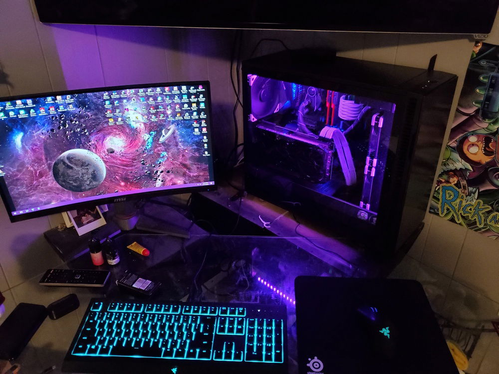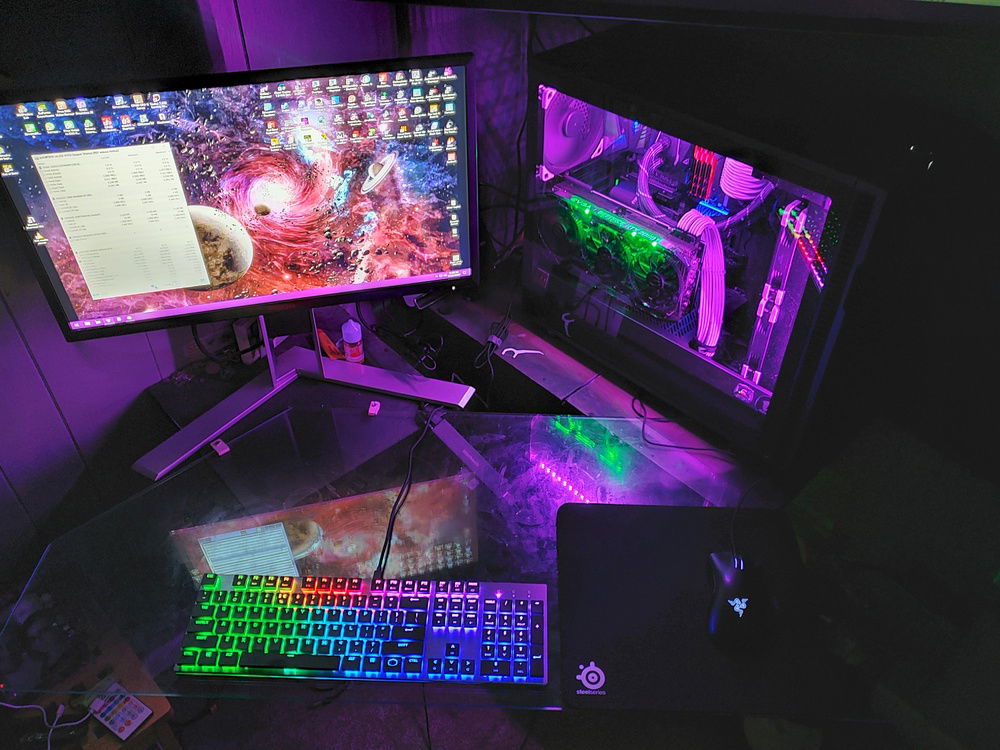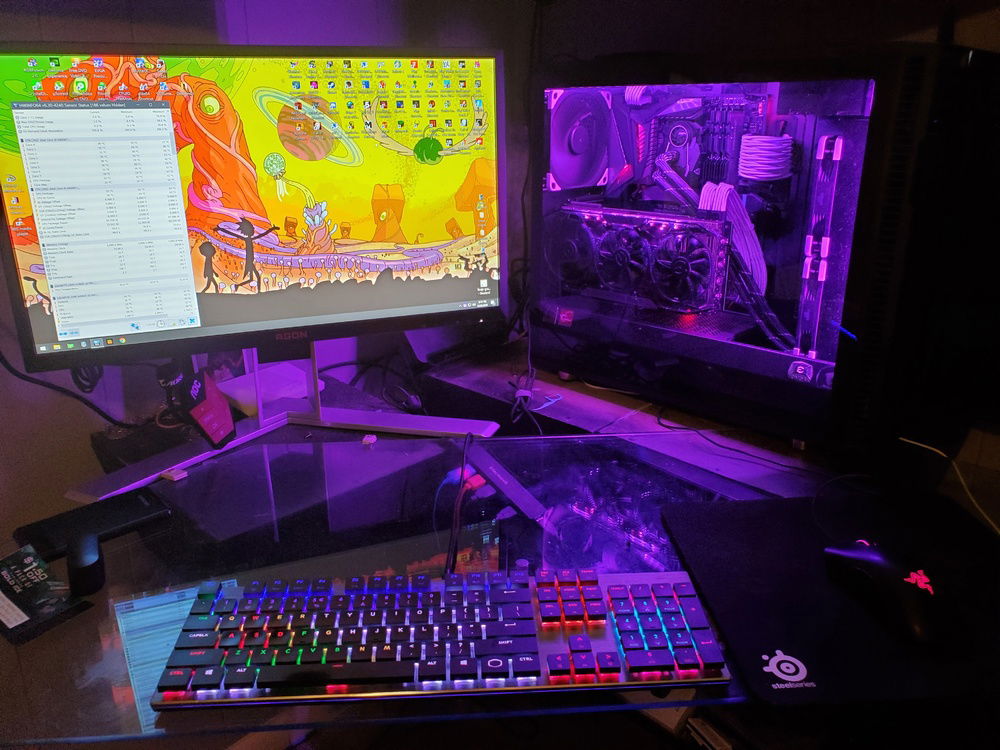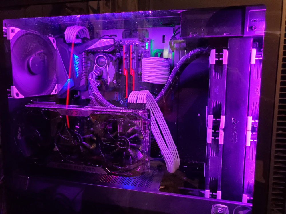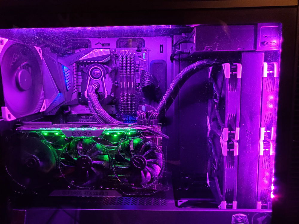 Core i9 9900kf, 5.0ghz 1.35v. AIO cooler instead of air. Same motherboard and ram, psu, and hard drives. Ended up having to get Evga Rtx 2080 ti FTW3 because I couldnt get my Aorus waterforce. Have a Galaxy theme going that I like. Did a vertucal mount on my gpu too. Replaced the thermal compund on the gpu with Noctua Nt-H2. Dropped temps 15°C. The 9900kf at 5.0ghz max temps on prime95 hits 88°C.