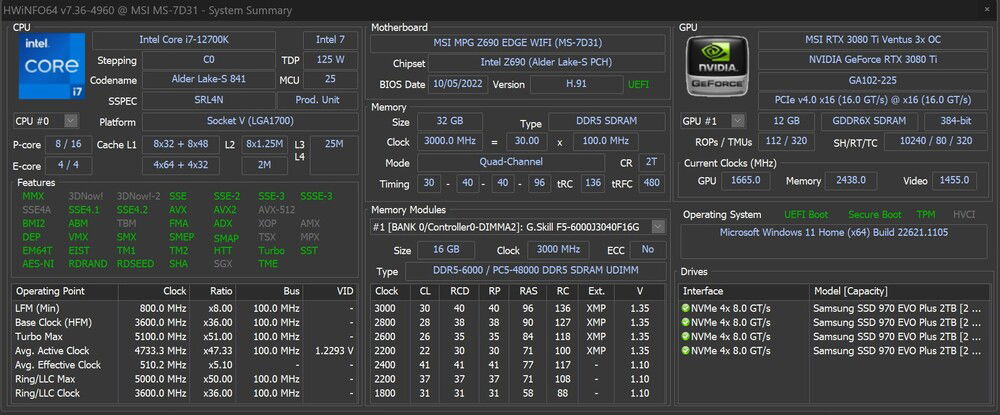It took me a few weeks to learn to apply stable settings but I've been able to manage a substantial increase in both the i12700k processor and 3080ti. The stock timing on the DDR5 remains the same with XMP enabled.