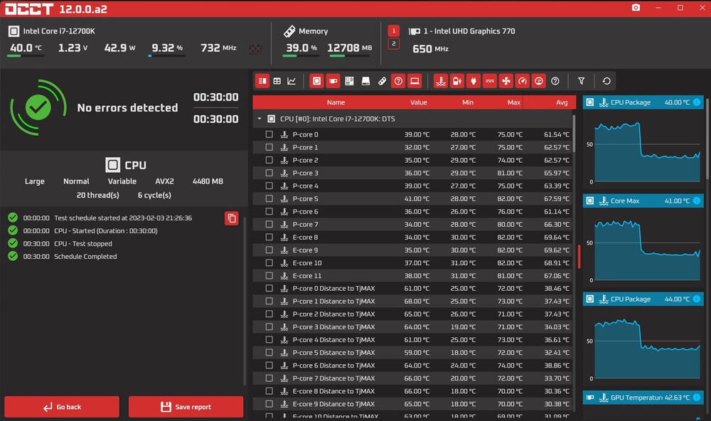For the i12700k, I changed the stock ratio to 50 for all pCores and 40 for all eCores, with a 0.060 undervolt using Adaptive settings in BIOS. The stable temperature range without load is 28-32c, under load using AIDA64 for 30 minutes is between 78-86c.