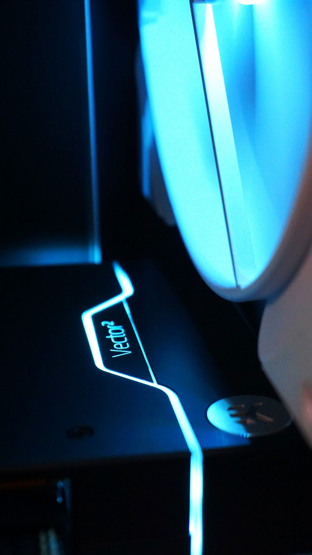 Backplate: 14mm acrylic cut to size, matt black automotive vinyl, aluminum corner strips, argb strip behind the plate