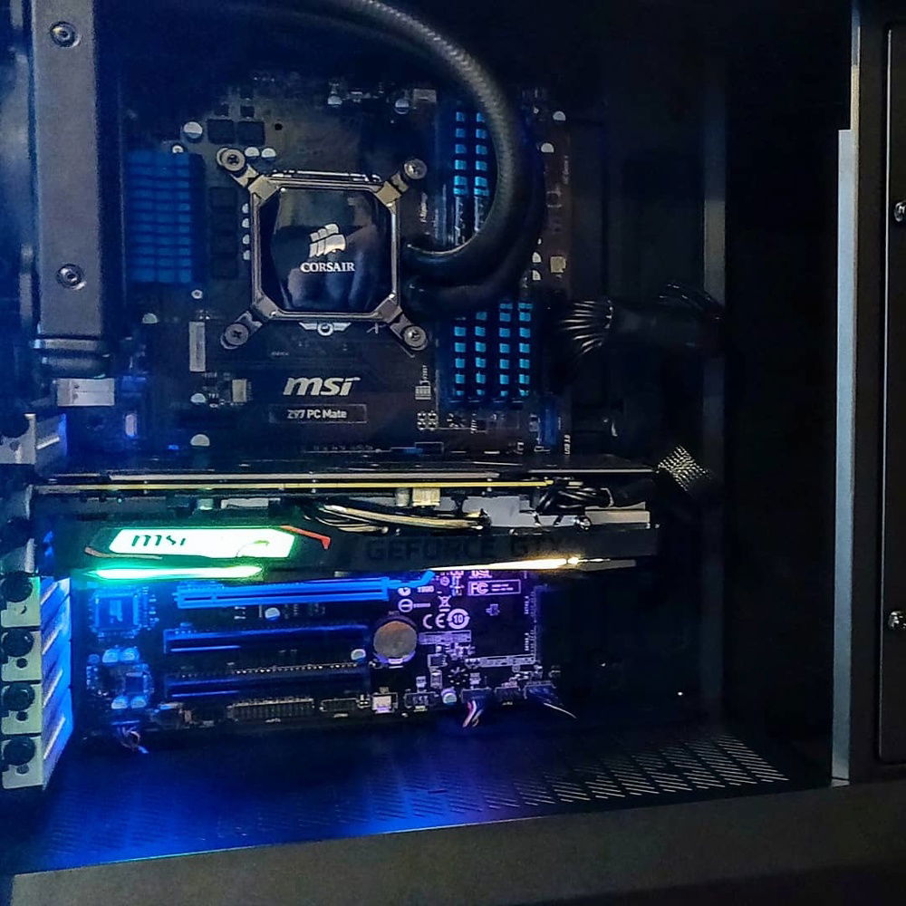 This is the current set up thanks to some cheap Walmart LEDs I was able to get a nice lighting effect going. This is my gaming set up I think it is pretty well put together. The PSU is going to be a seasonic soon just waiting on some funds. Ty enjoy the new pics. Also ignore the cable mess behind the rig. I need to go buy zip ties