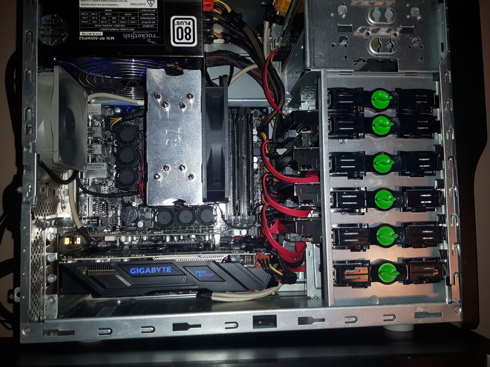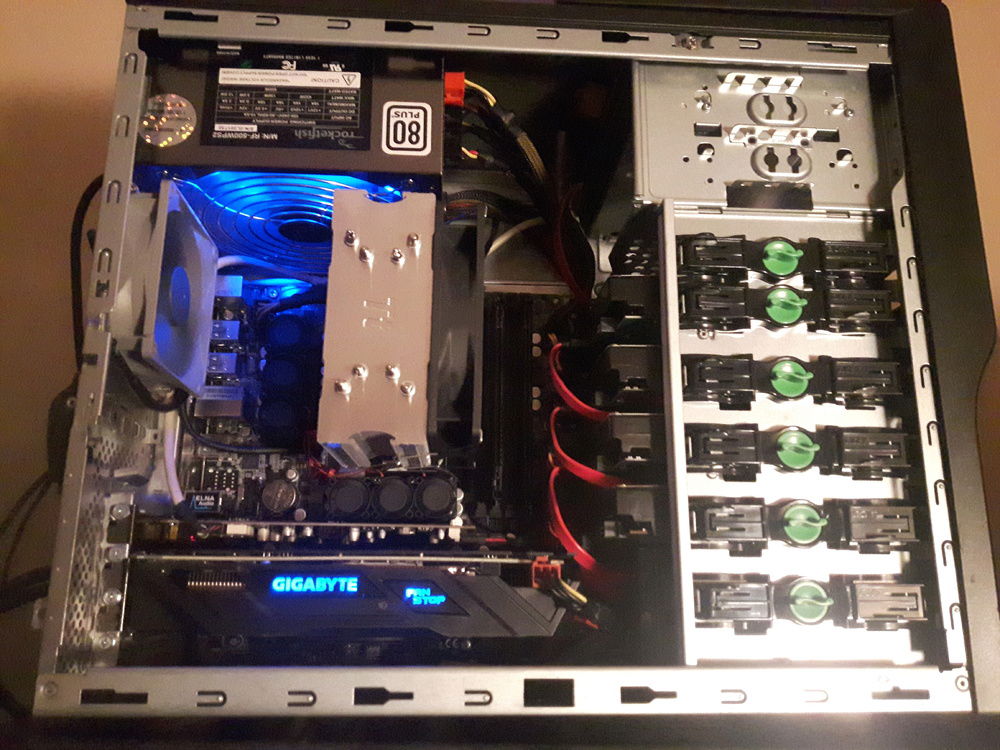 After upgrading the motherboard to an ASRock 870M Pro3, now i can fit in more hard drives and have enough USB 2.0 to run all my peripherals without having to unplug/plug in different things.