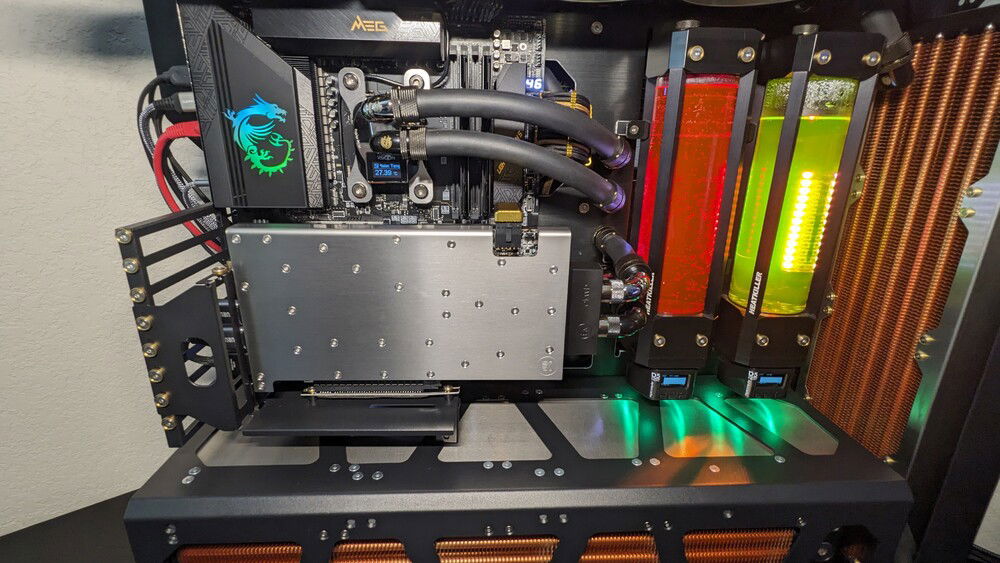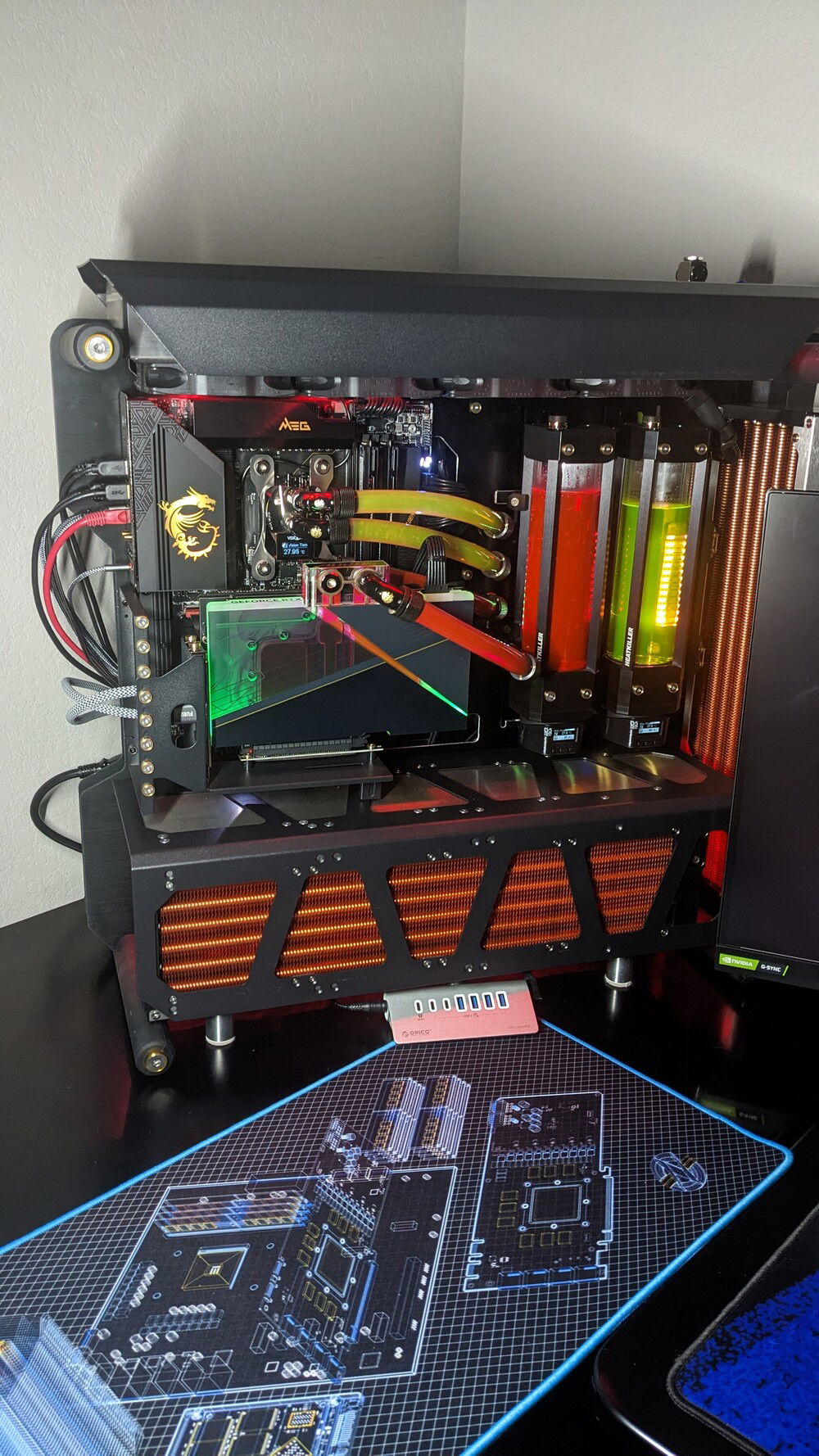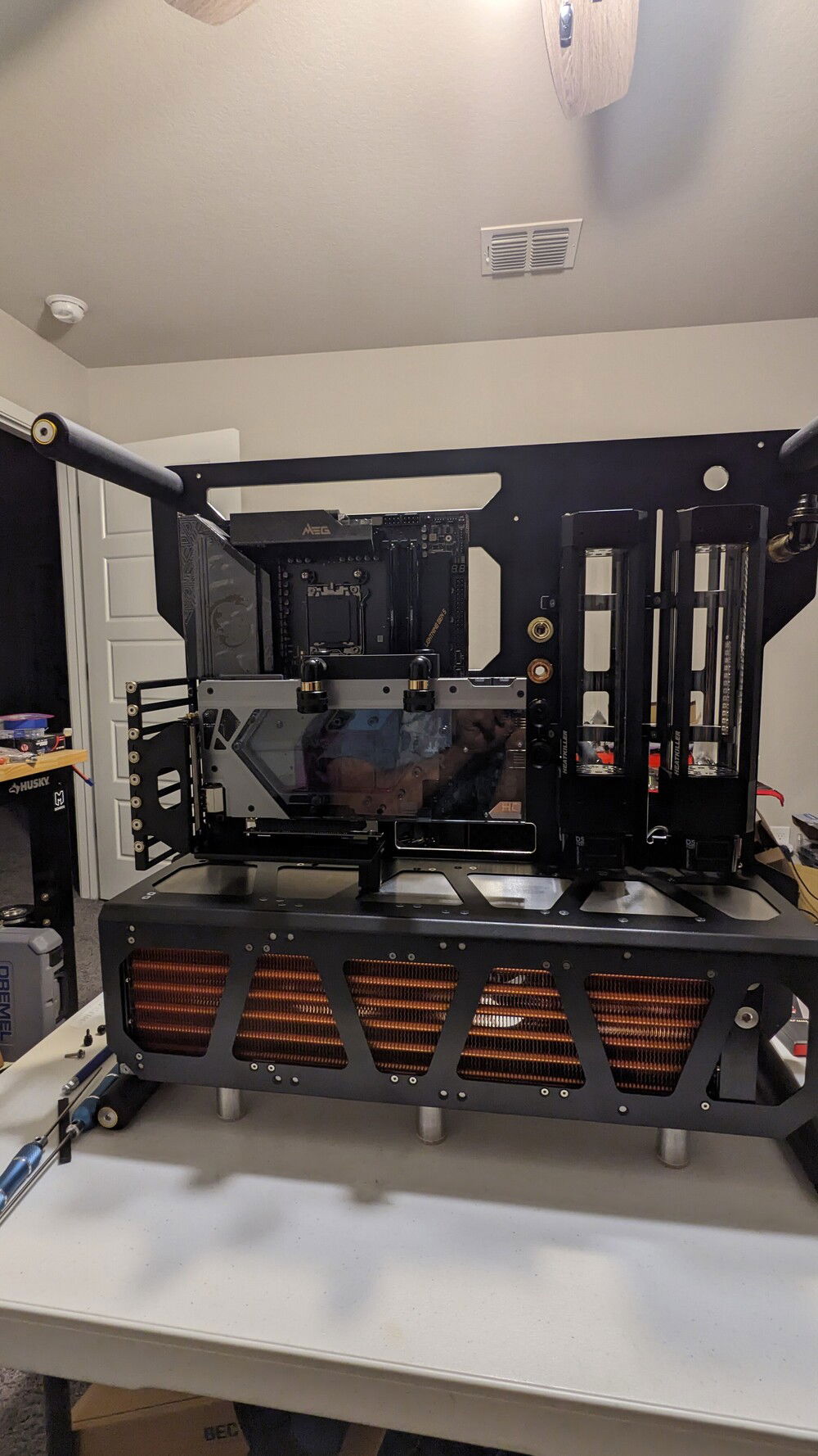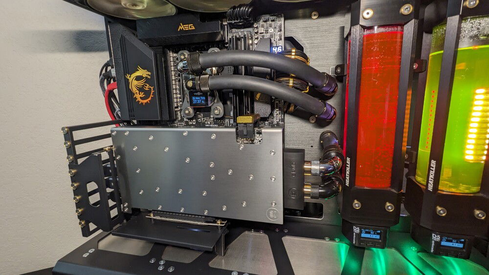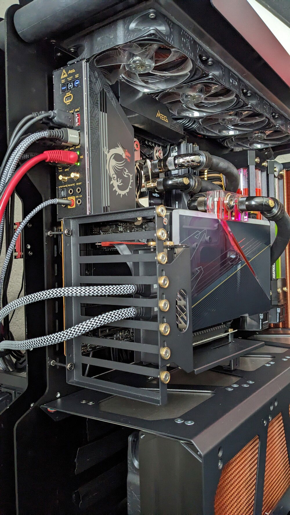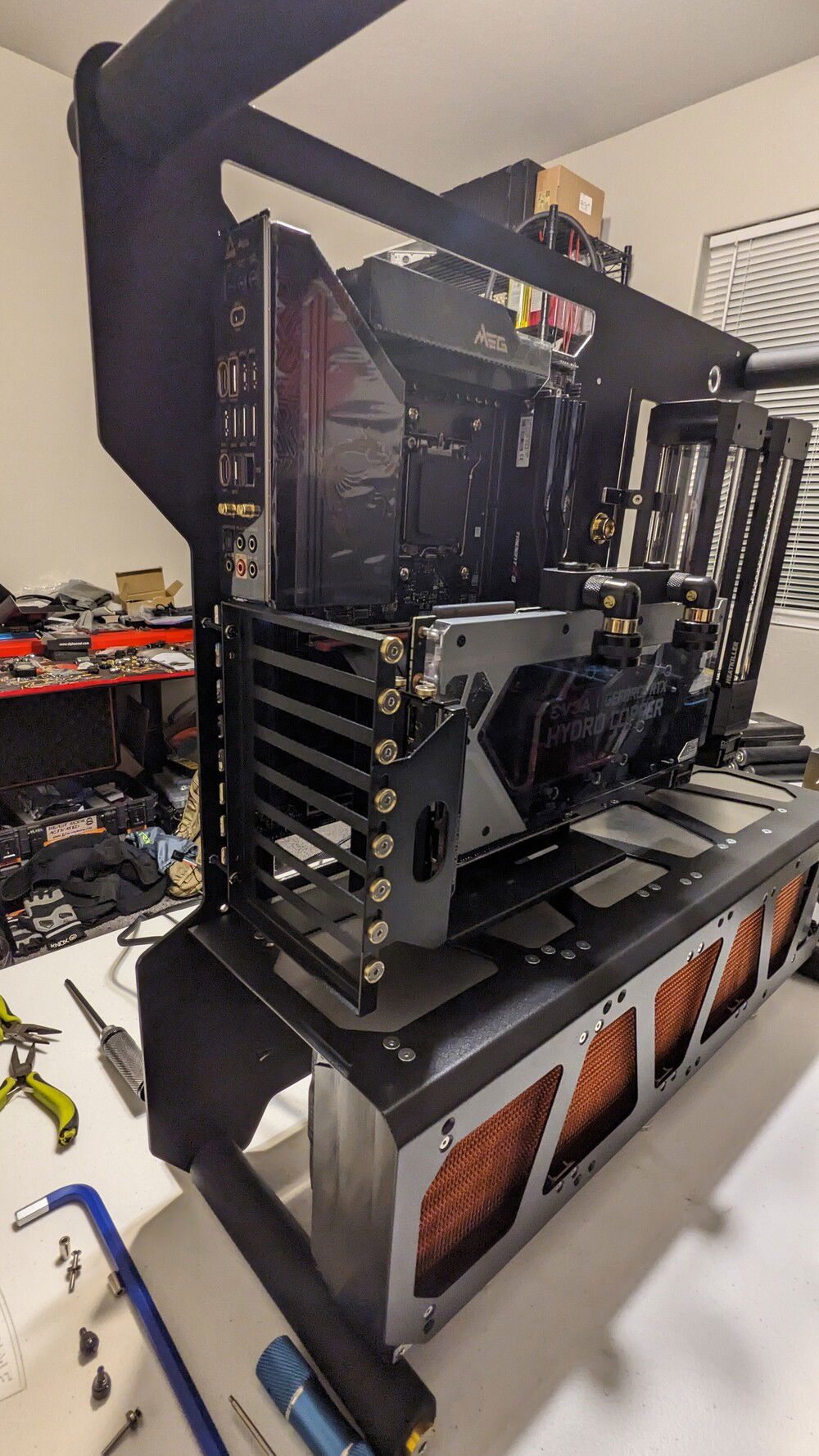 I was looking online and trying to find a 4080 WB that would fit my PC design and complement the overall feel. Well, I didn't find anything I liked. Till I found the EK-Pro GPU WB Rack, this WB has the industrial feel and looks the part. The added bonus is I needed to upgrade to a 4090. So what better than just talking about it? Here are some pictures of Frankenstein 02 with its new WB and GPU.