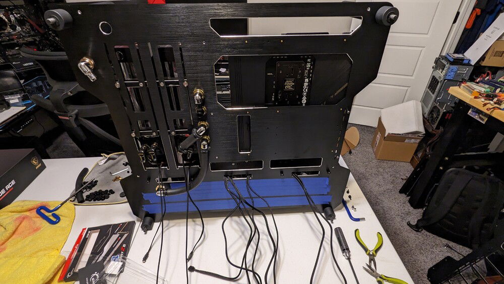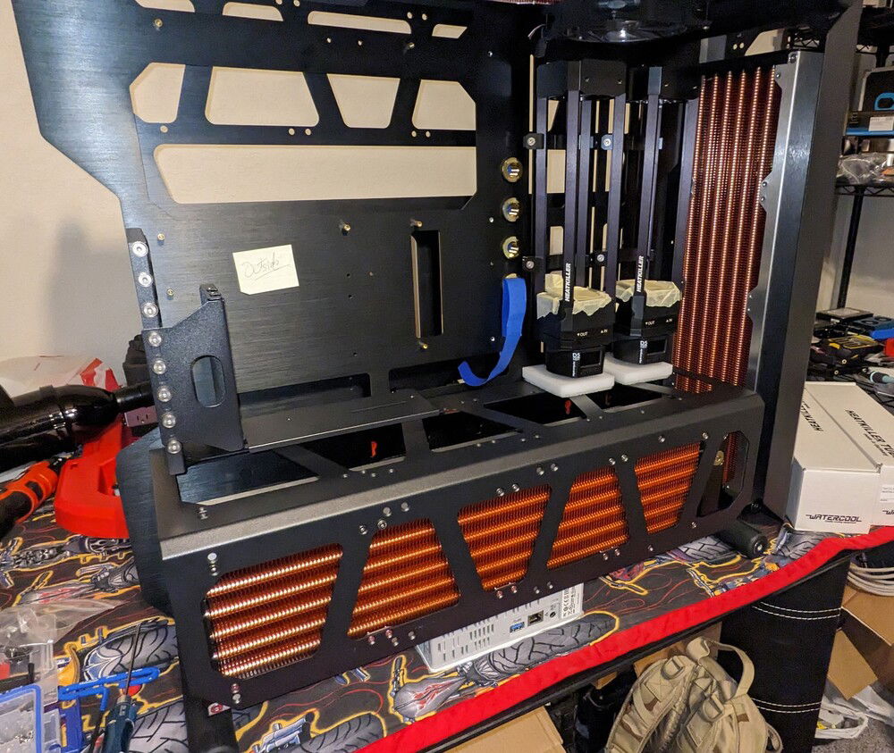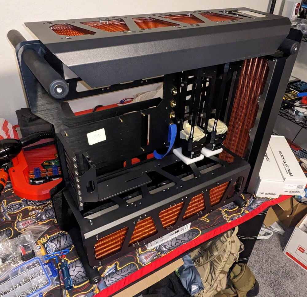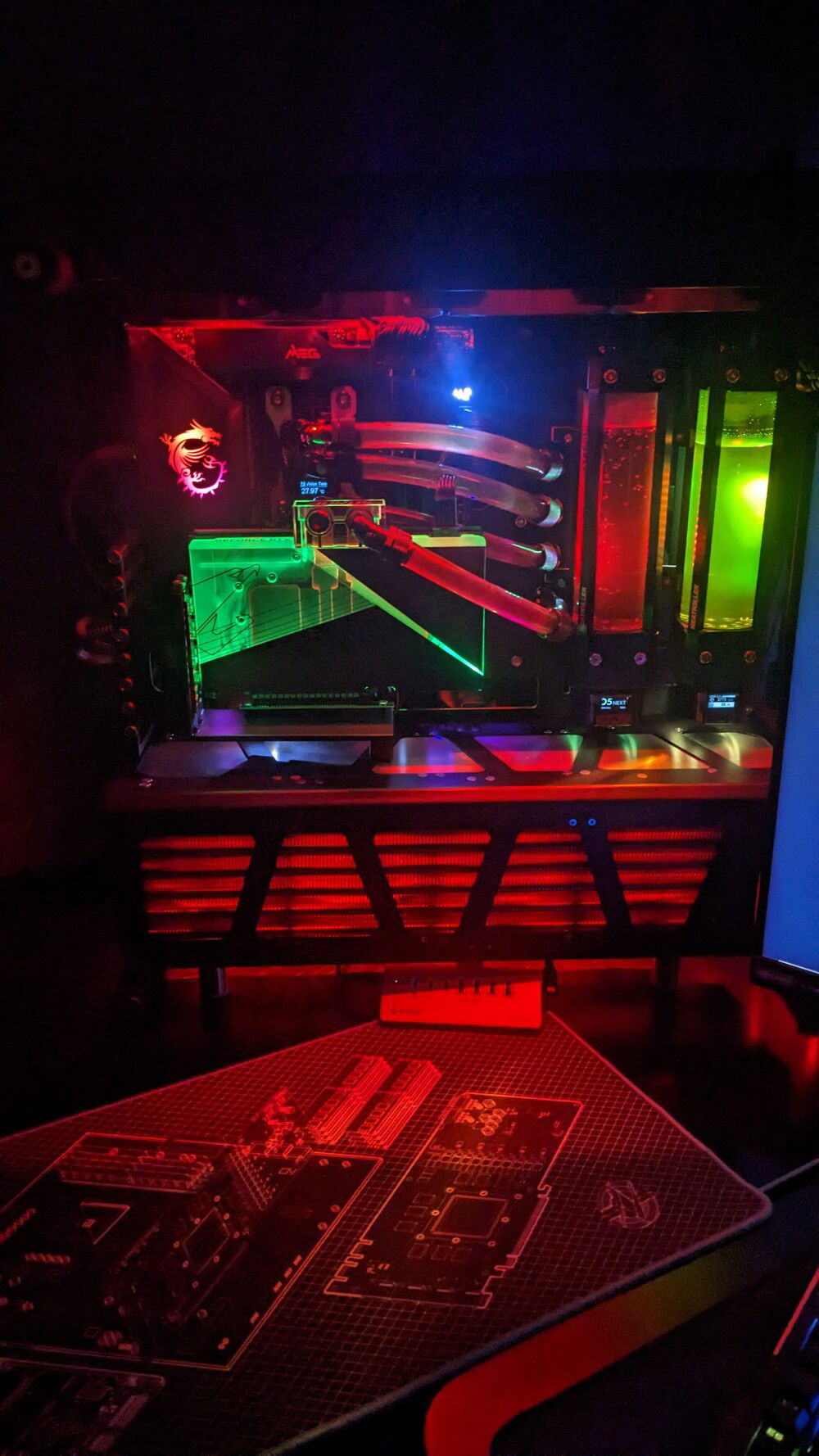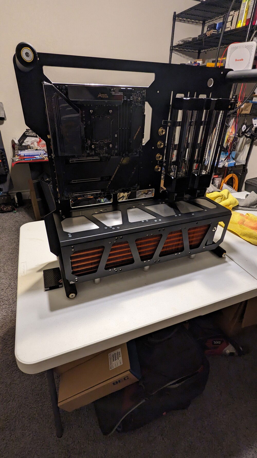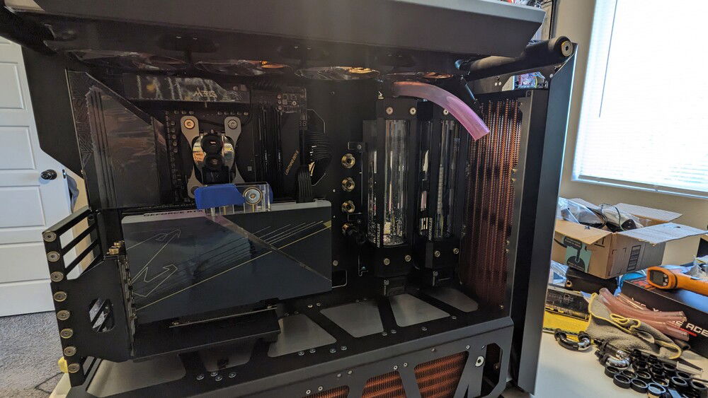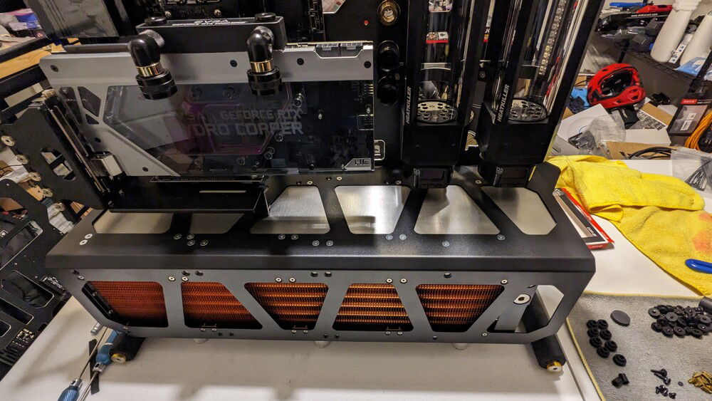 I was looking online and trying to find a 4080 WB that would fit my PC design and complement the overall feel. Well, I didn't find anything I liked. Till I found the EK-Pro GPU WB Rack, this WB has the industrial feel and looks the part. The added bonus is I needed to upgrade to a 4090. So what better than just talking about it? Here are some pictures of Frankenstein 02 with its new WB and GPU.