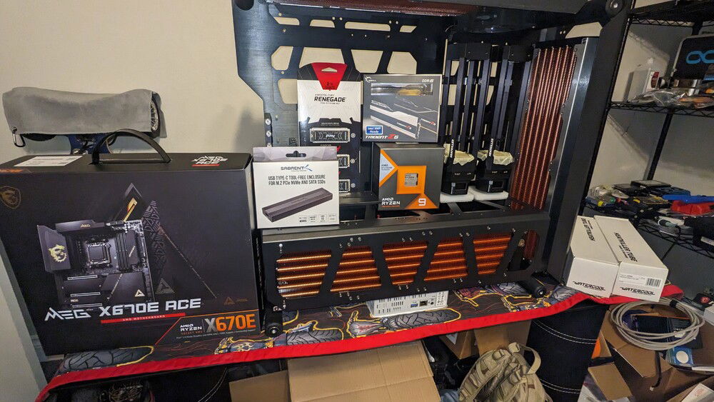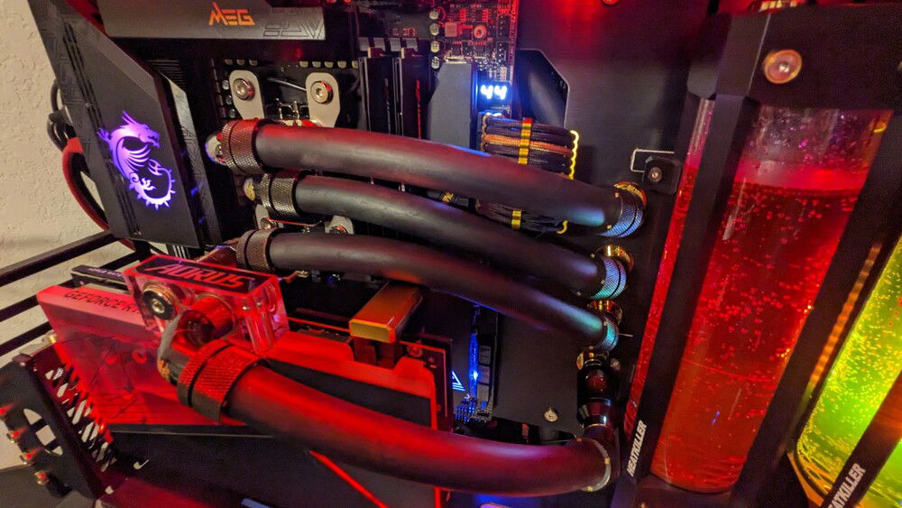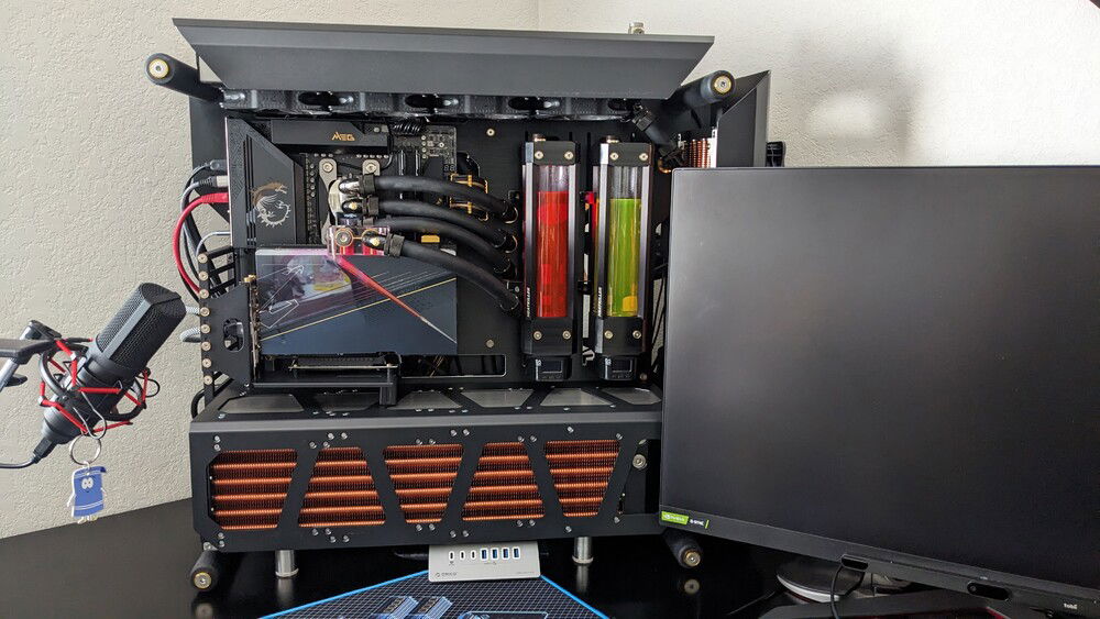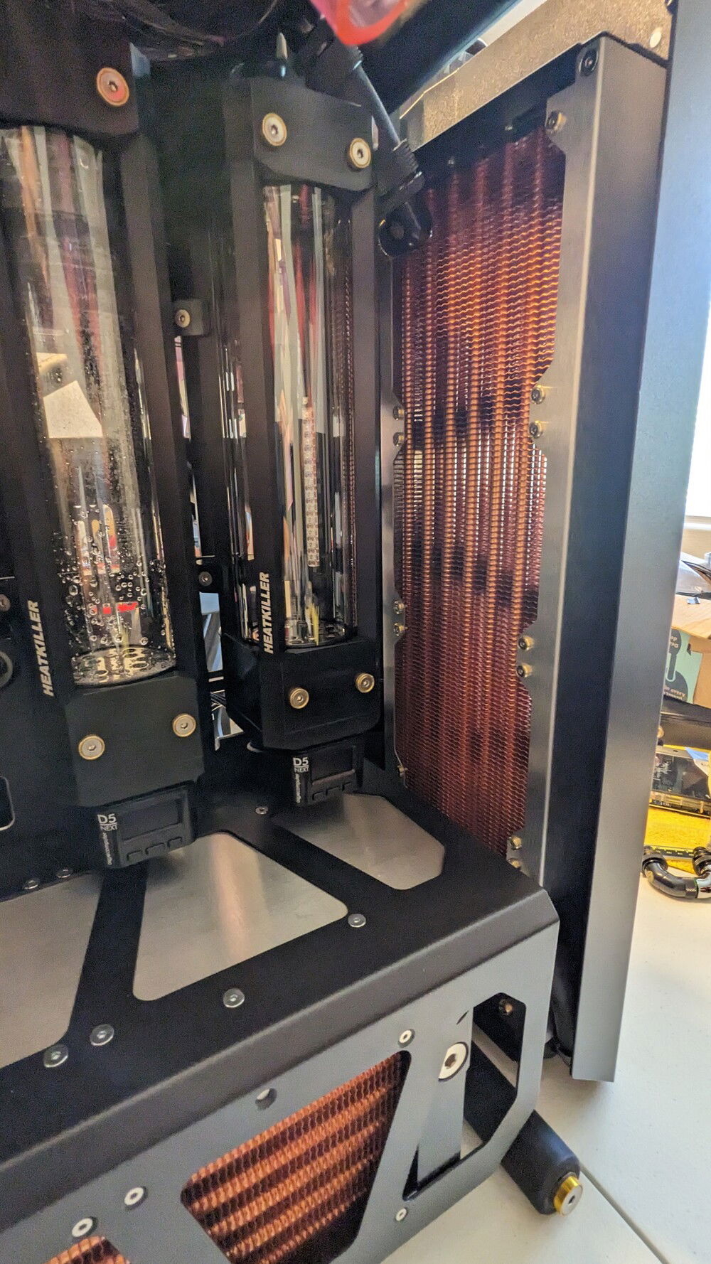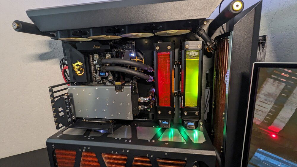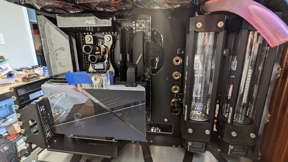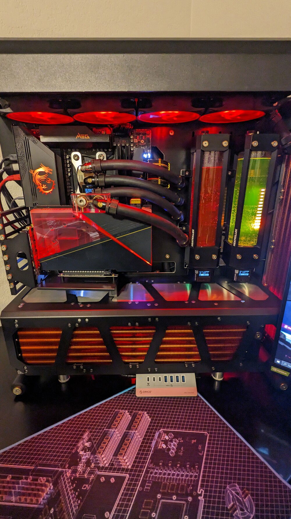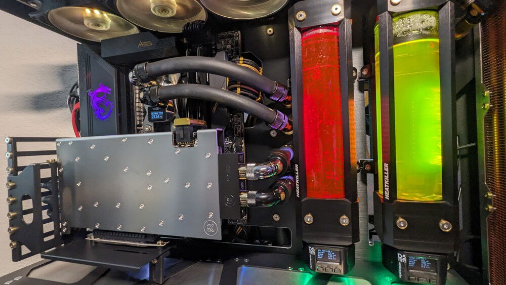 I was looking online and trying to find a 4080 WB that would fit my PC design and complement the overall feel. Well, I didn't find anything I liked. Till I found the EK-Pro GPU WB Rack, this WB has the industrial feel and looks the part. The added bonus is I needed to upgrade to a 4090. So what better than just talking about it? Here are some pictures of Frankenstein 02 with its new WB and GPU.