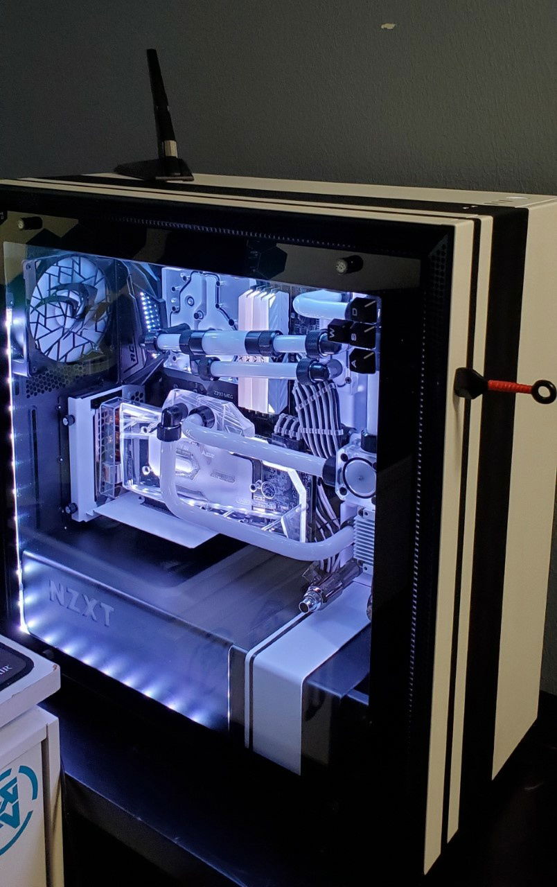 This is my first pc build ever. She had a humble beginning with just a single rad AIO, but after a few years of building for clients and friends and family i bult the courage to custom water cool "cringe". I apologize for the runs coming off of the cpu and how they are diagonal and not leveled , i ended up being short on petg :/.....