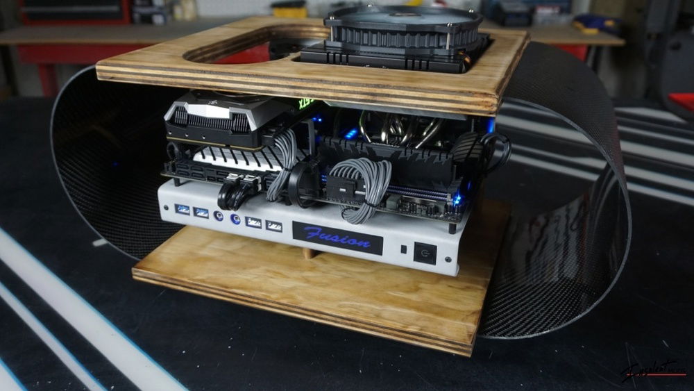 Minimalist mix of carbon fiber, plywood, and aluminum. I built this for my main rig because I wanted to move to something less flashy than my last build, and that was also more compact and easier to upgrade.