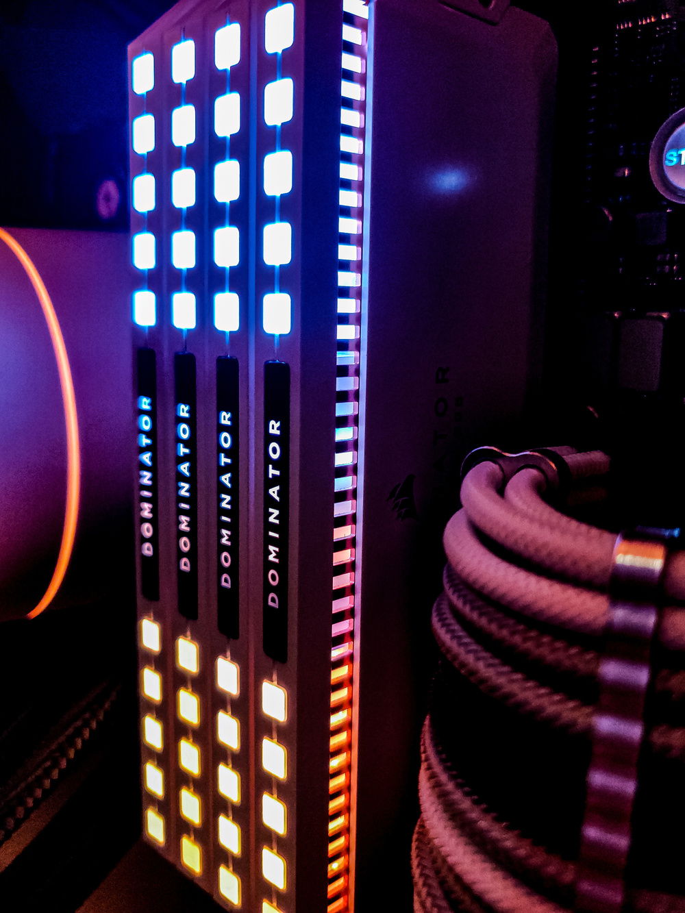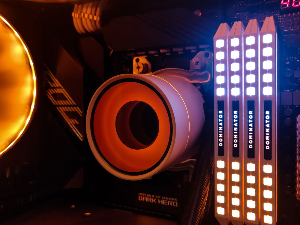 I took inspiration from the eponymous "Galaxy Silver" color from the Phanteks Evolv X and peppered silver accents throughout the build. The backplate of the 3070 perfectly matches the silver of the case. I'm a sucker for amber-themed RGB and always thought it cyberpunk-ish, hence the name.