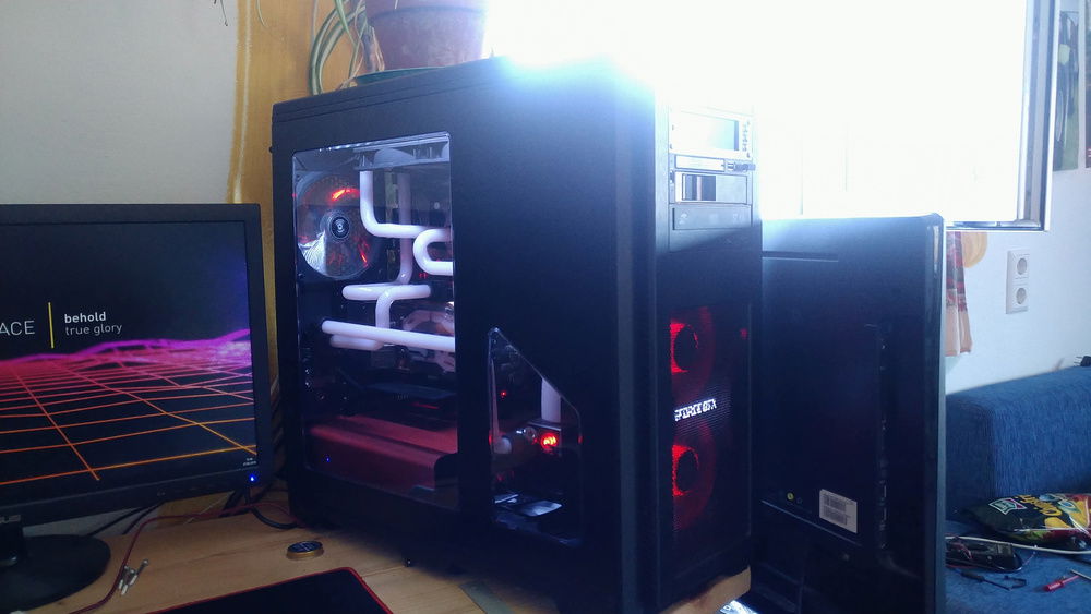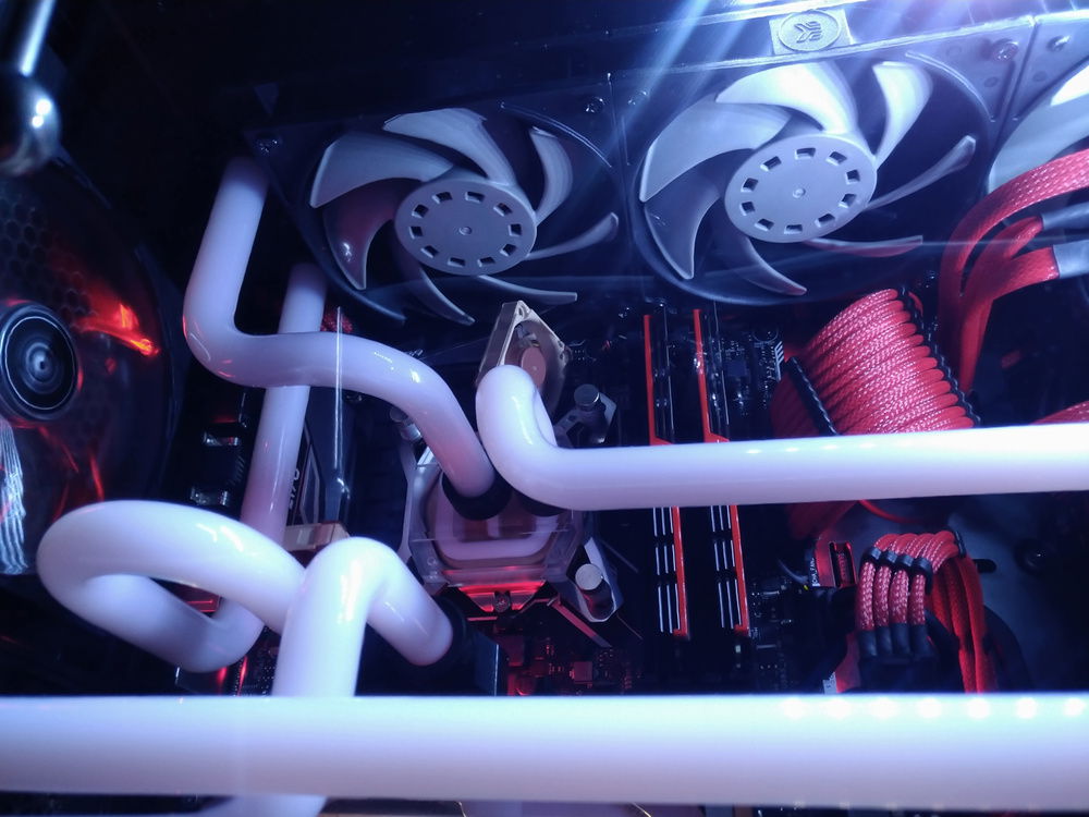 This is my main PC. First he had soft tubing wich was changed to hard tubing after one year. The cpu is delidded and overclocked to 4.6Ghz. RAM runs at 3200 and the GPU at a core clock of 2100MHz and a memory speed of 4500MHz. if you have any questions feel free to ask.