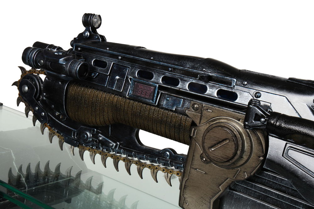 Apart from that I took a plain non working hollow dummy of a GOW Lancer and opened it up, gutted the weights out, planted a motor, made a chain and battery pack and chartg display etc.. and transformed the Lancer into the worlds first real working one. Its chainsaw now works, of course at a slow non dangerous speed.