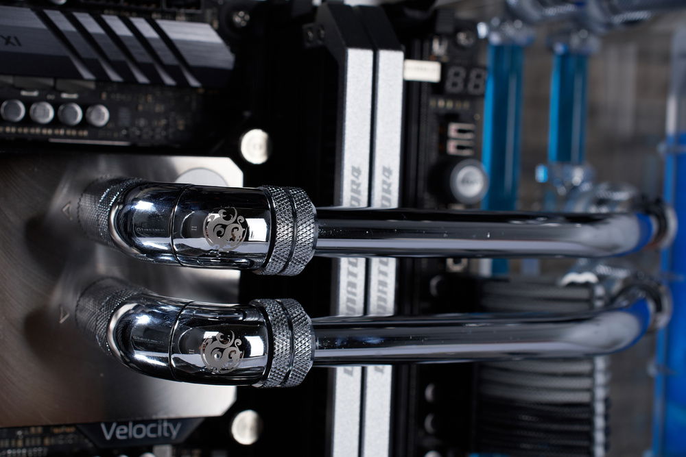 The build consists of top and bottom stainless steel panels bent and polished to a mirror finish. The front and back facades are cut from a selection of frosted and clear acrylic panels to showcase the internal components as much as possible. Just sitting above the PSU is a 18mm thick frosted acrylic light up panel to create an accent for the entire rig.