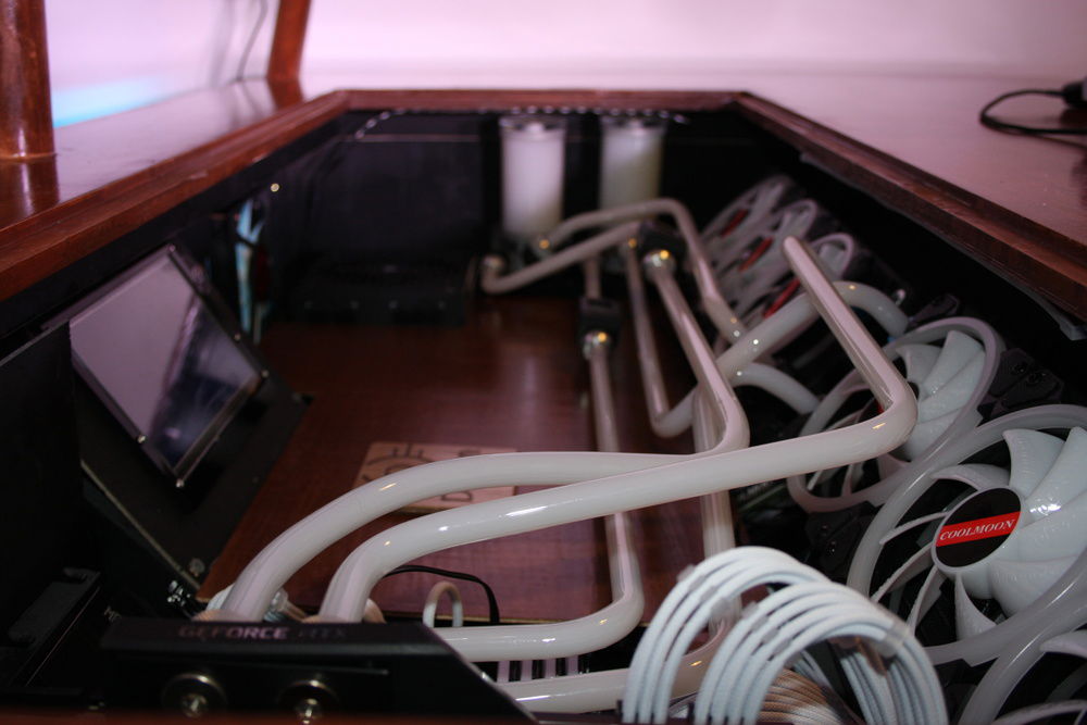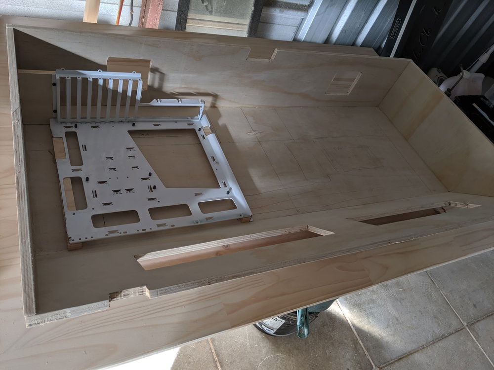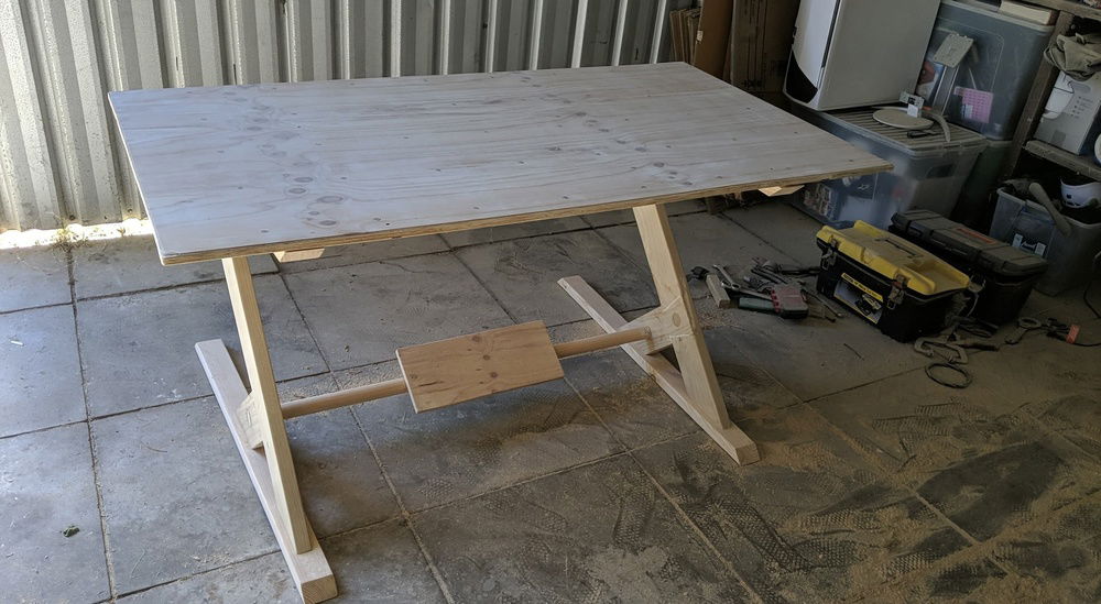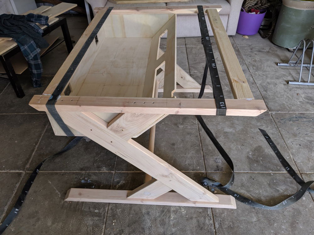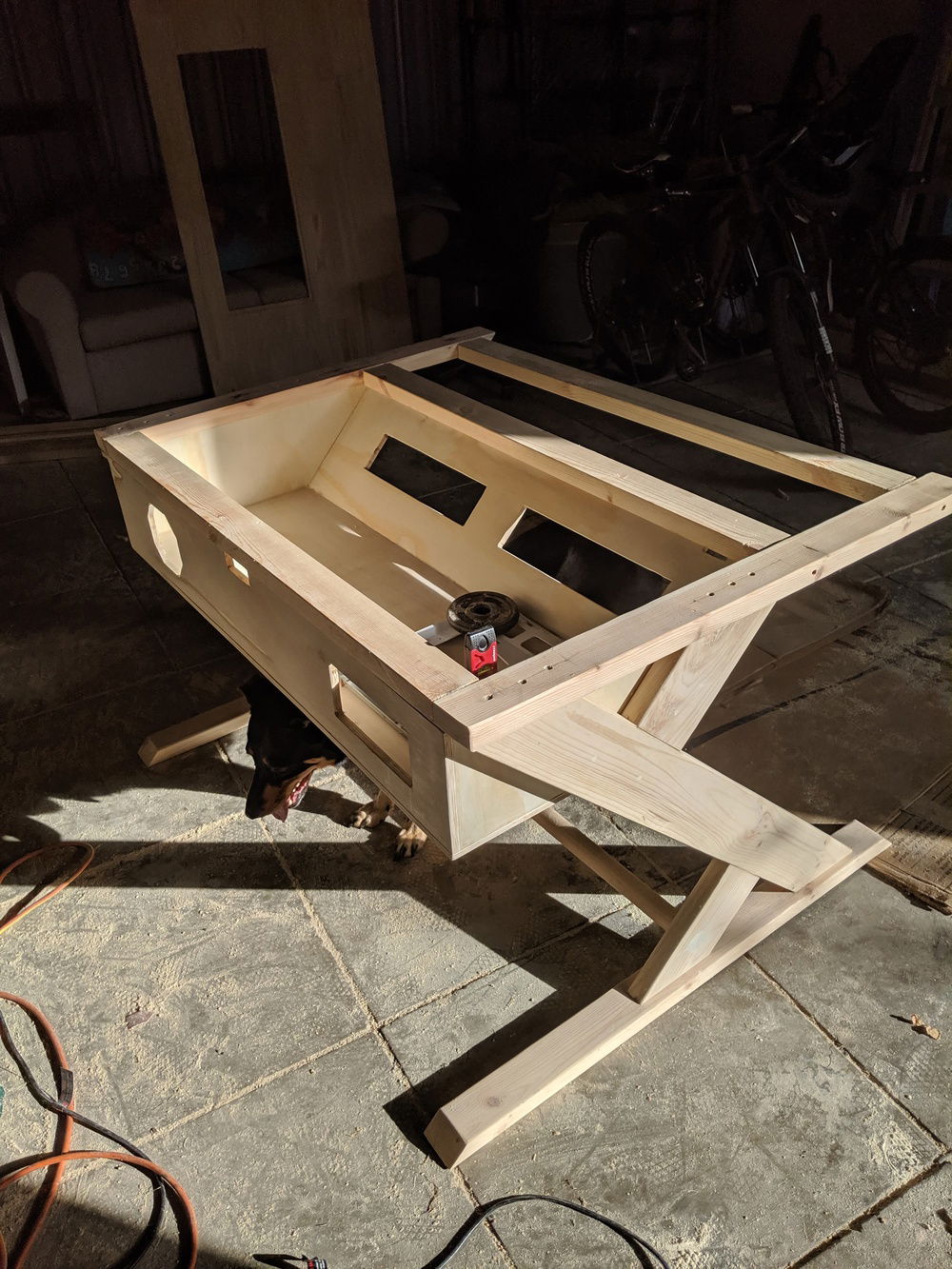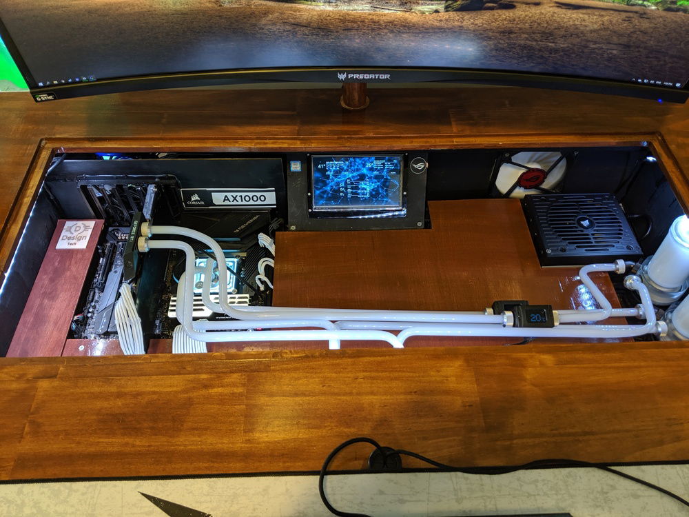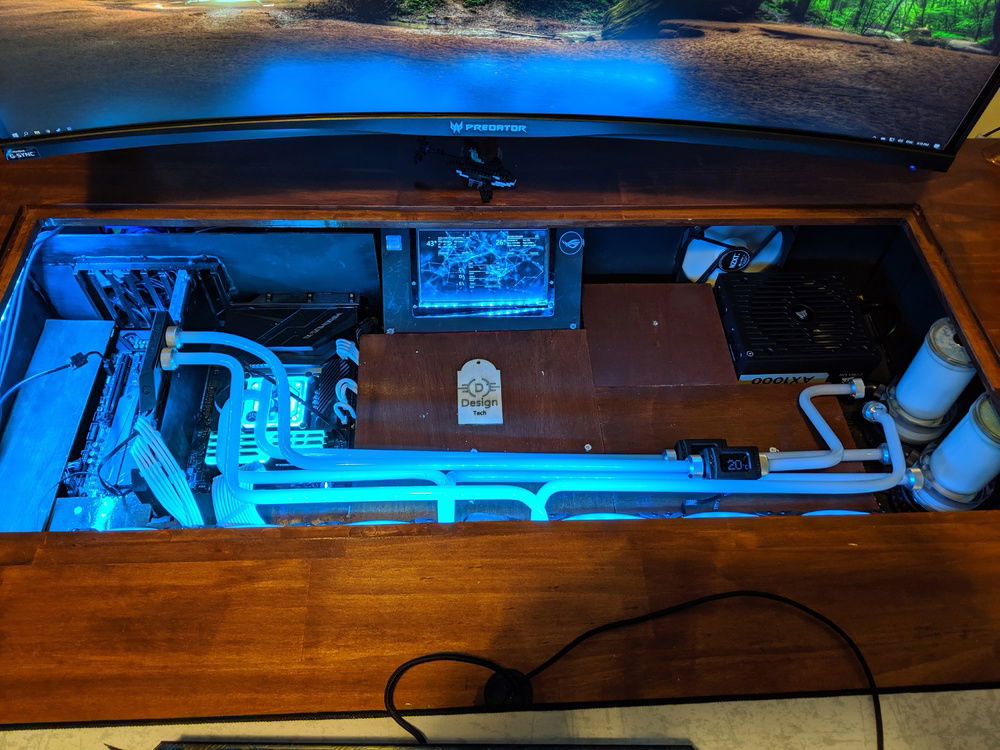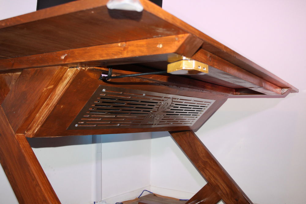 Custom built computer desk, all pine construction. Used for work, video production and gaming.