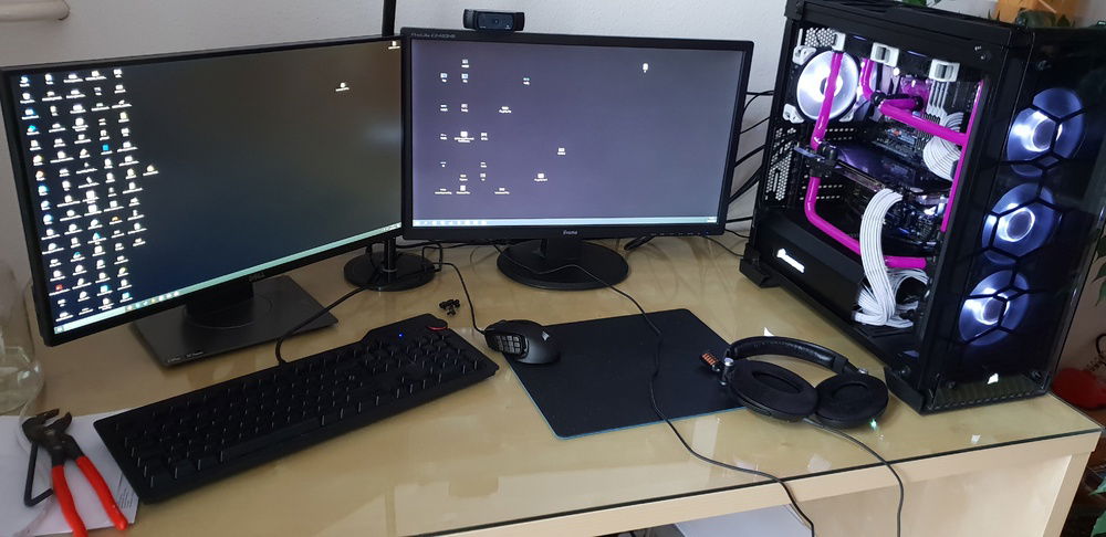 This build is my first one and has gone through a few iterations by now. It started with my graphics card on air and my CPU being cooled by an H100i v2. Then I set up a custom loop with flexible tubing. After that I delidded the CPU - mostly for fun. Finally, during my first maintenance, I swapped my flexible tubing for rigid tubing. Tinkering with it has been a journey so far!