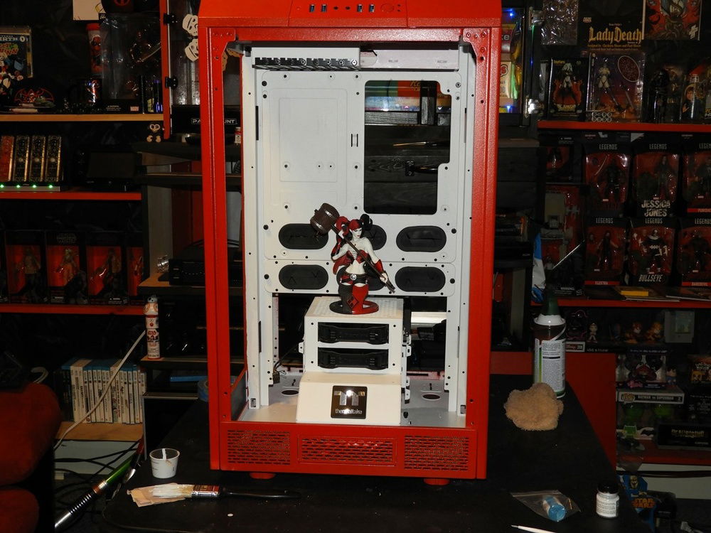 My fellow modders,I present to you after an entire weekend worth of revisions, switched out the Enermax Neochanger's to 2 new EKWB Kinetic FLT 240 With D5 pwm's , Harley Quinn revision 2.0 is up and running after a 24 hour leak test,