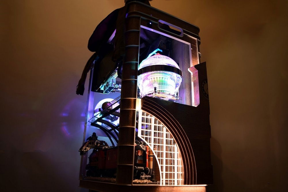 I am pleased to present the HarryPotterMod project that reflects the most important parts of this well-known saga all over the world. The exterior of the cabinet represents the station of King’s Cross, as well as the bottom with the reproduction of the same. There will also be many other details such as the talking hat and the gold bottle. The bulkhead of the closet’s cable compartment has been covered in genuine leather and features the Hogwarts emblem.